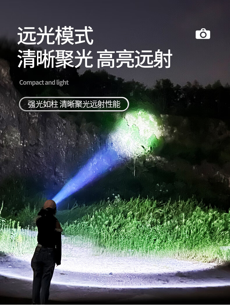 SHENYU手电筒强光远射充电式小型便携户外超亮长续航大容量耐用家用应急 【电量显示】轻量便携