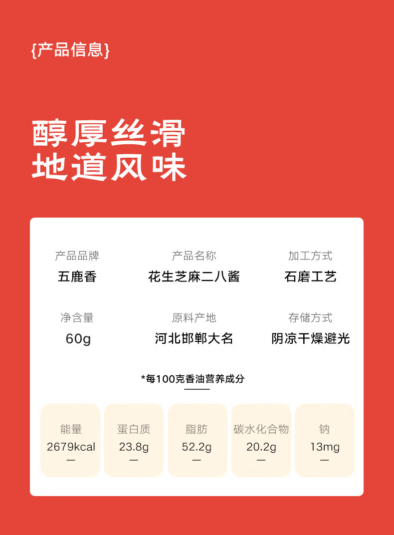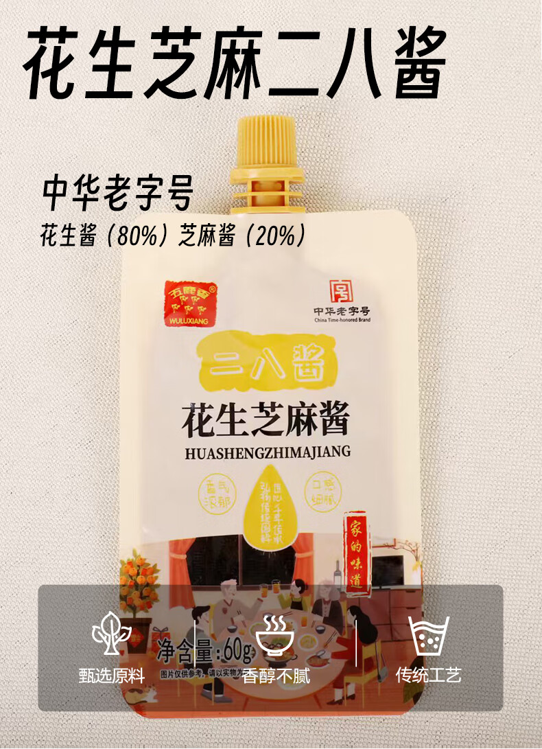五鹿香花生芝麻二八酱60g袋装【0添加】火锅涮肉凉拌调味品源头直发包邮
