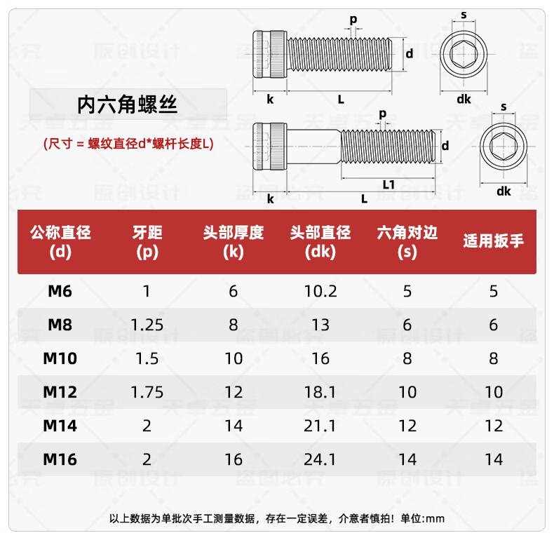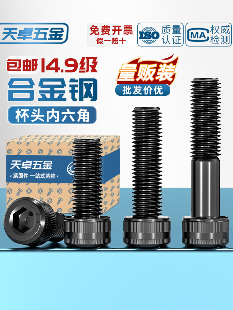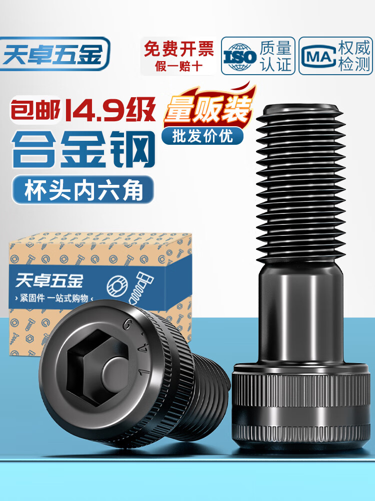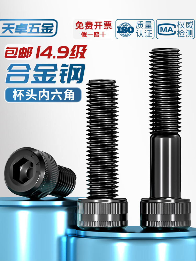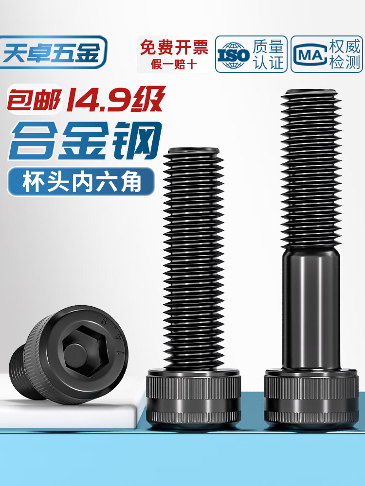 天卓五金14.9级高强度内六角螺丝螺栓合金钢黑色加长螺钉M6M8M10M12M14M16 M6*50半牙【8个】
