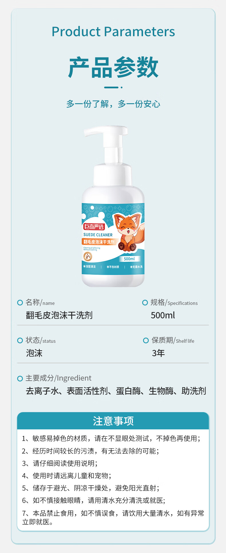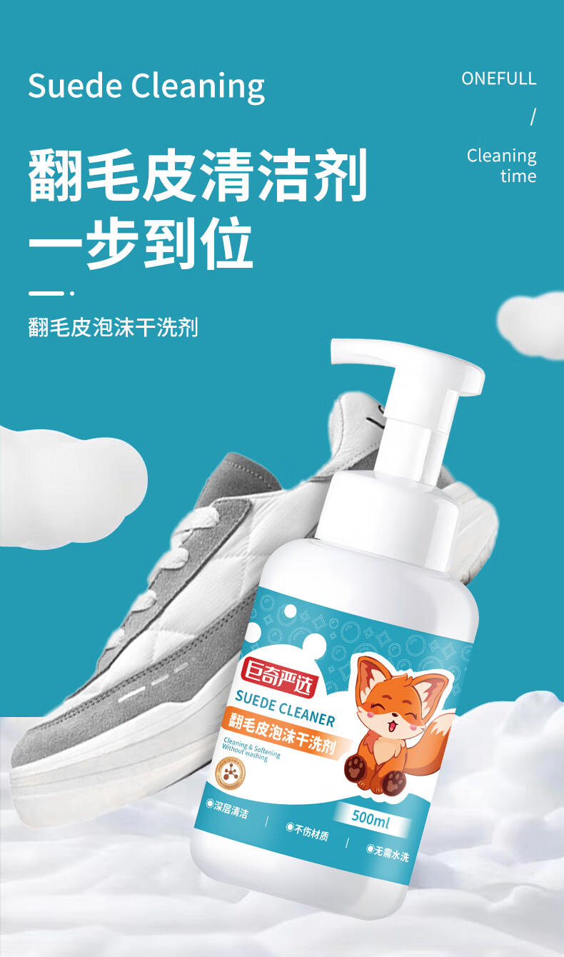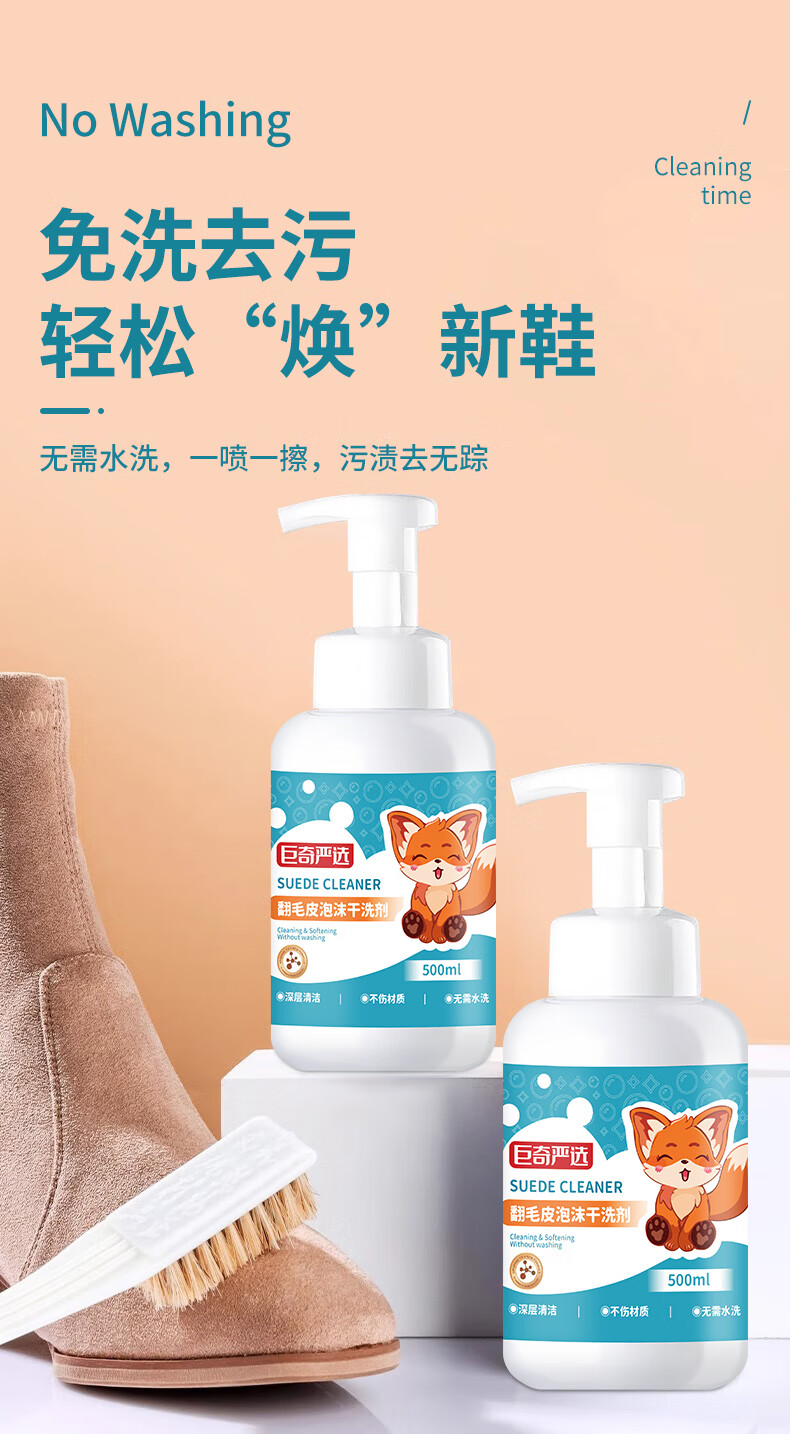 巨奇翻毛皮清洁剂麂皮勃肯鞋德训鞋清洗剂绒面皮内饰雪地靴清洁500ml