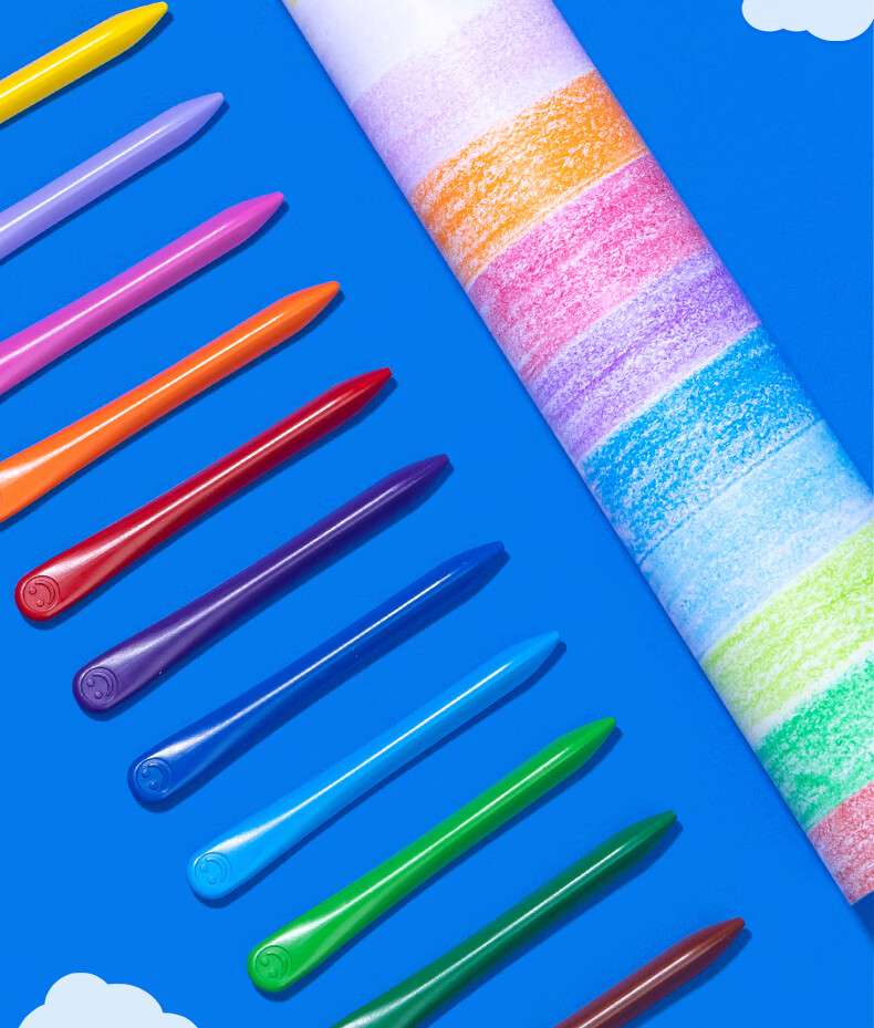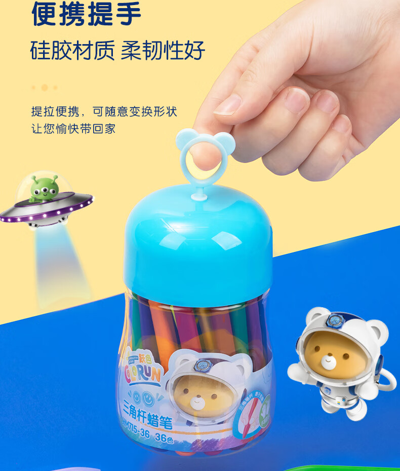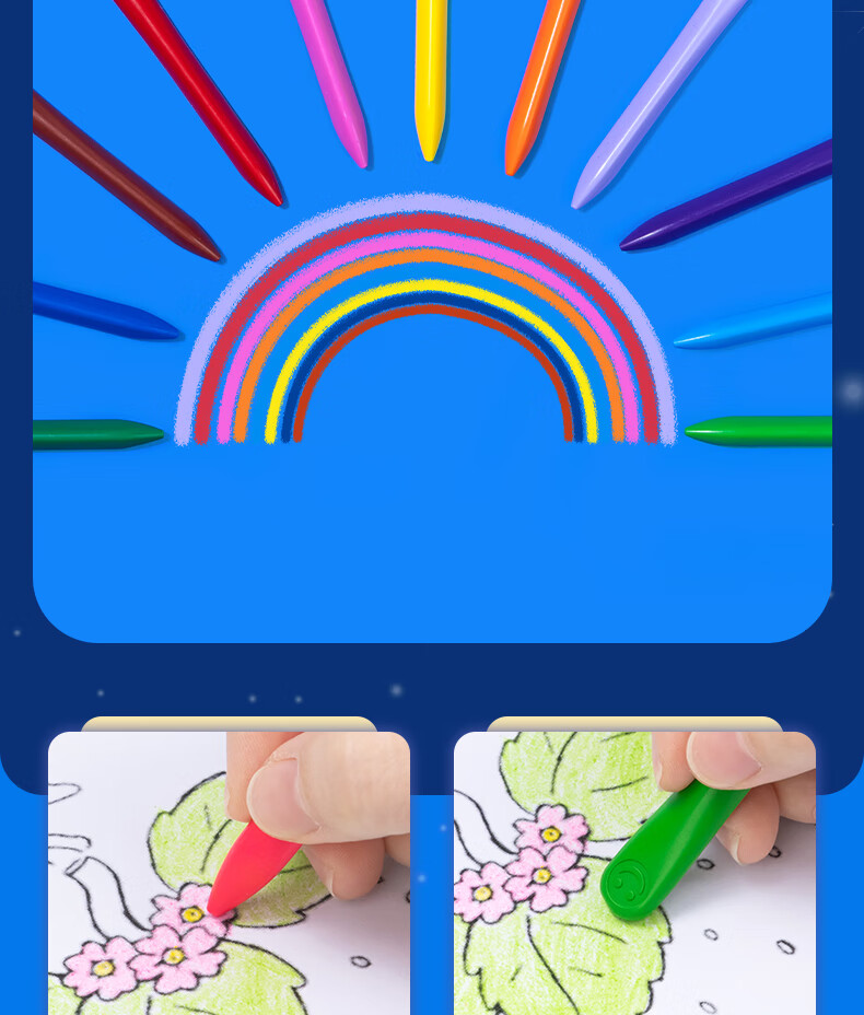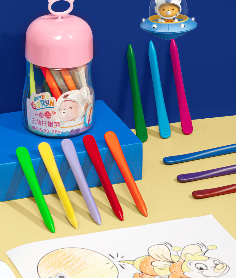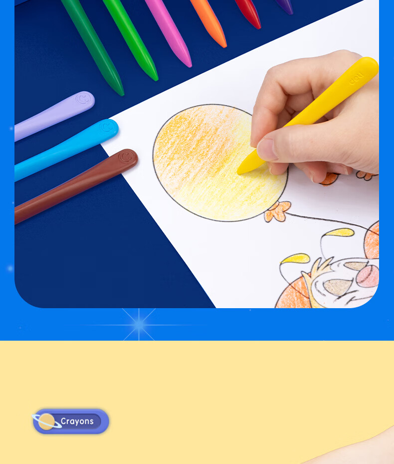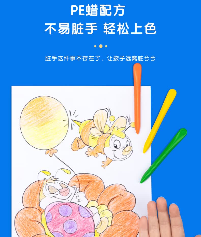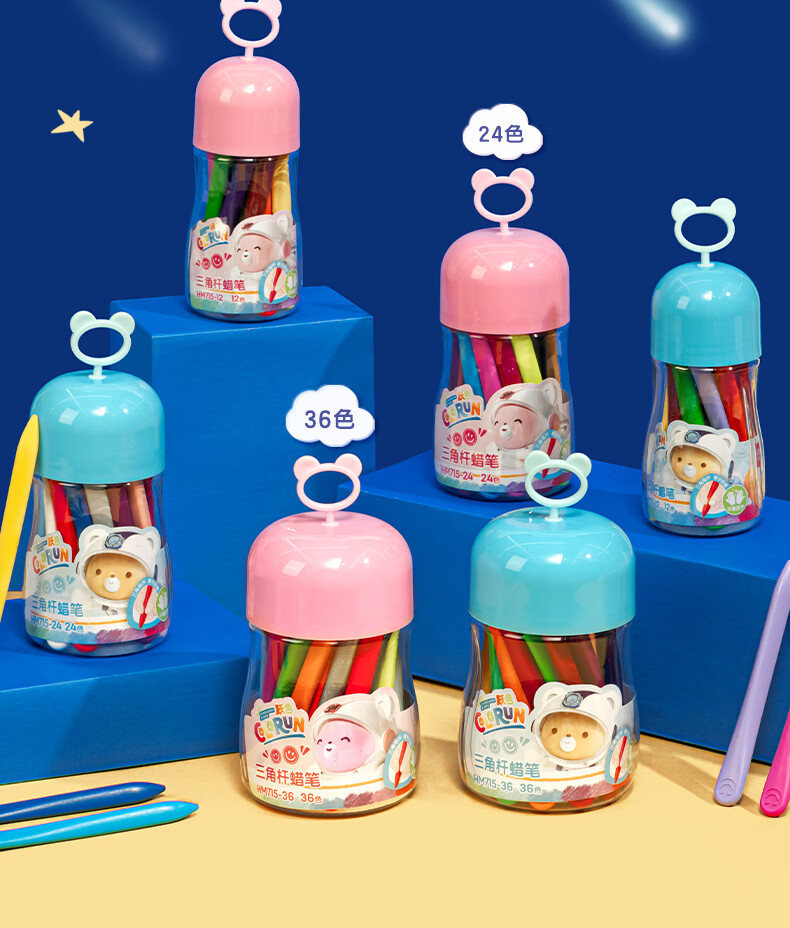 得力(deli)36色(蓝)三角杆不脏手双头蜡笔可水洗儿童油画棒涂色笔棒HM715-36美育工具