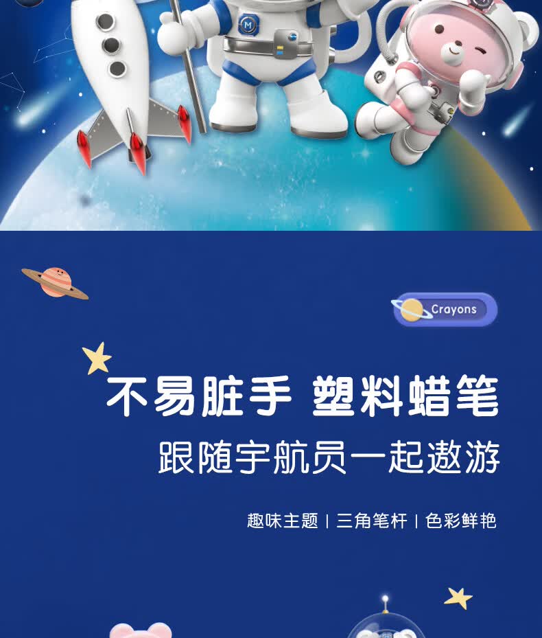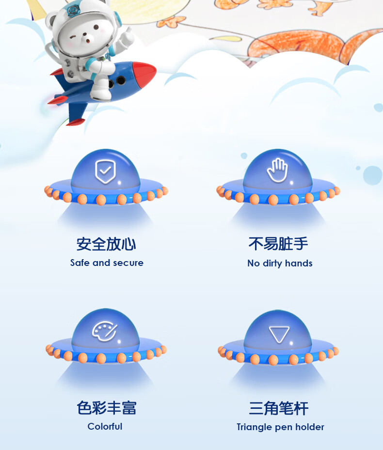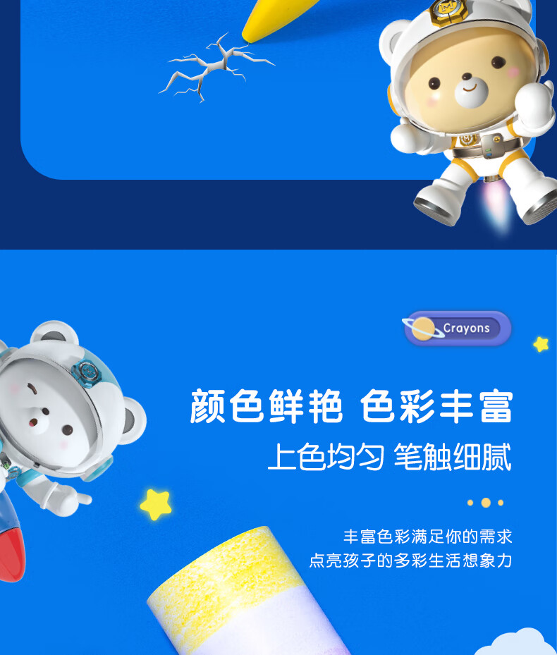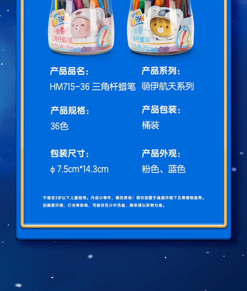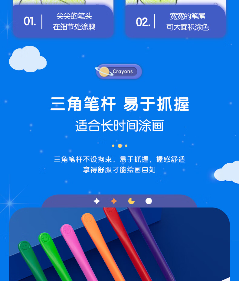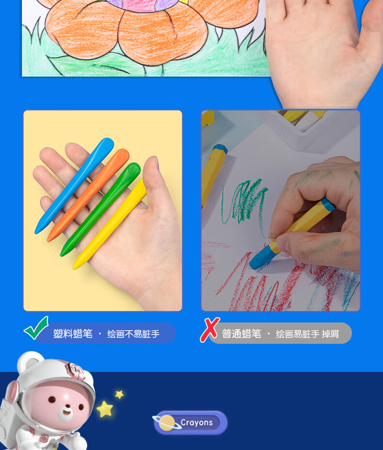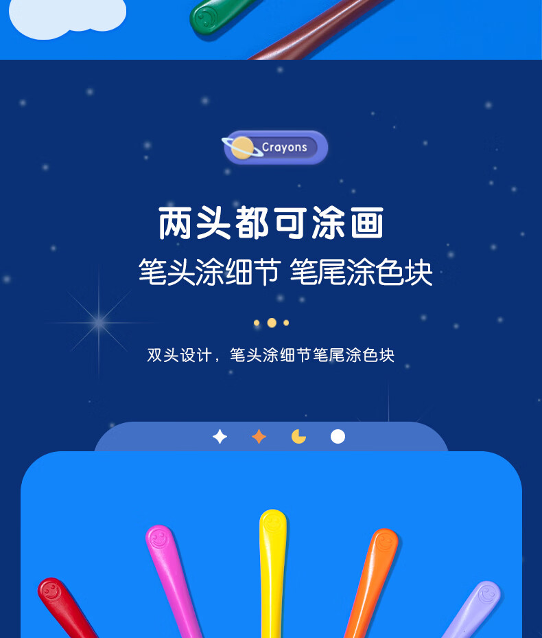 得力(deli)36色(蓝)三角杆不脏手双头蜡笔可水洗儿童油画棒涂色笔棒HM715-36美育工具