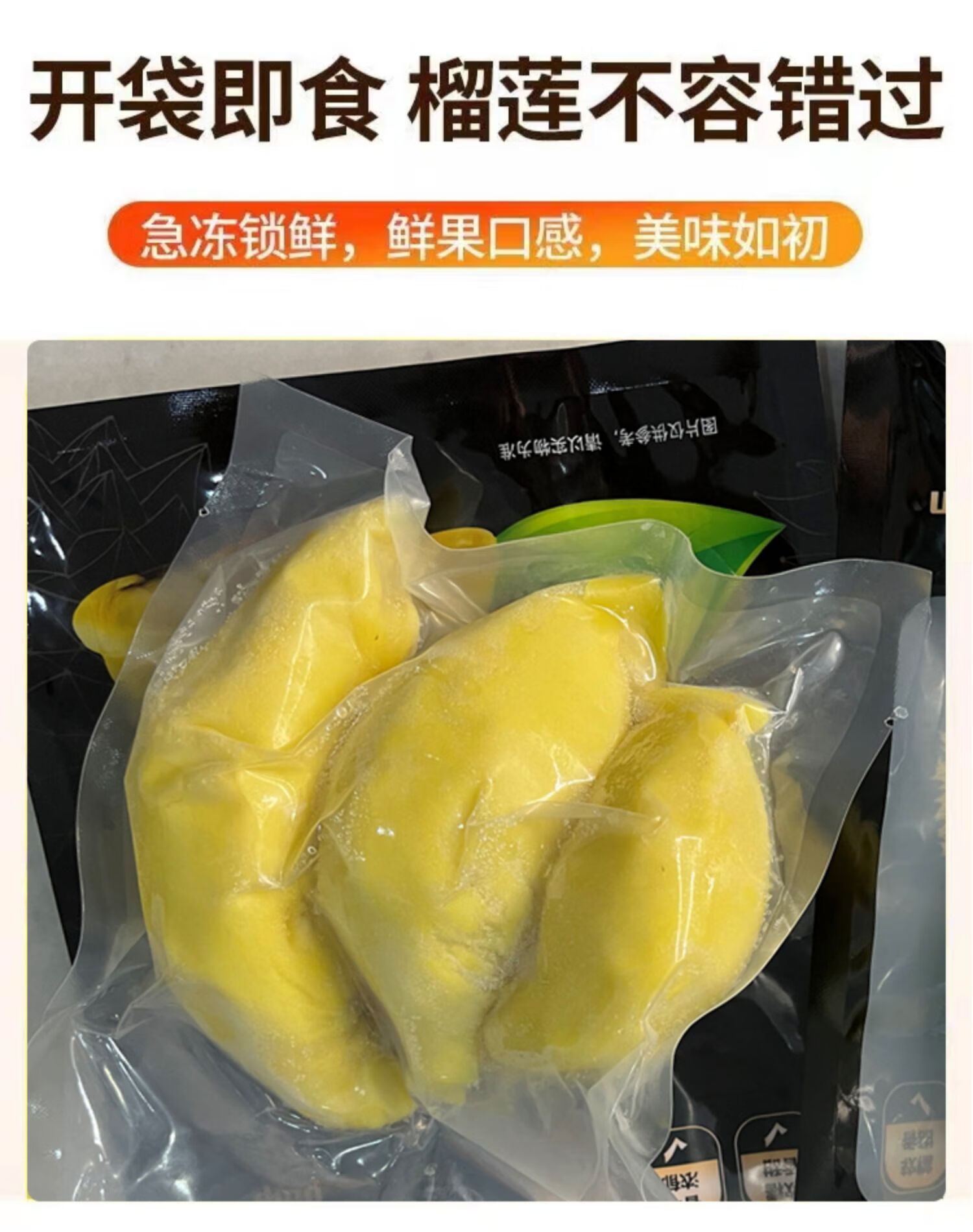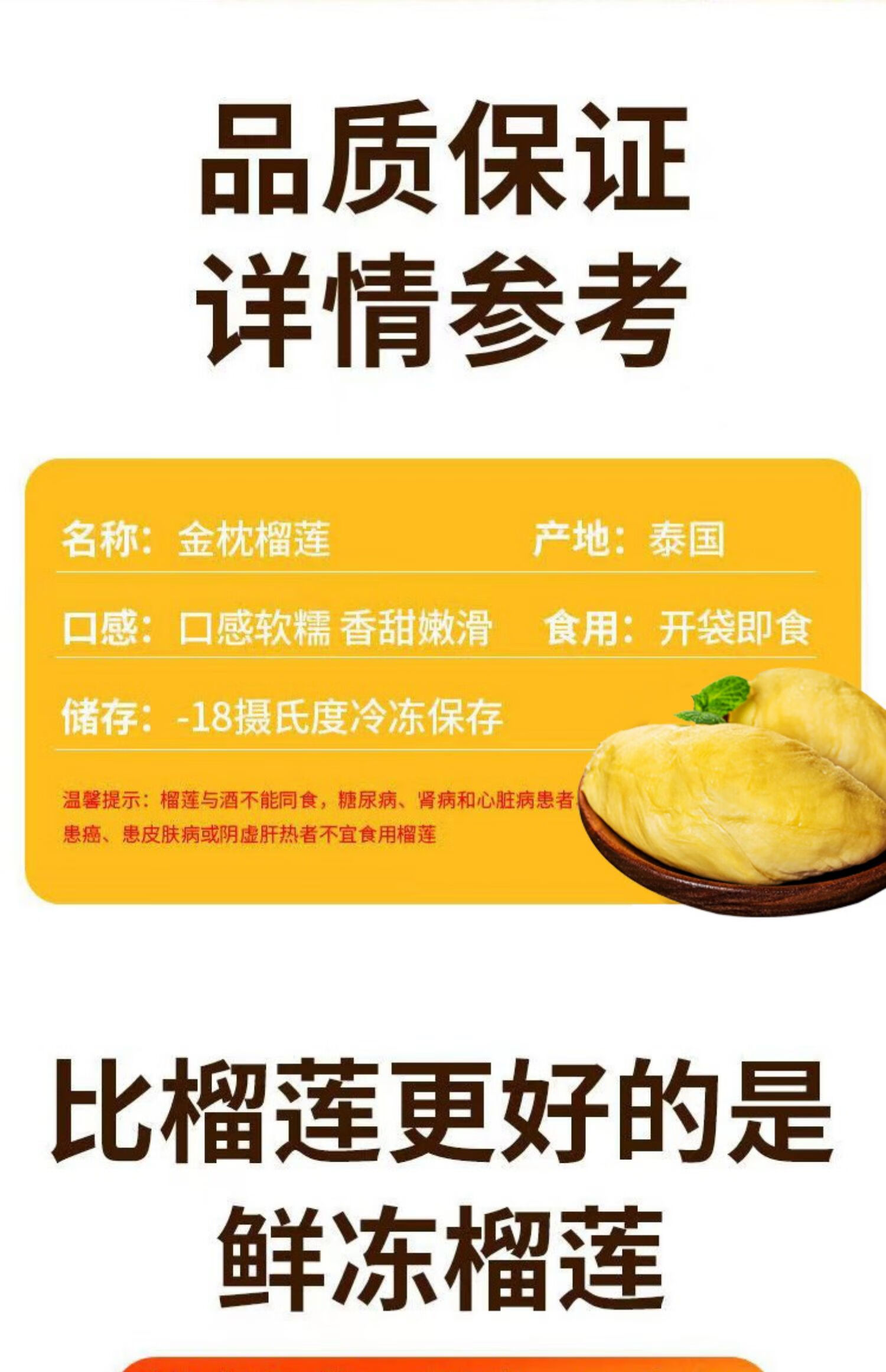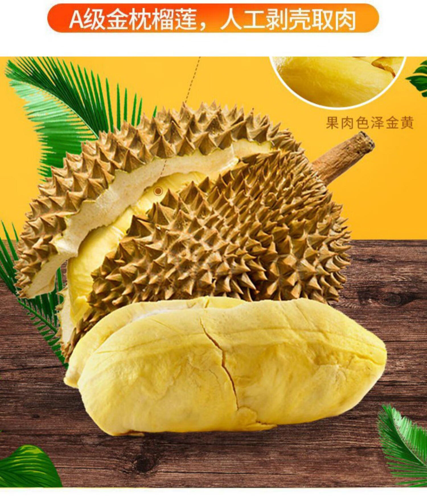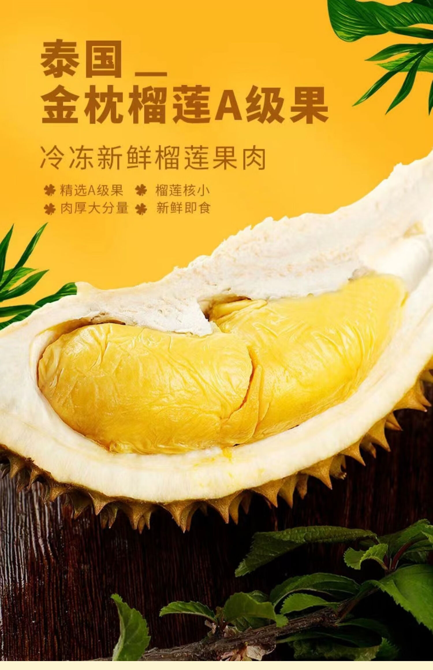 泰国金枕树熟榴莲肉进口新鲜树熟冷冻果肉无壳榴莲果水果速冻顺丰 泰国3A级/金枕榴莲冻肉/软糯香甜/顺丰包邮 净重2斤