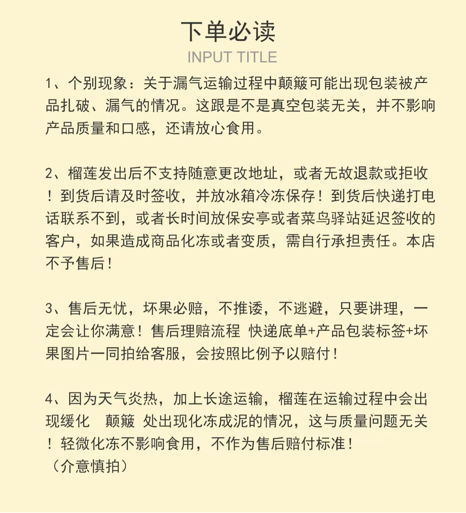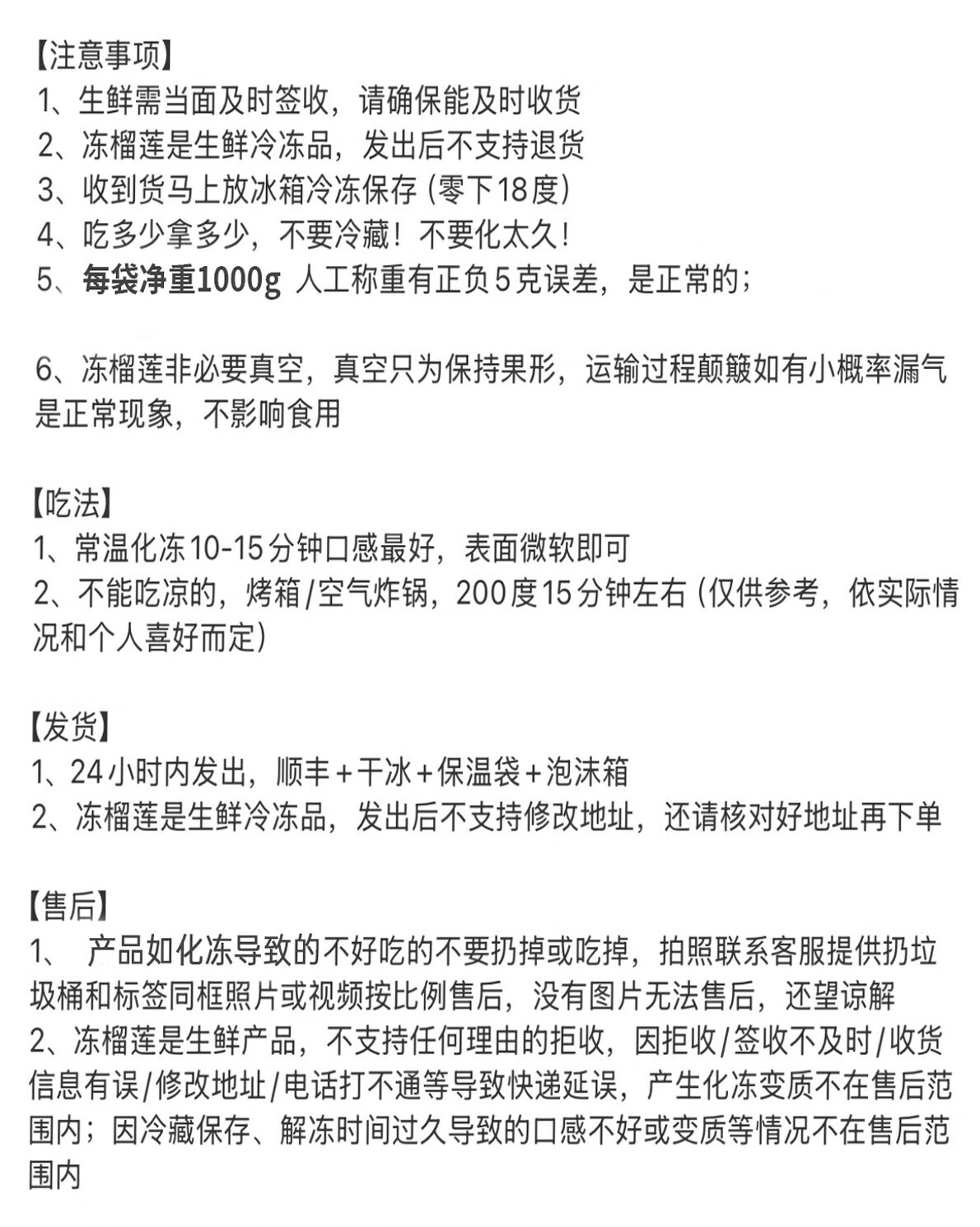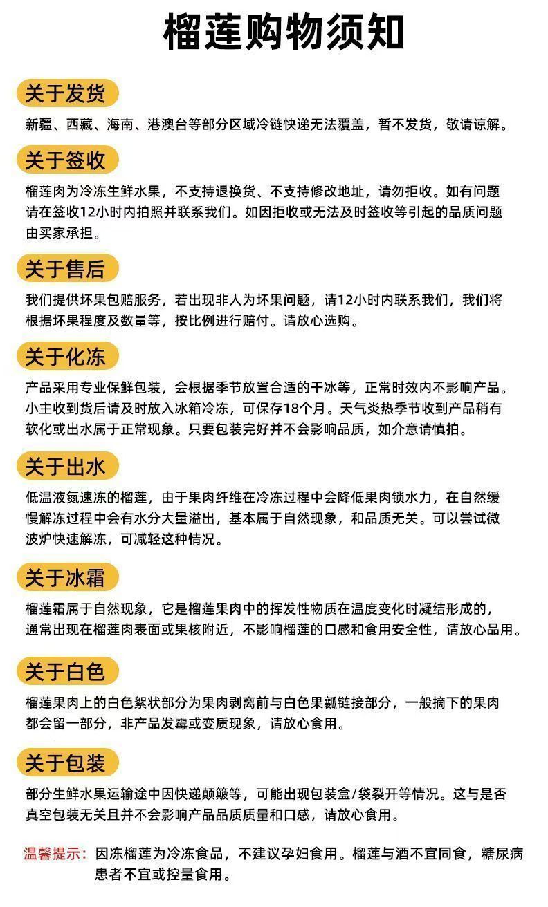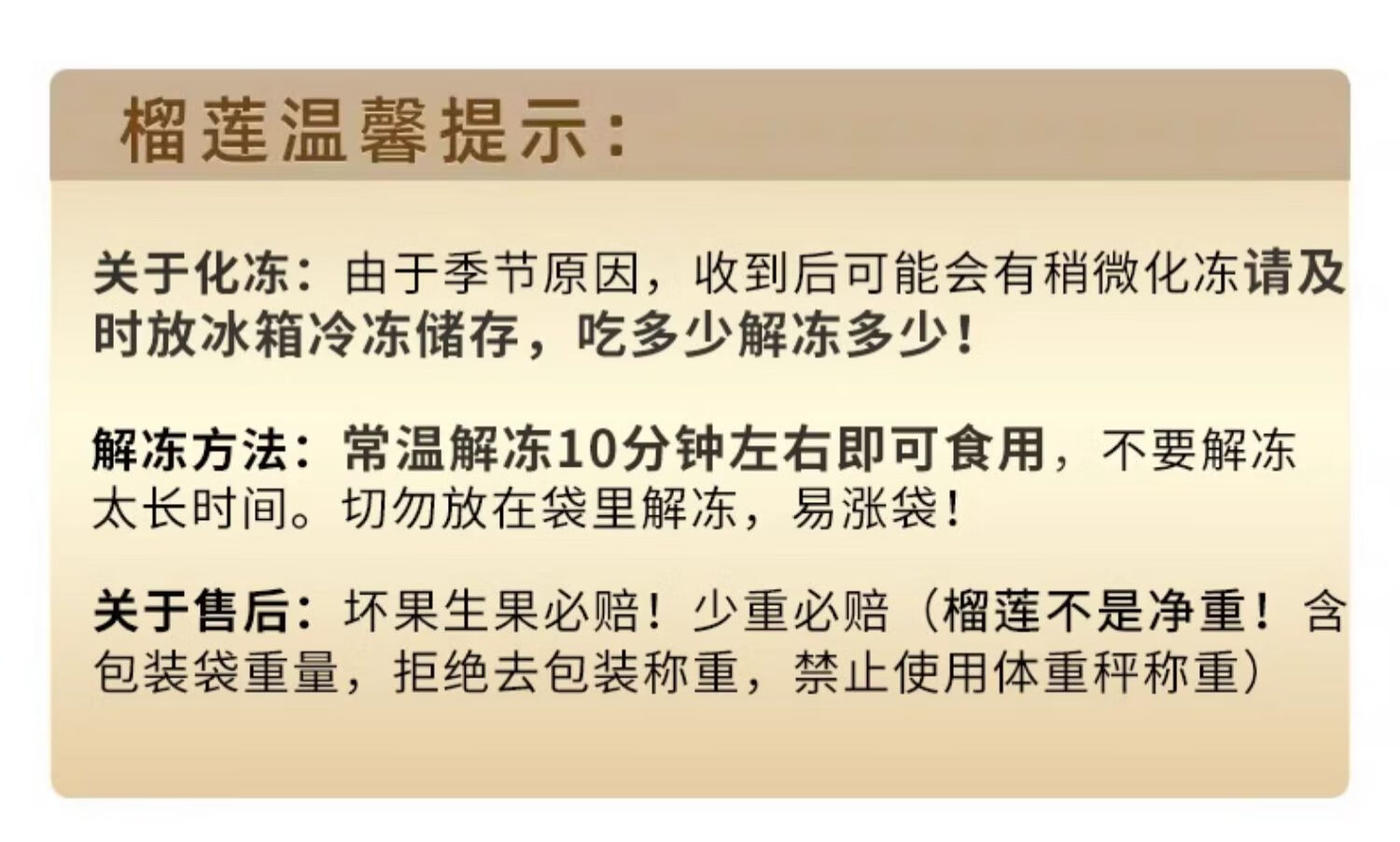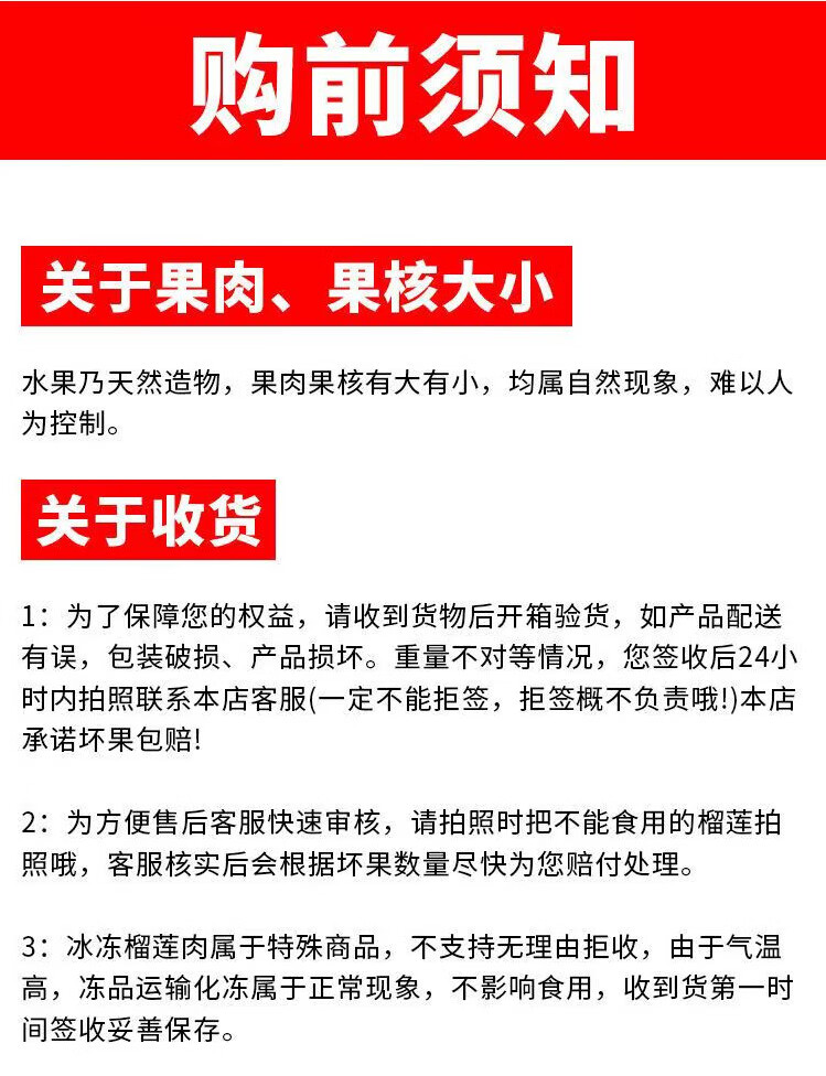 泰国金枕树熟榴莲肉进口新鲜树熟冷冻果肉无壳榴莲果水果速冻顺丰 泰国3A级/金枕榴莲冻肉/软糯香甜/顺丰包邮 净重2斤