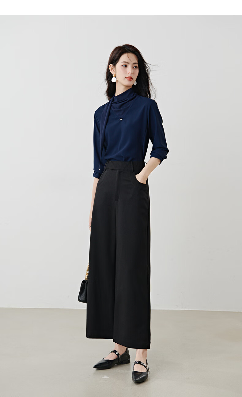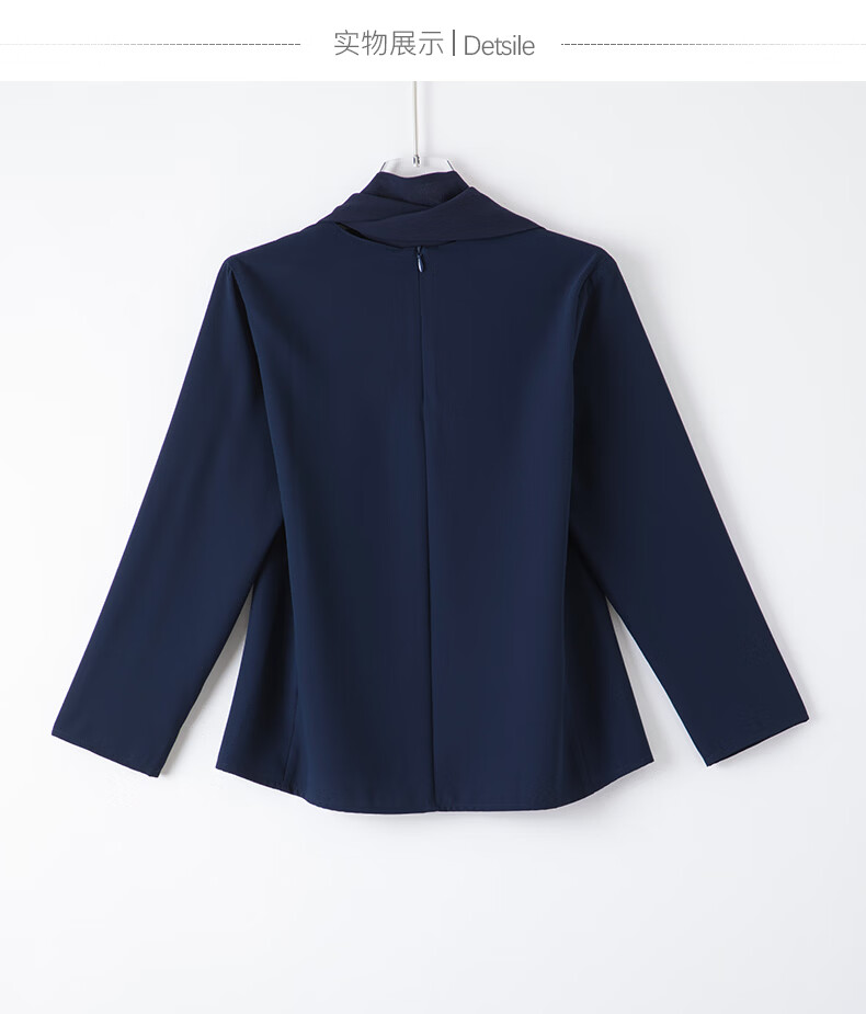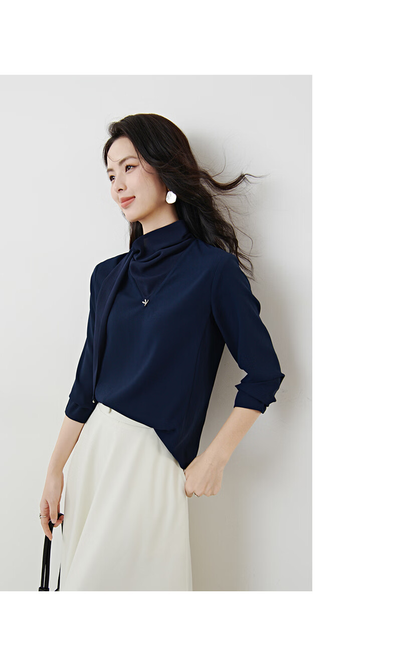 晚白2026年春款垂感系带蝴蝶结领假两件上衣干练通勤行政蓝衬衫女 深蓝色 XL