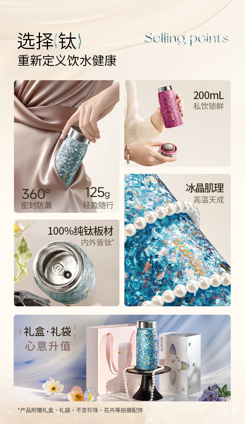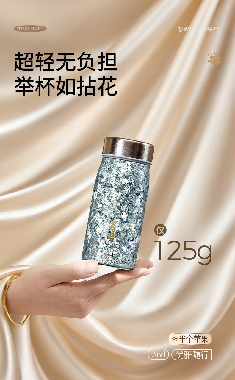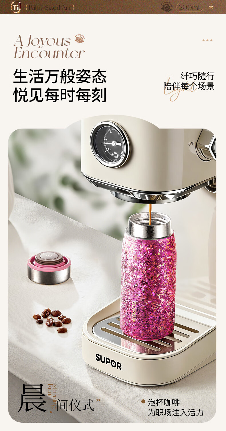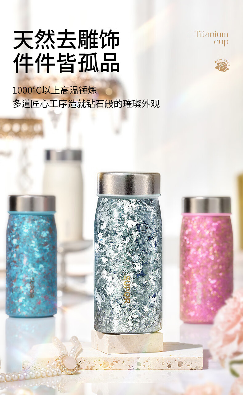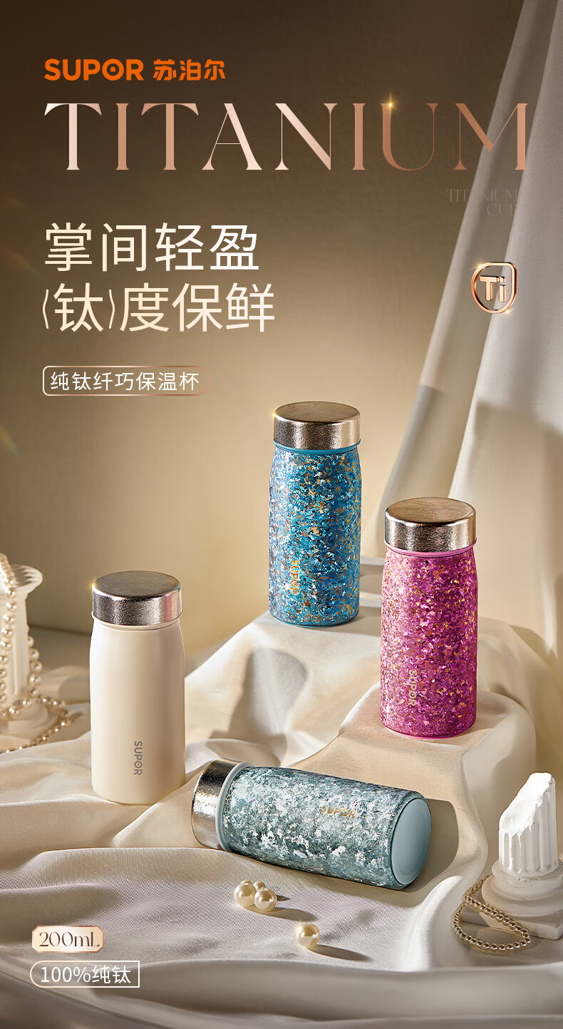 苏泊尔(SUPOR)纯钛迷你保温杯小巧便携口袋水杯小容量女士学生316L2026新款 天幕白200mL【100%内外纯钛】 赠杯刷+立体杯贴