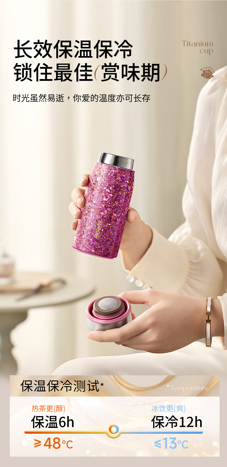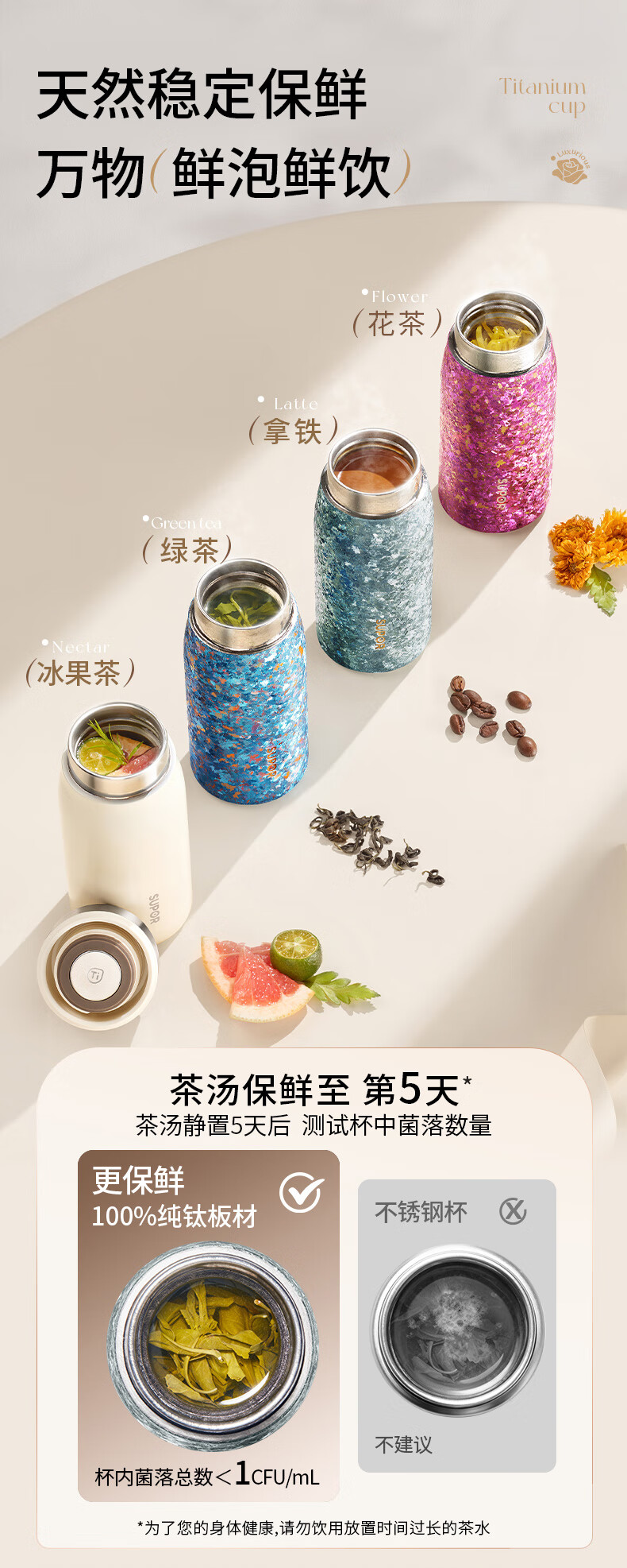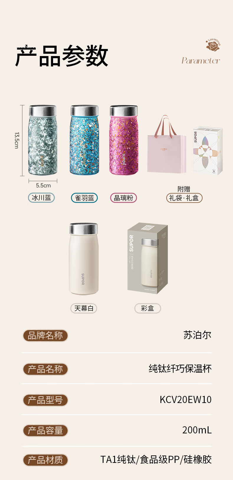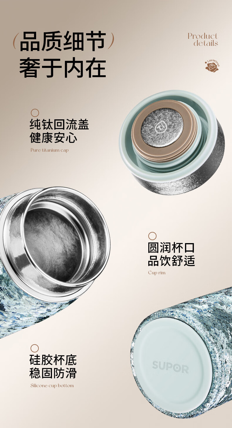 苏泊尔(SUPOR)纯钛迷你保温杯小巧便携口袋水杯小容量女士学生316L2026新款 天幕白200mL【100%内外纯钛】 赠杯刷+立体杯贴