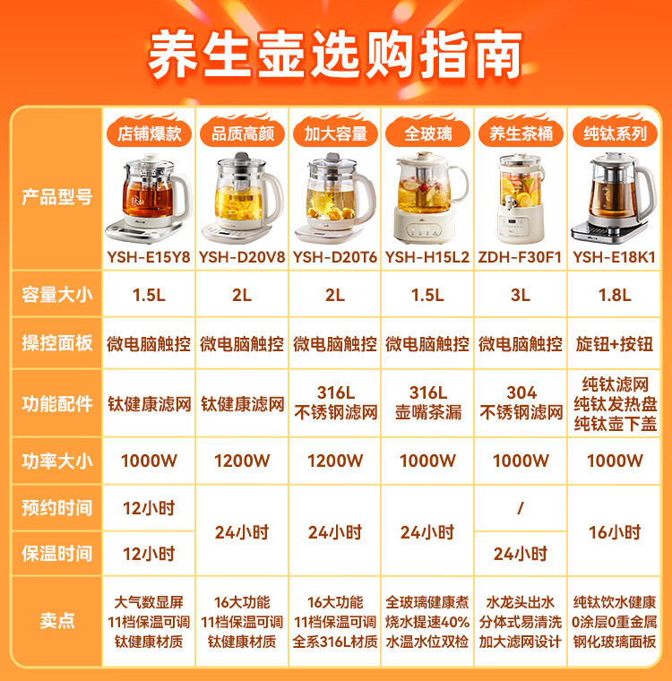 小熊(Bear)养生壶 煮茶壶 恒温水壶 保温烧水一体电热水壶花茶壶 316L不锈钢 1.5L大容量 YSH-J15H8