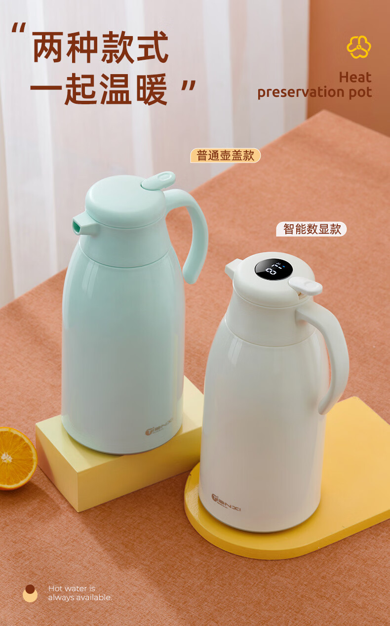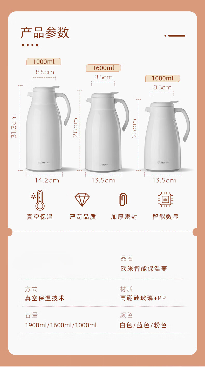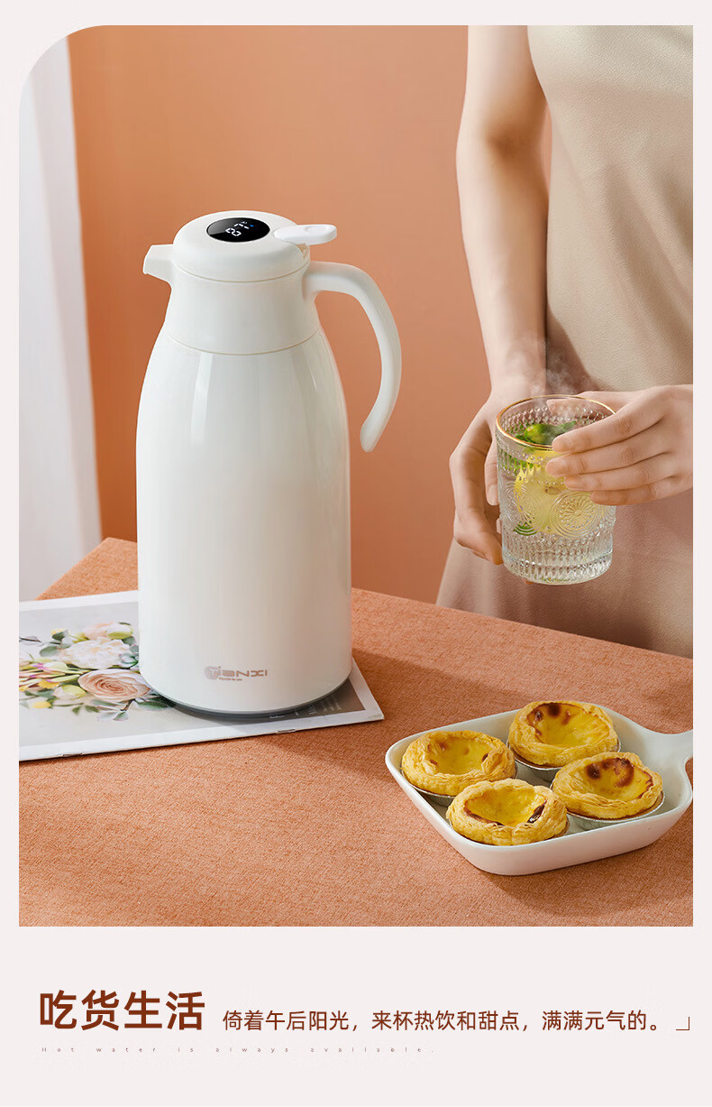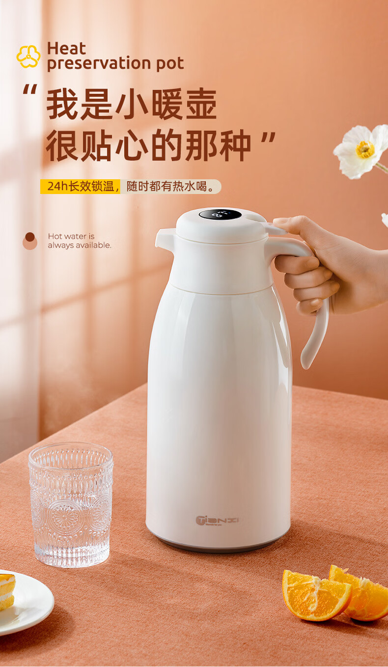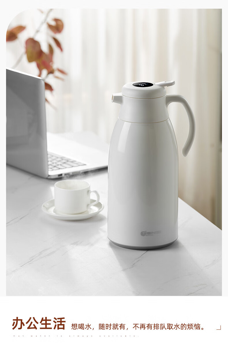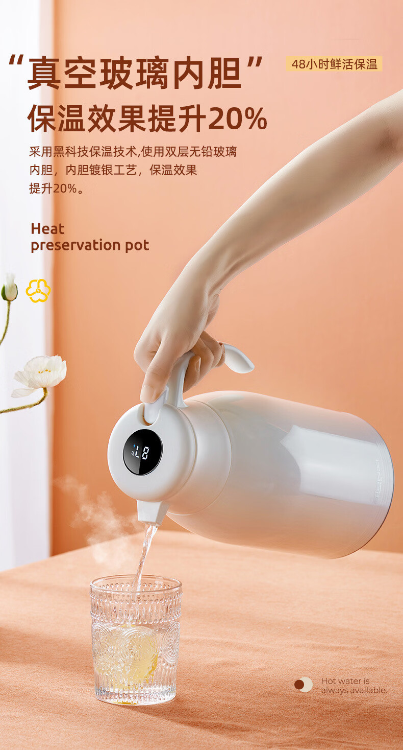 膳魔方日本进口品质创意ins网红清新大容量智能保温壶 北欧家用显温保温 粉色1900ml-普通 欧米保温壶玻璃内胆