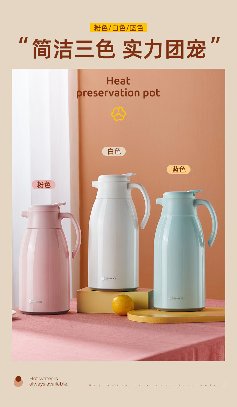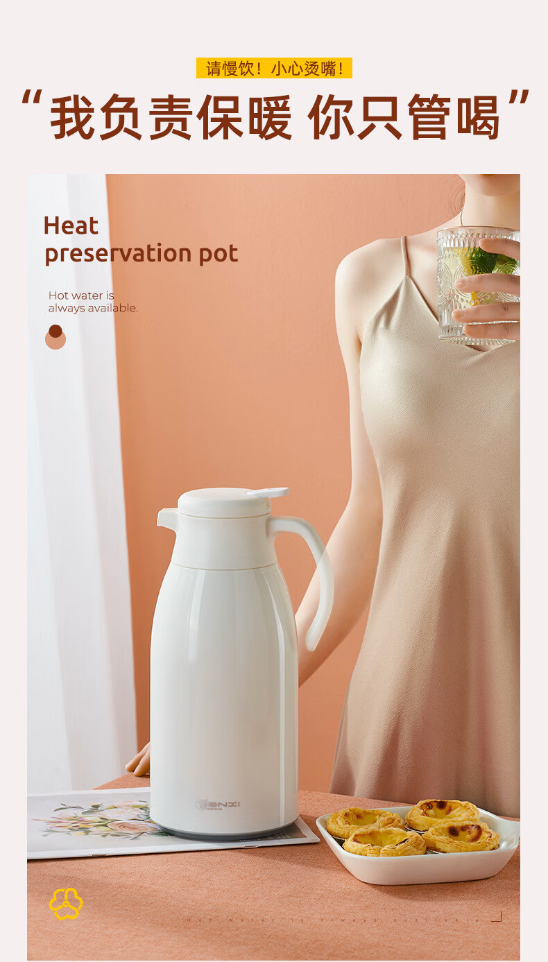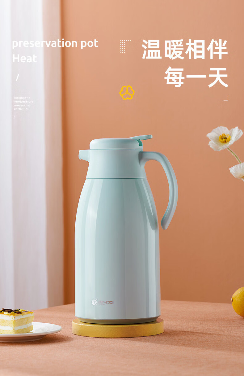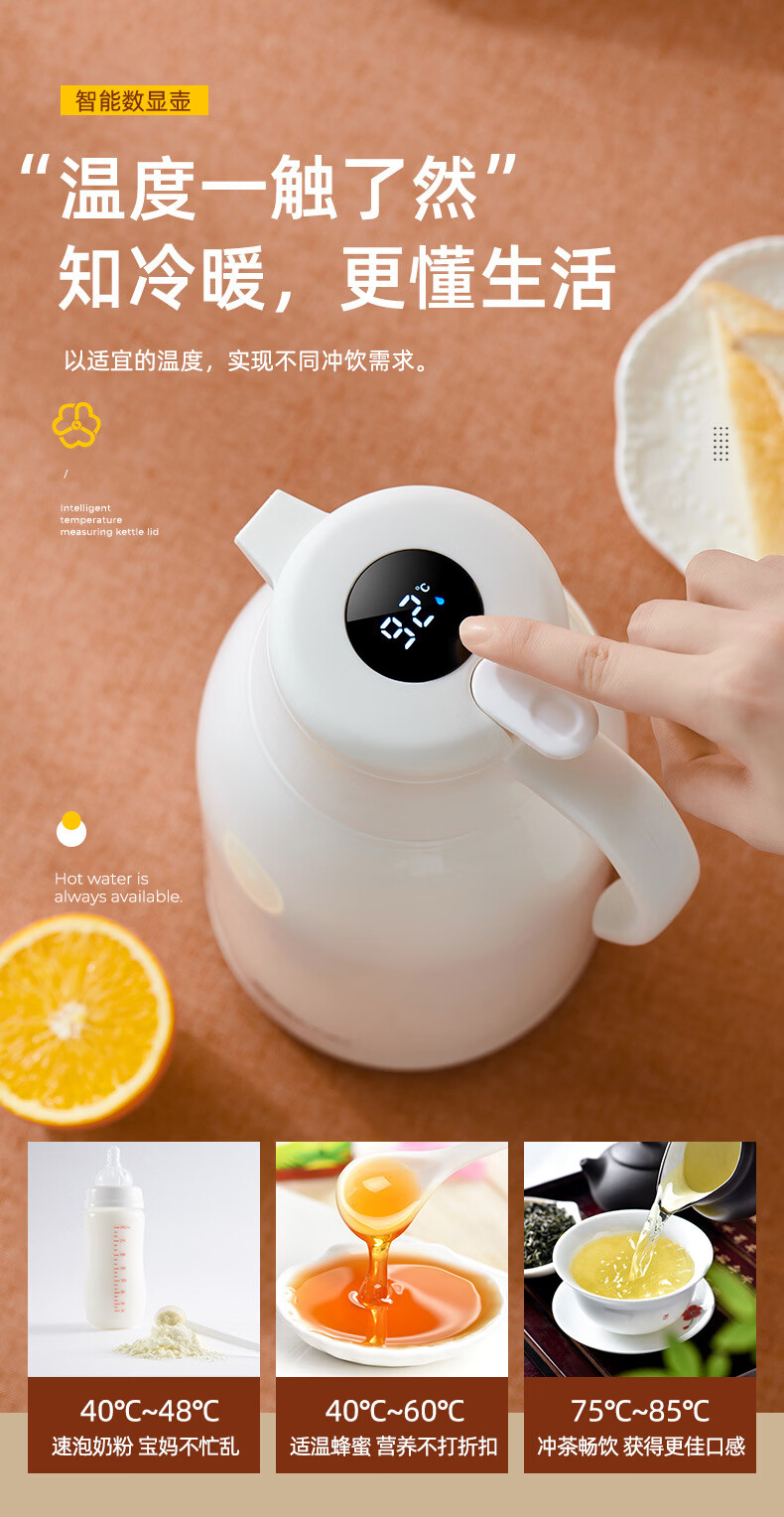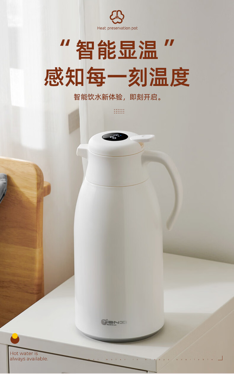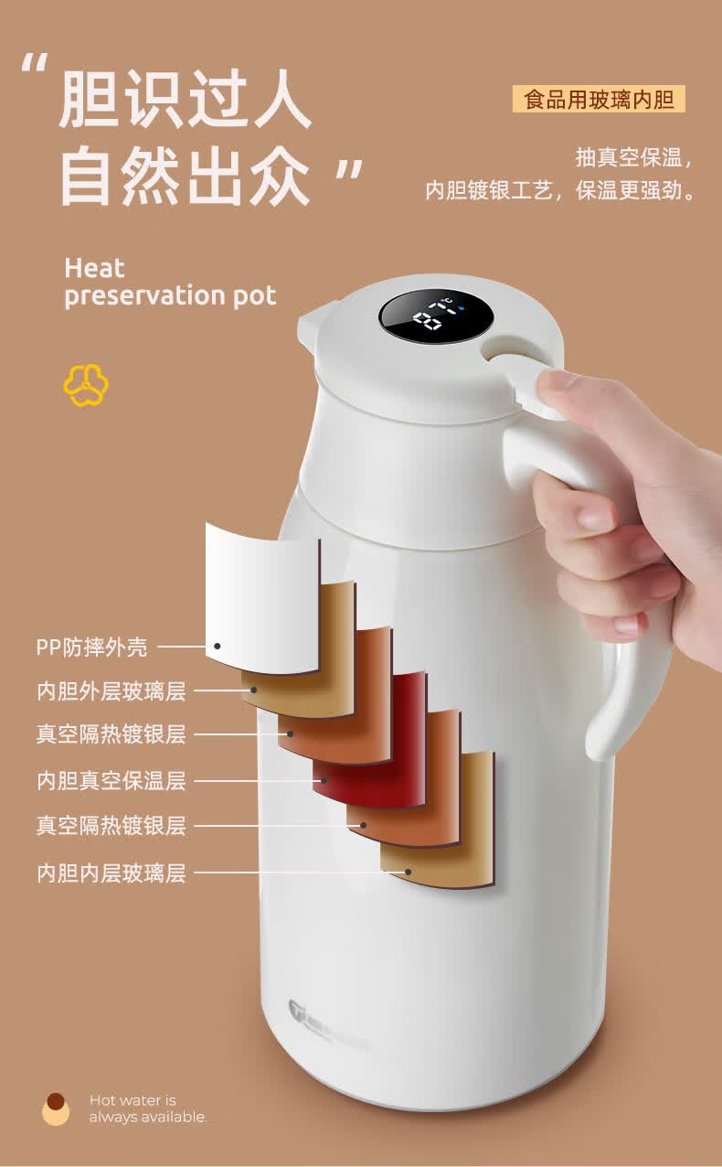 膳魔方日本进口品质创意ins网红清新大容量智能保温壶 北欧家用显温保温 粉色1900ml-普通 欧米保温壶玻璃内胆