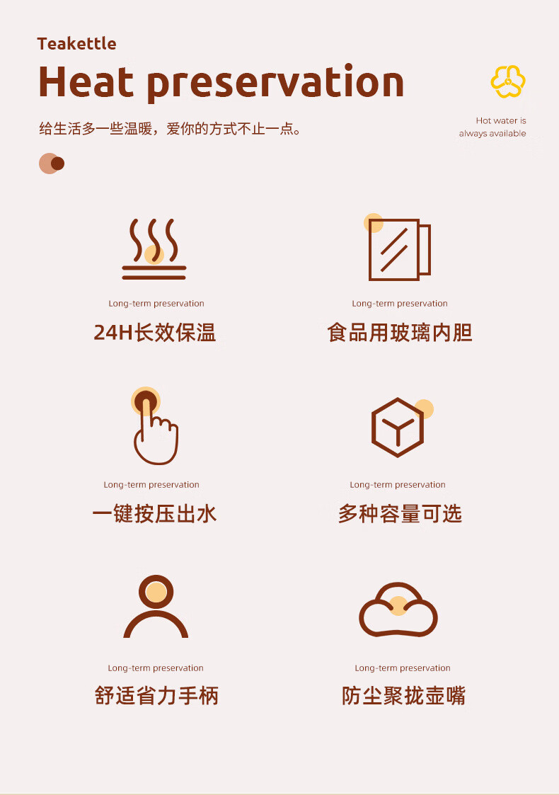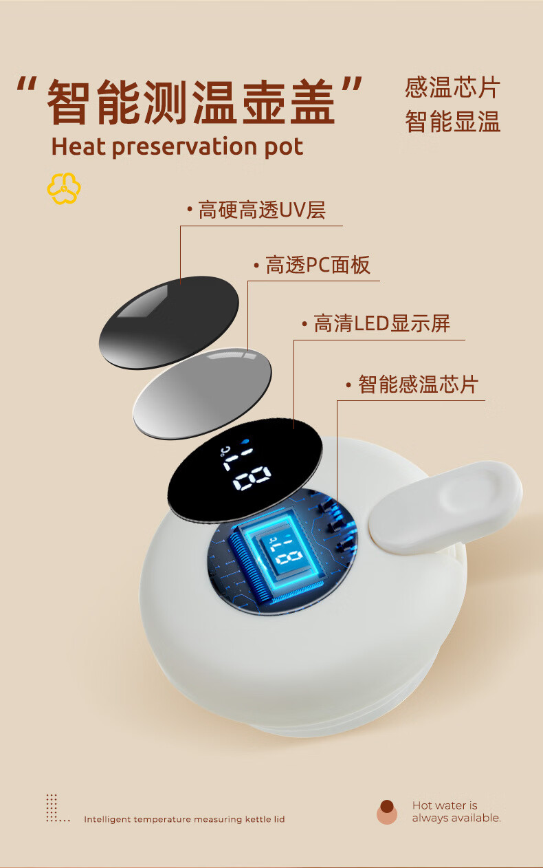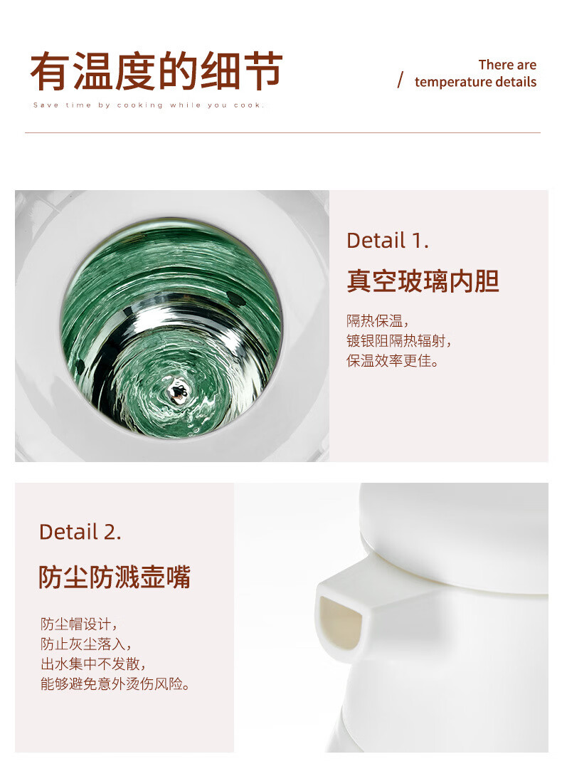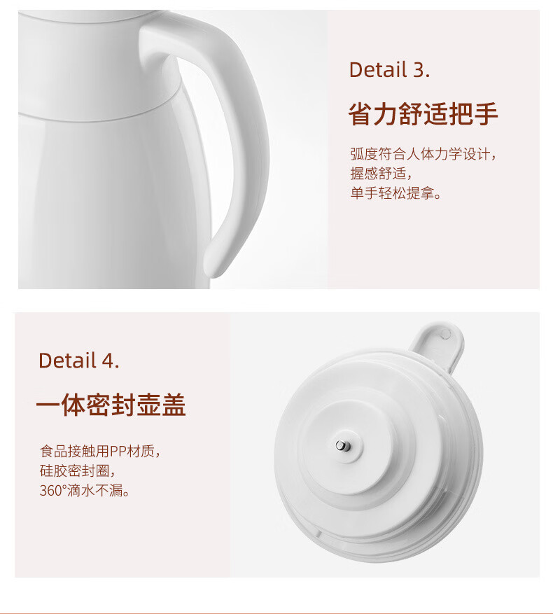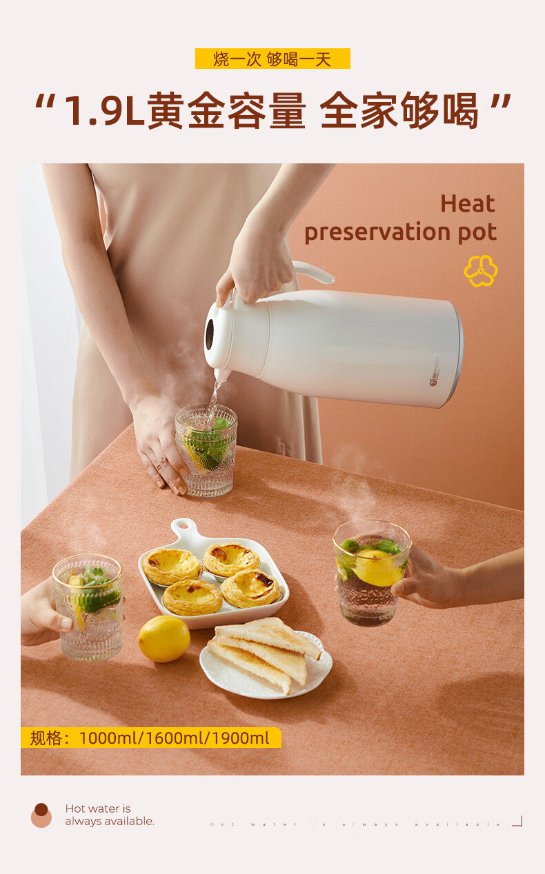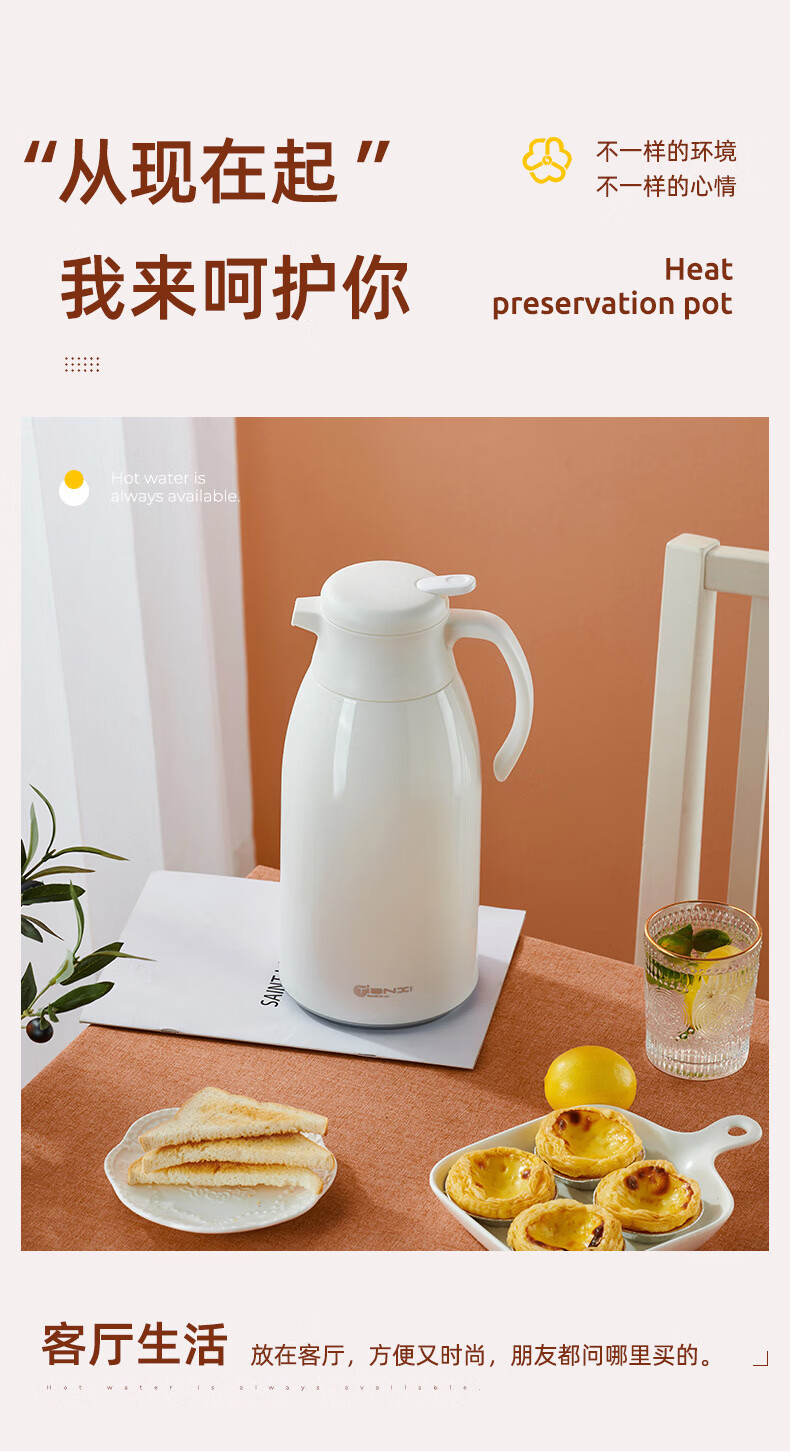 膳魔方日本进口品质创意ins网红清新大容量智能保温壶 北欧家用显温保温 粉色1900ml-普通 欧米保温壶玻璃内胆
