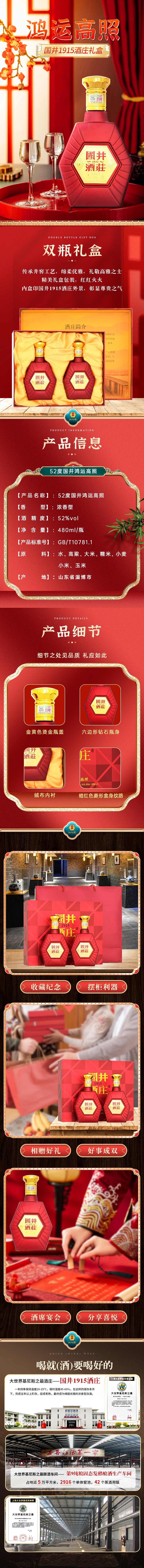 国井白酒 山东名酒 鸿运高照 礼盒装白酒 浓香型 52度 480mL 2瓶 手提礼盒装