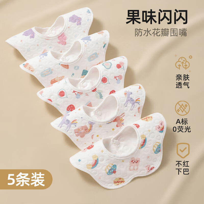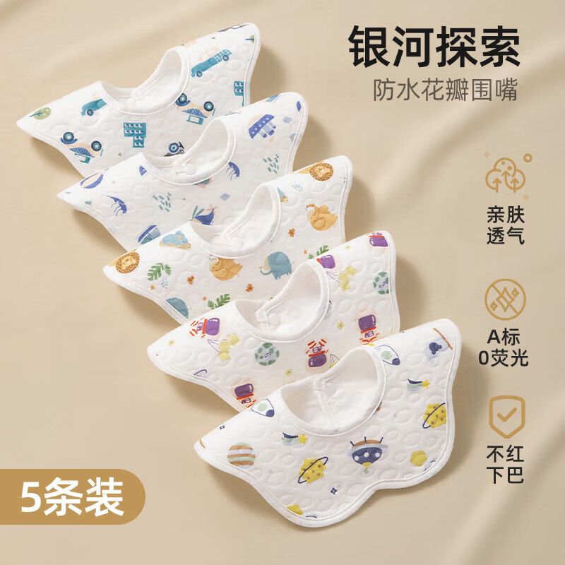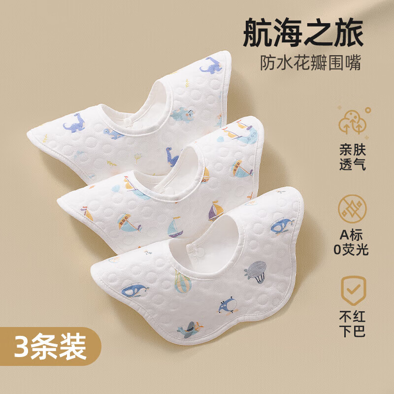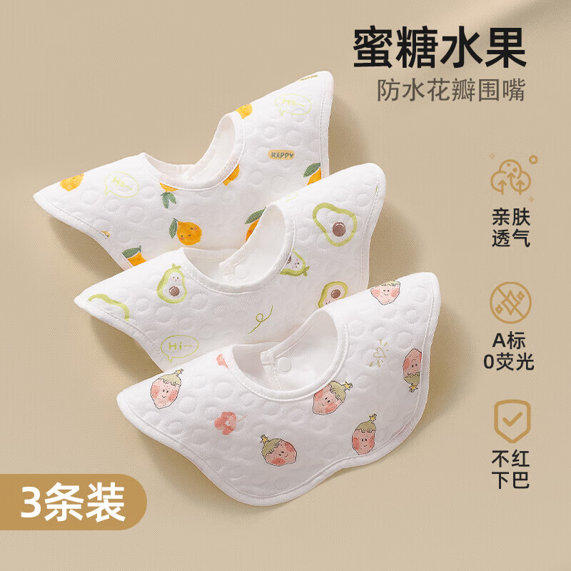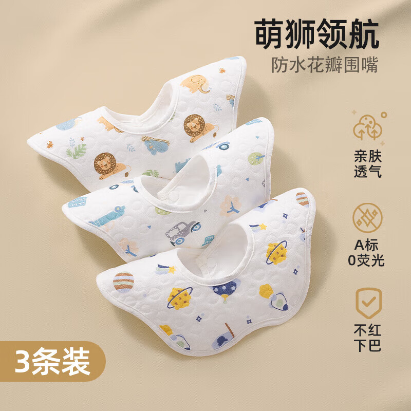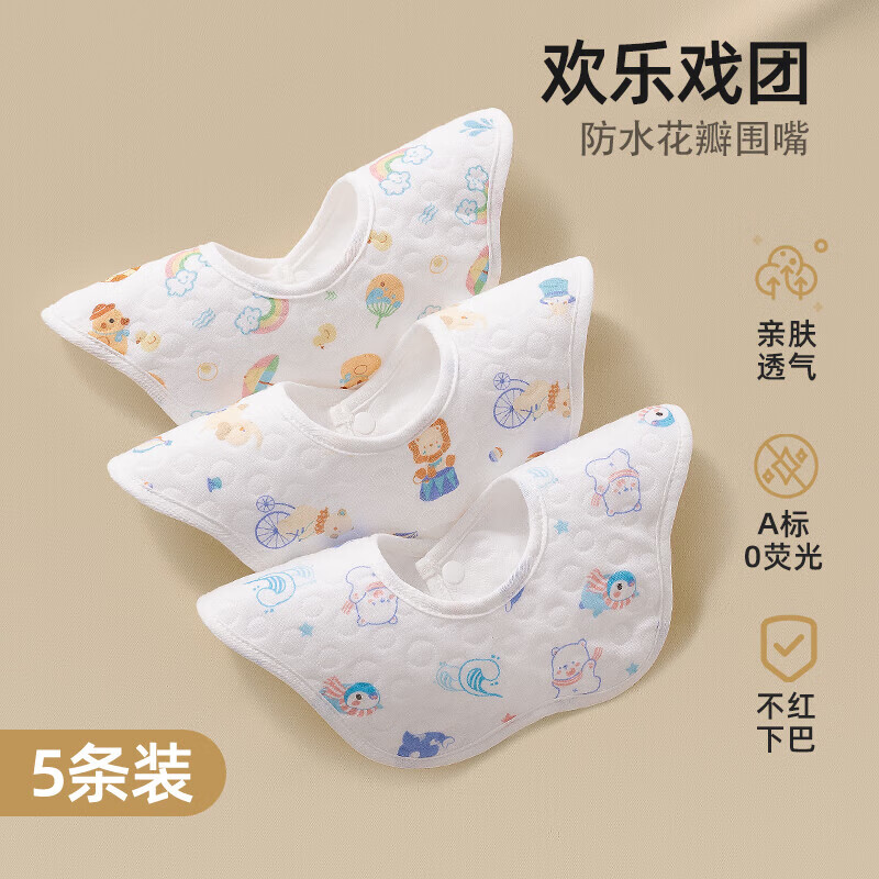 贝肽斯口水巾婴儿围嘴新生儿宝宝纯棉防水防吐奶吃饭花瓣围兜 欢乐戏团(花瓣款 3条装) 通用25×25cm