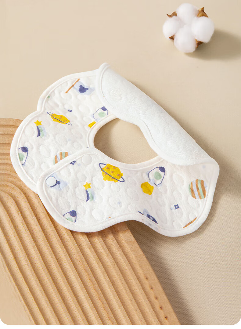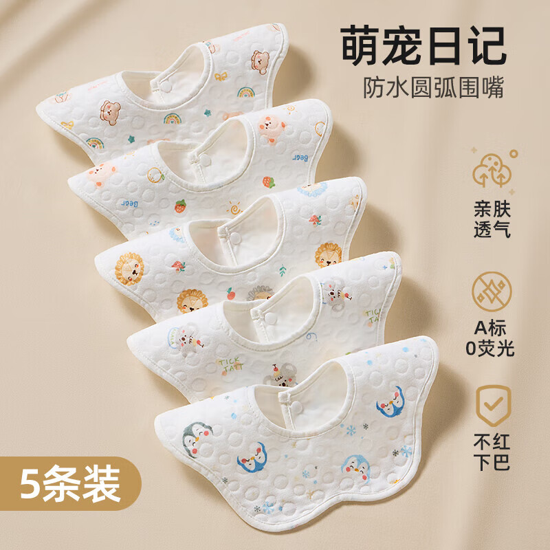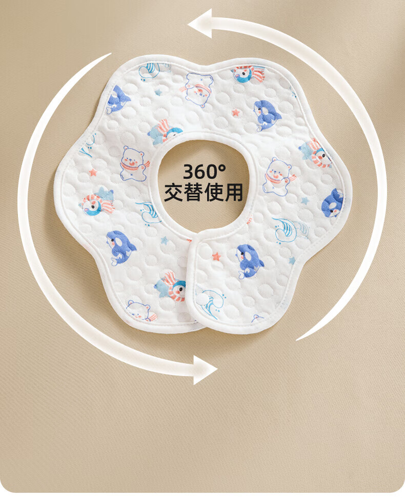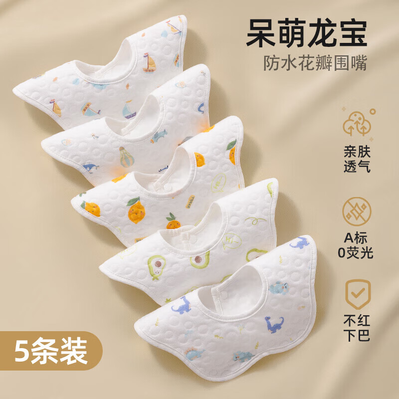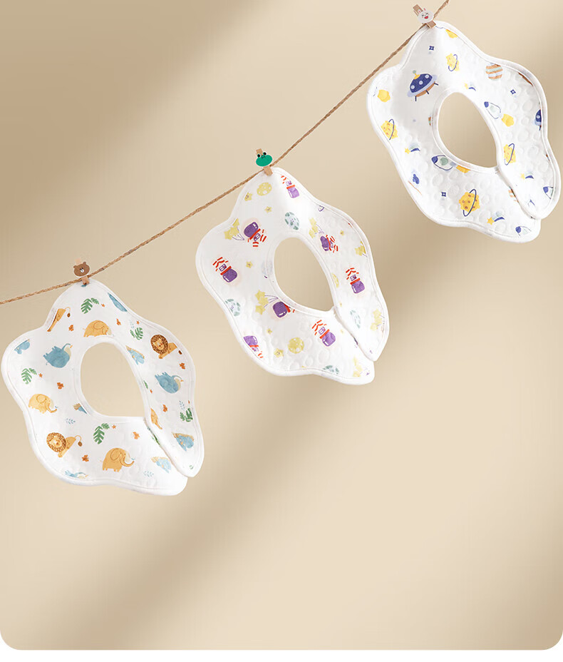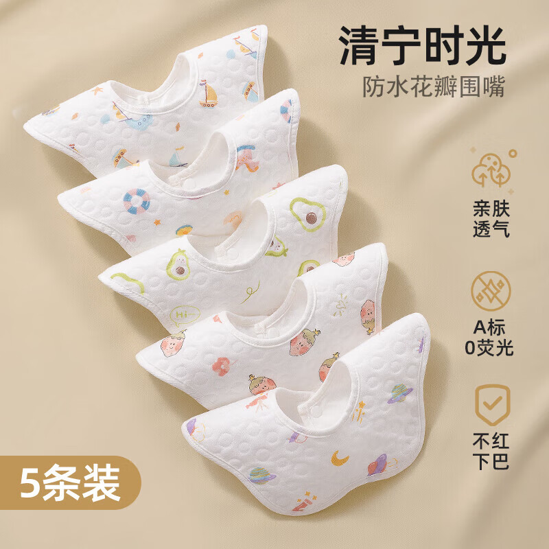 贝肽斯口水巾婴儿围嘴新生儿宝宝纯棉防水防吐奶吃饭花瓣围兜 欢乐戏团(花瓣款 3条装) 通用25×25cm