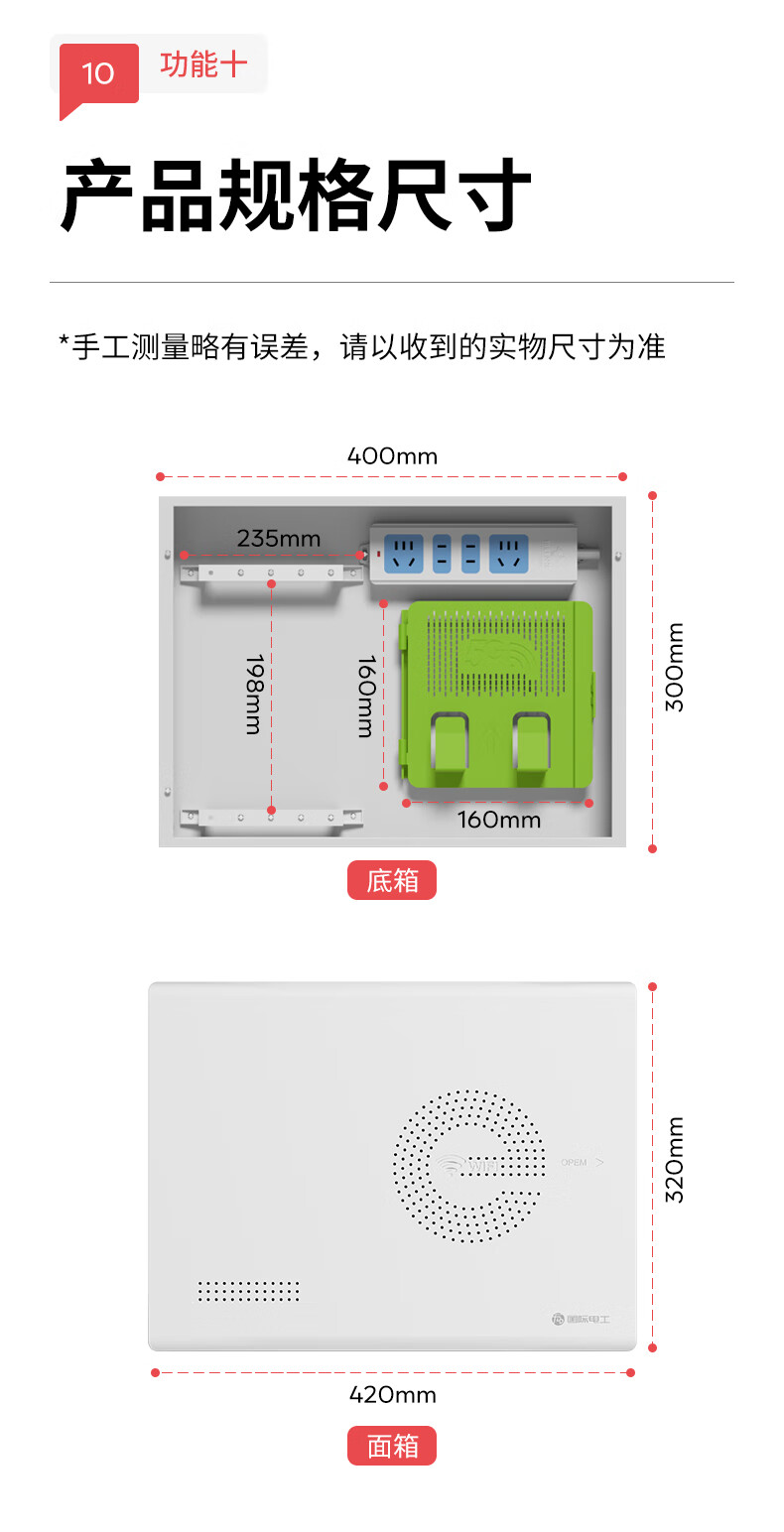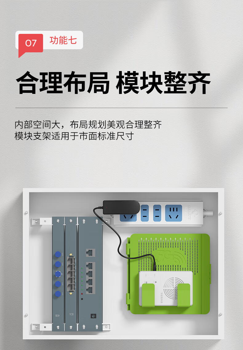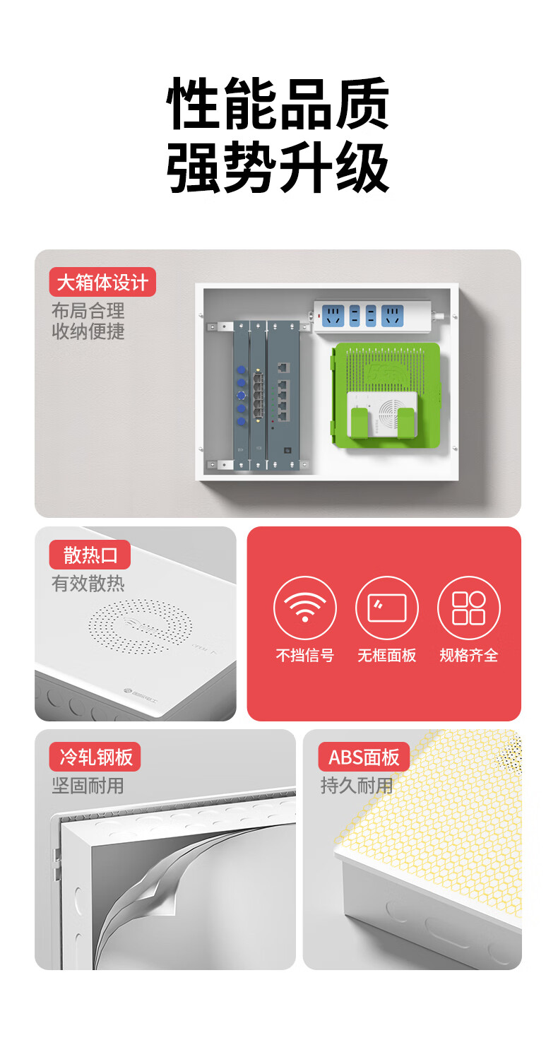 国际电工(FDD)弱电箱家用多媒体信息箱光纤集线箱入户网络布线配电箱 箱盖一体 400*300*100厚款空箱+双层猫架+公牛排插