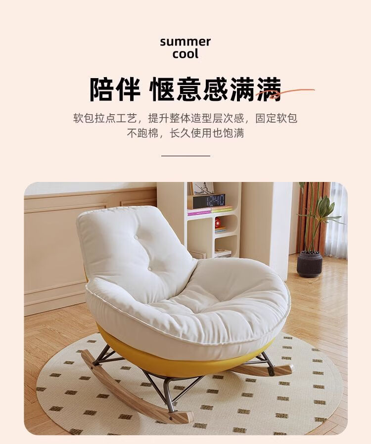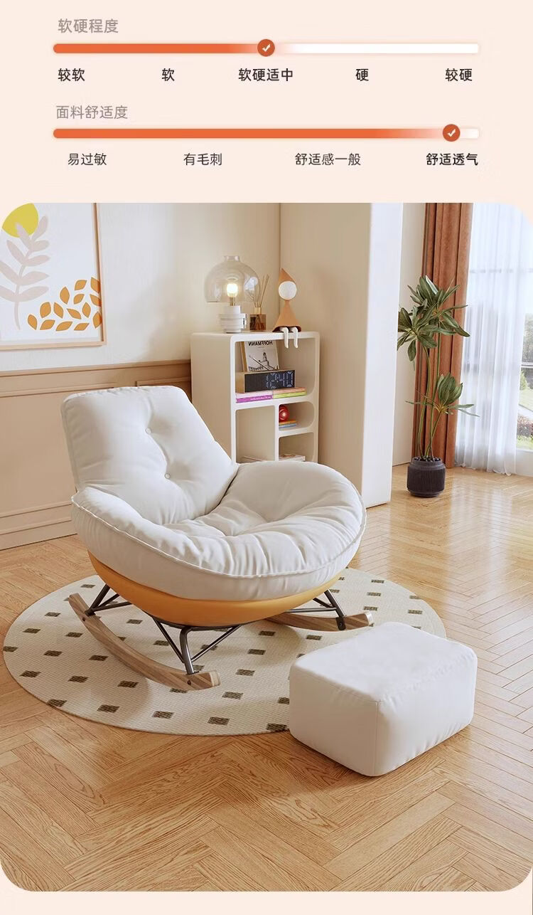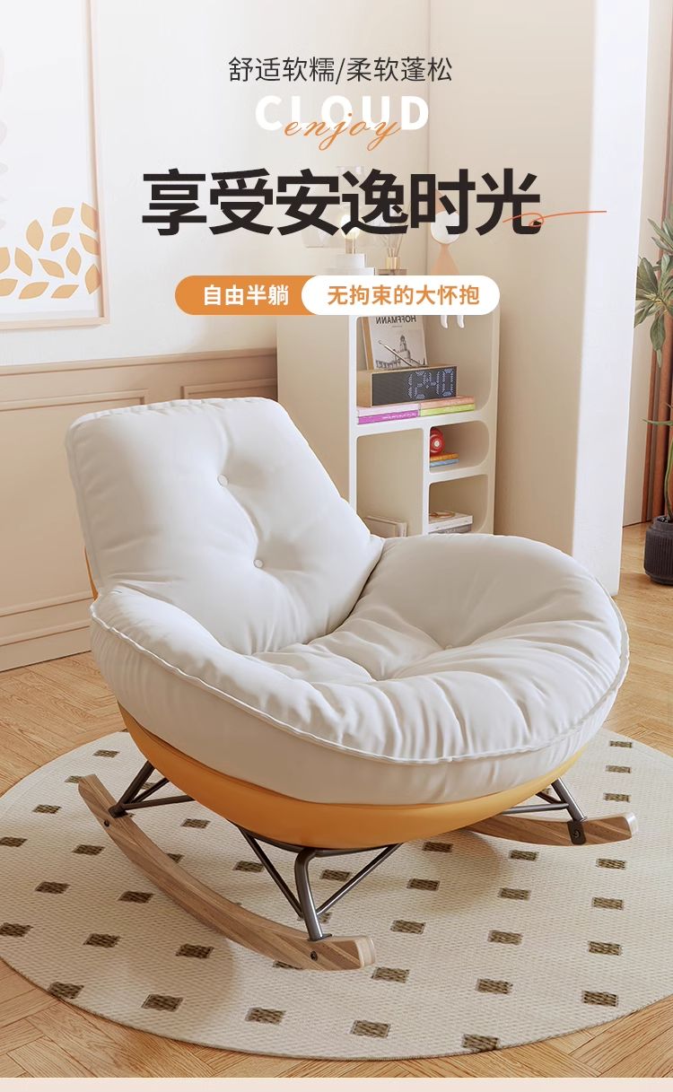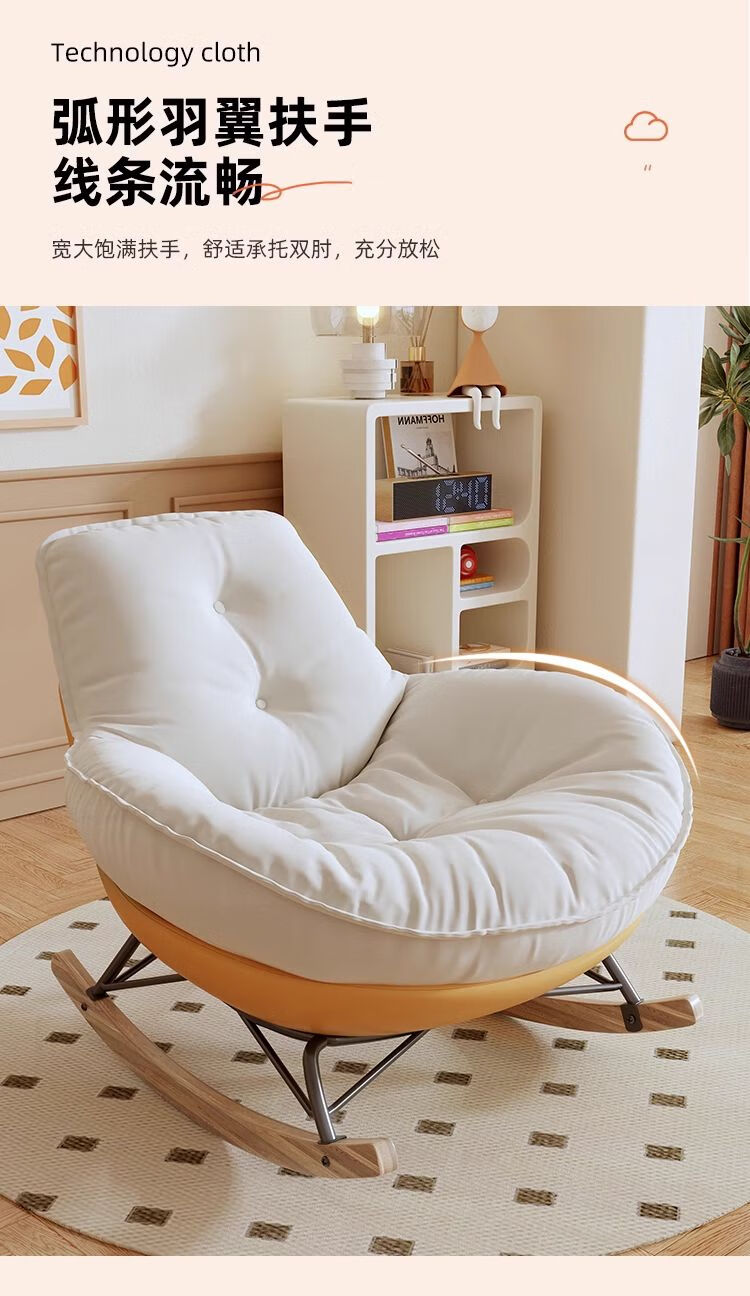 欣慕雅企鹅摇椅懒人蛋壳沙发躺椅成人客厅蜗牛阳台单人家用休闲卧室摇摇 橙色底座+绒布坐包【新款大号】