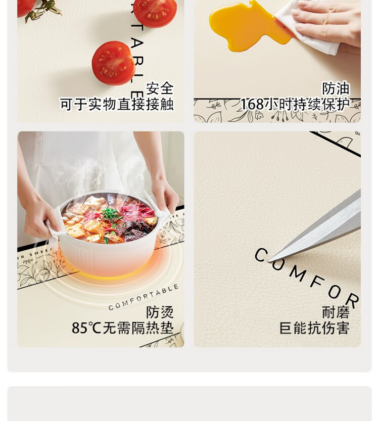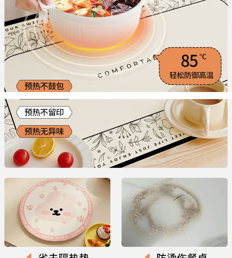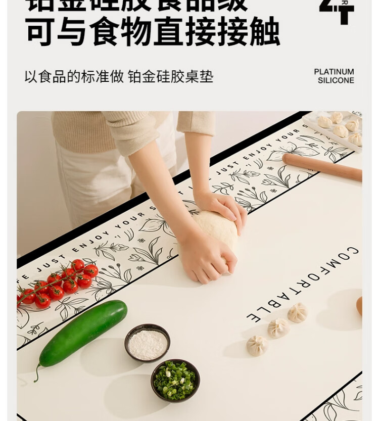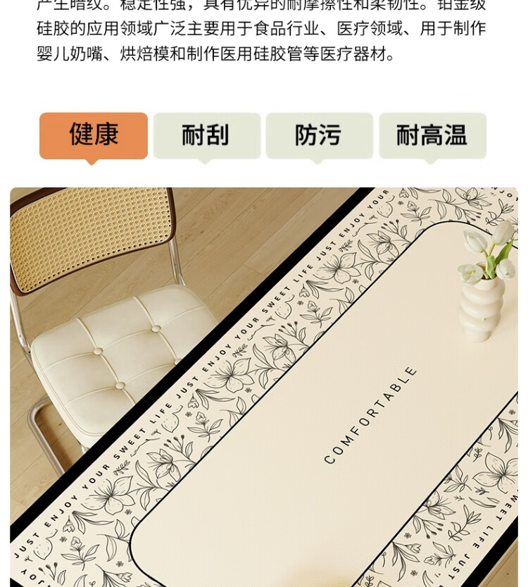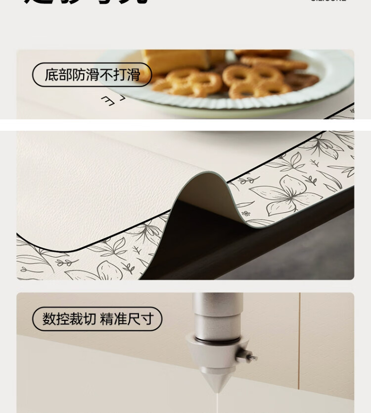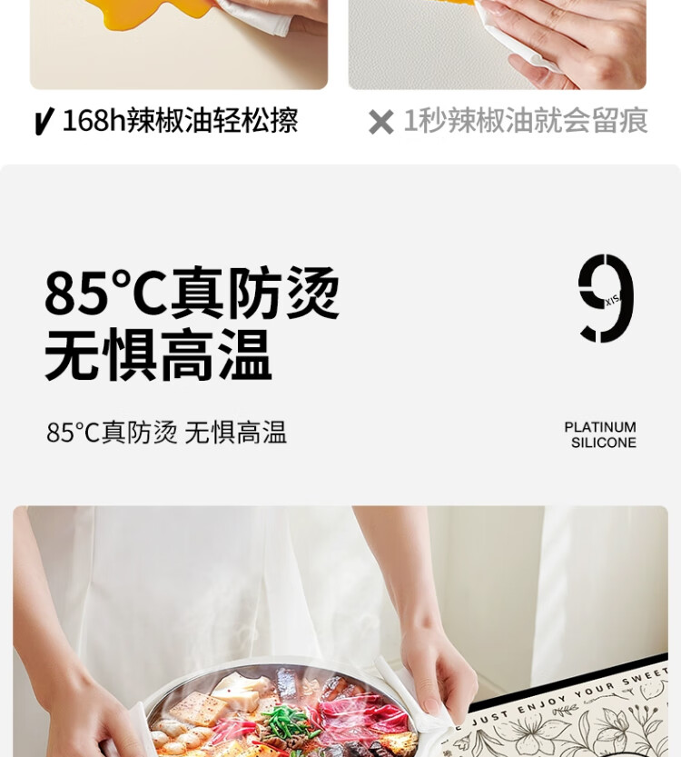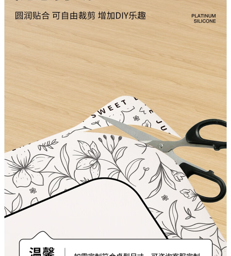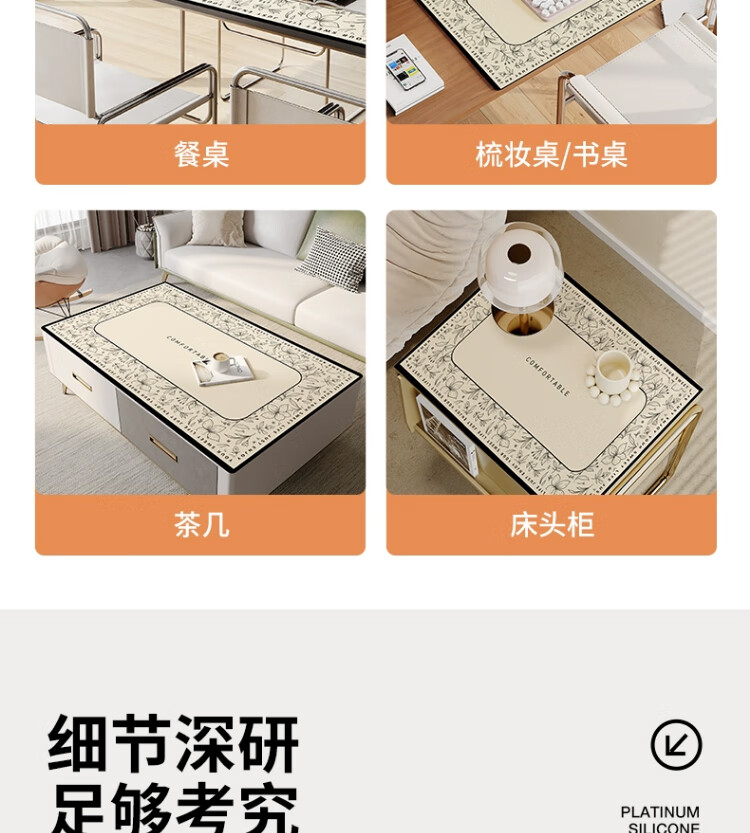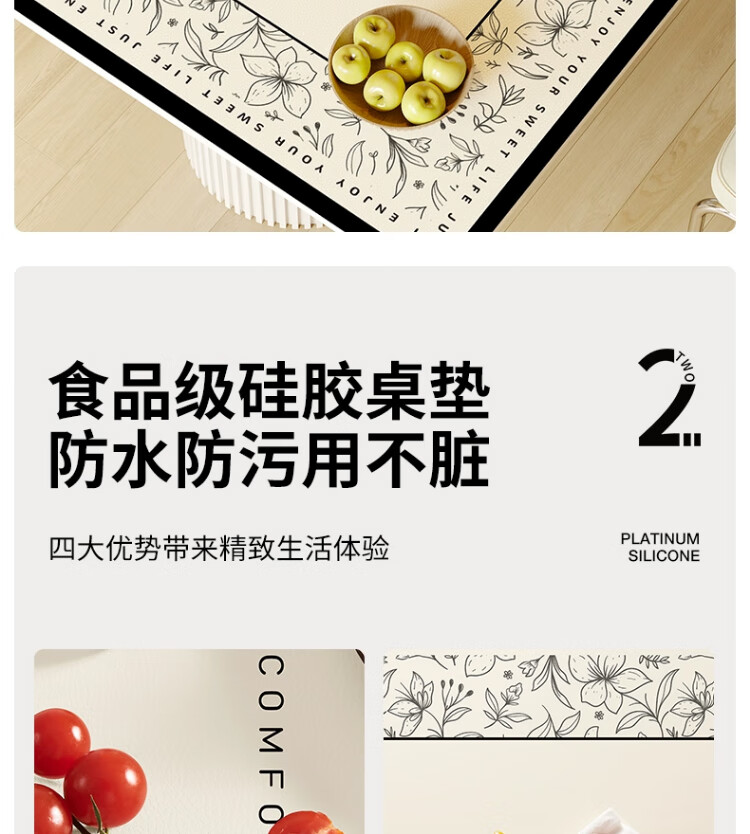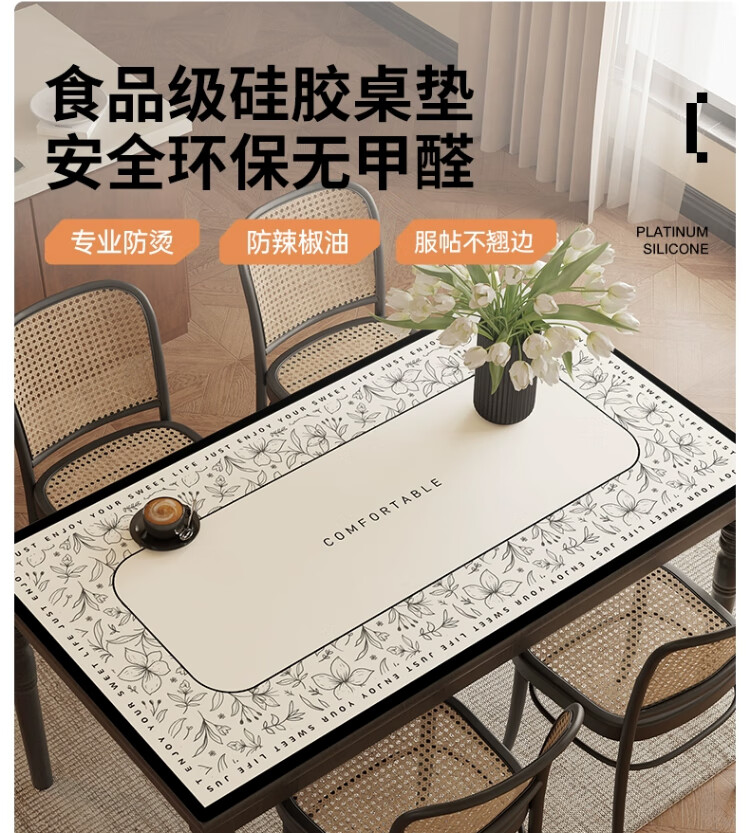 朗格【0异味硅胶】中古风桌布防水防油防烫免洗桌垫轻奢高级感餐桌垫 罗薇 【升级防滑紧贴桌面】 60*60cm