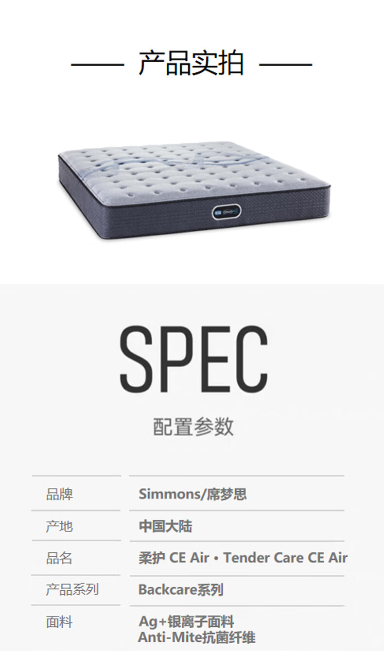 席梦思天然乳胶床垫 银离子抑菌AIR呼吸棉双人床垫1.8x2米 柔护CE Air 【柔护CE Air】【新品升级】 1800*2000