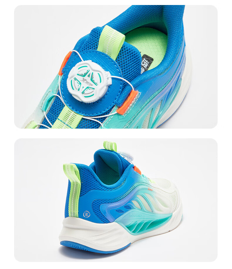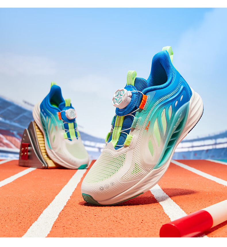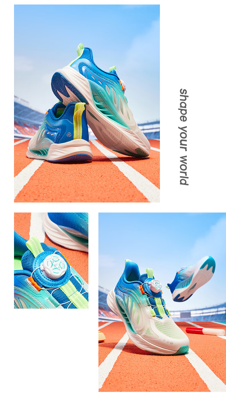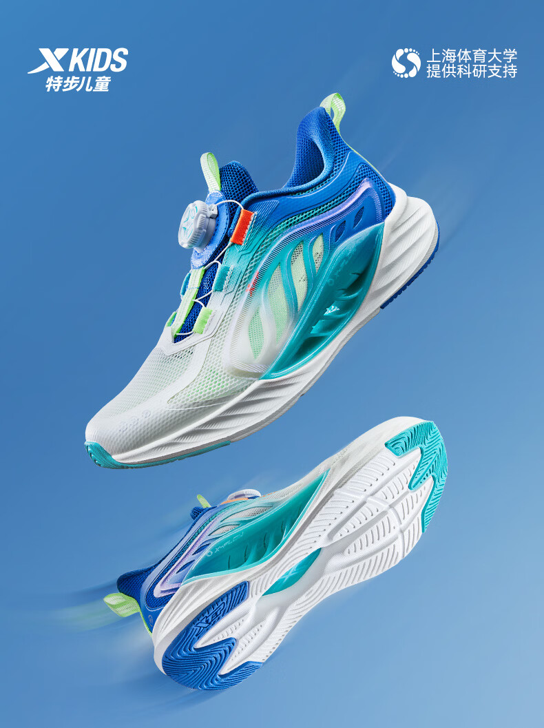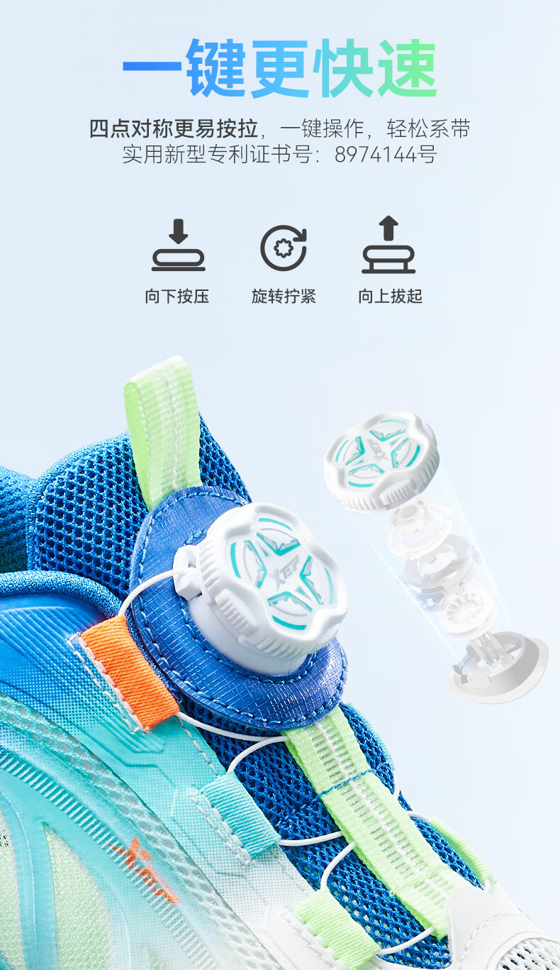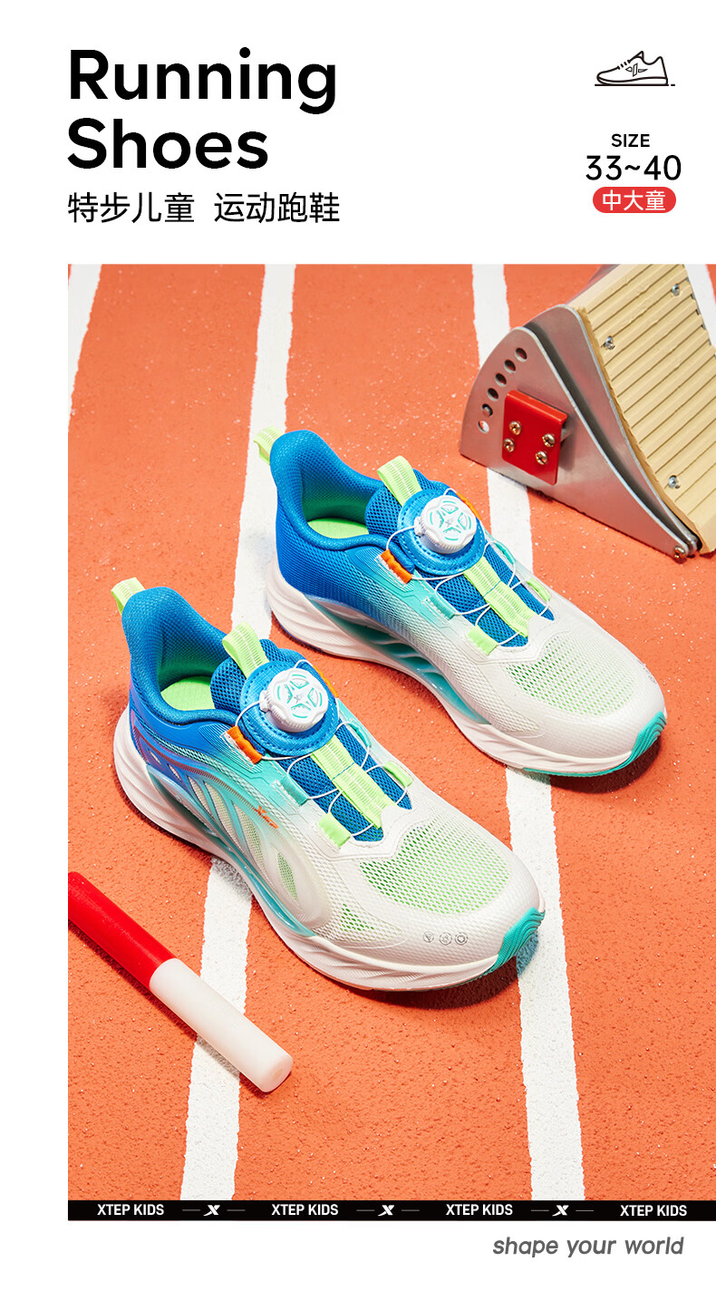 特步(XTEP)【氢风8.0】儿童童鞋男小童透气旋转扣跑鞋 黑/极光绿 33