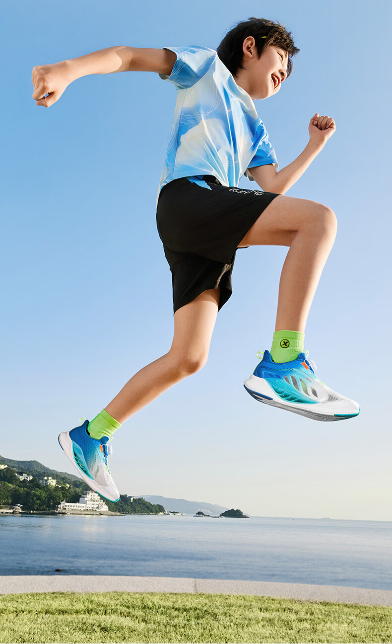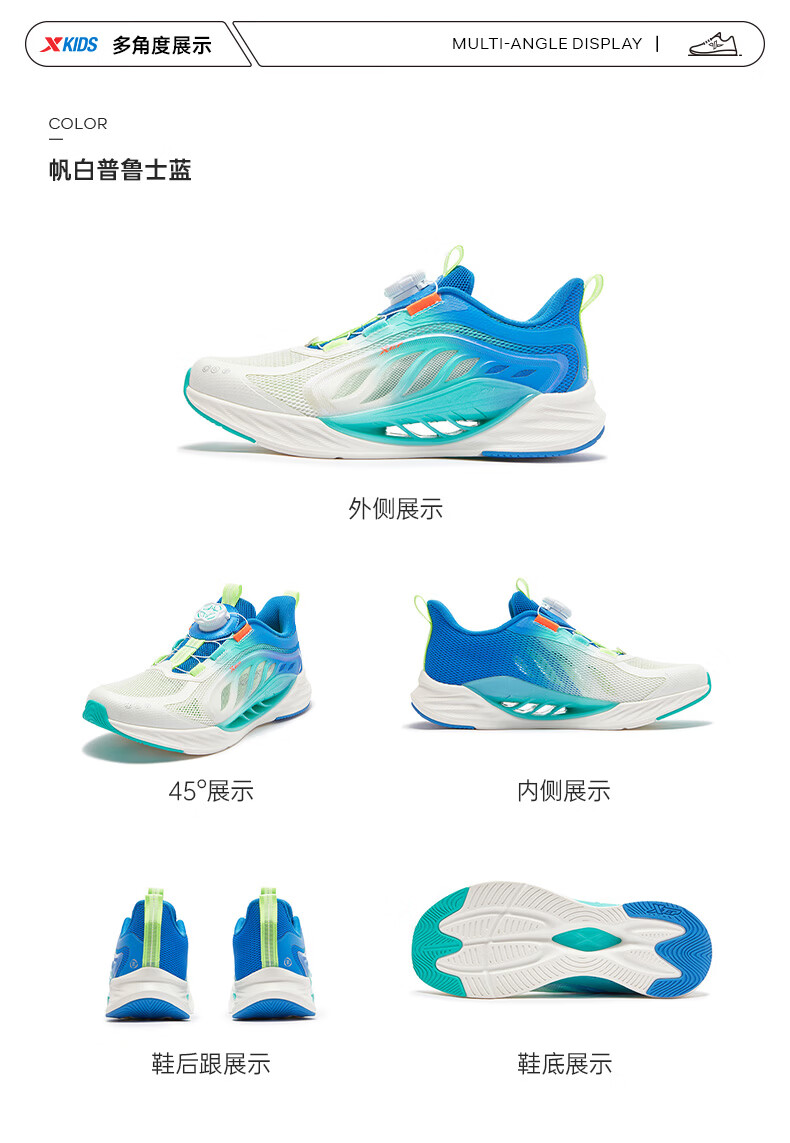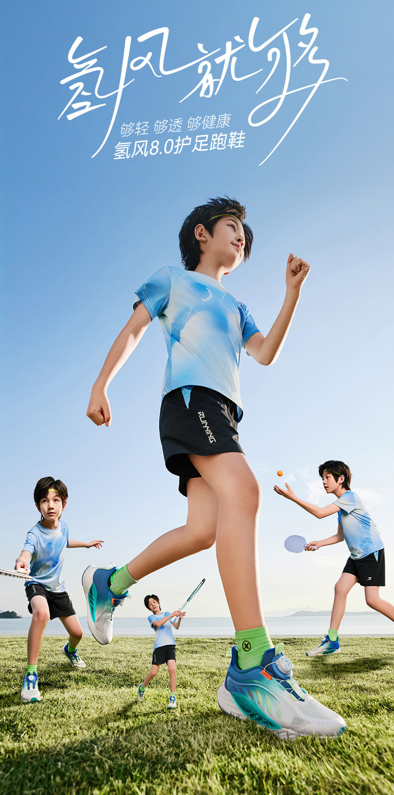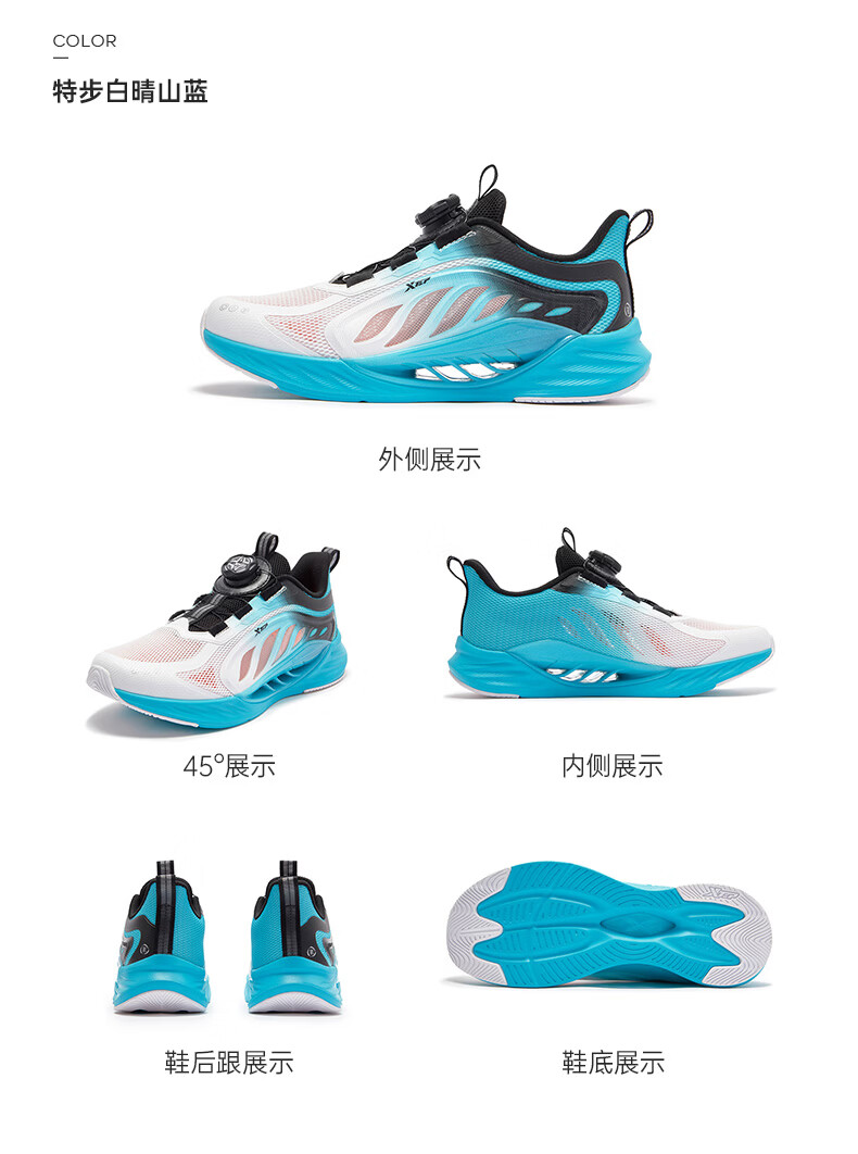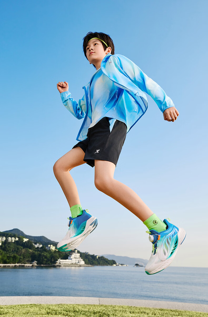 特步(XTEP)【氢风8.0】儿童童鞋男小童透气旋转扣跑鞋 黑/极光绿 33