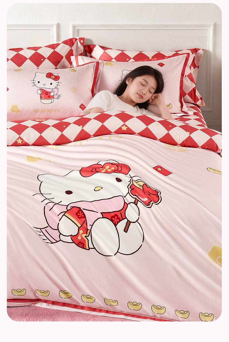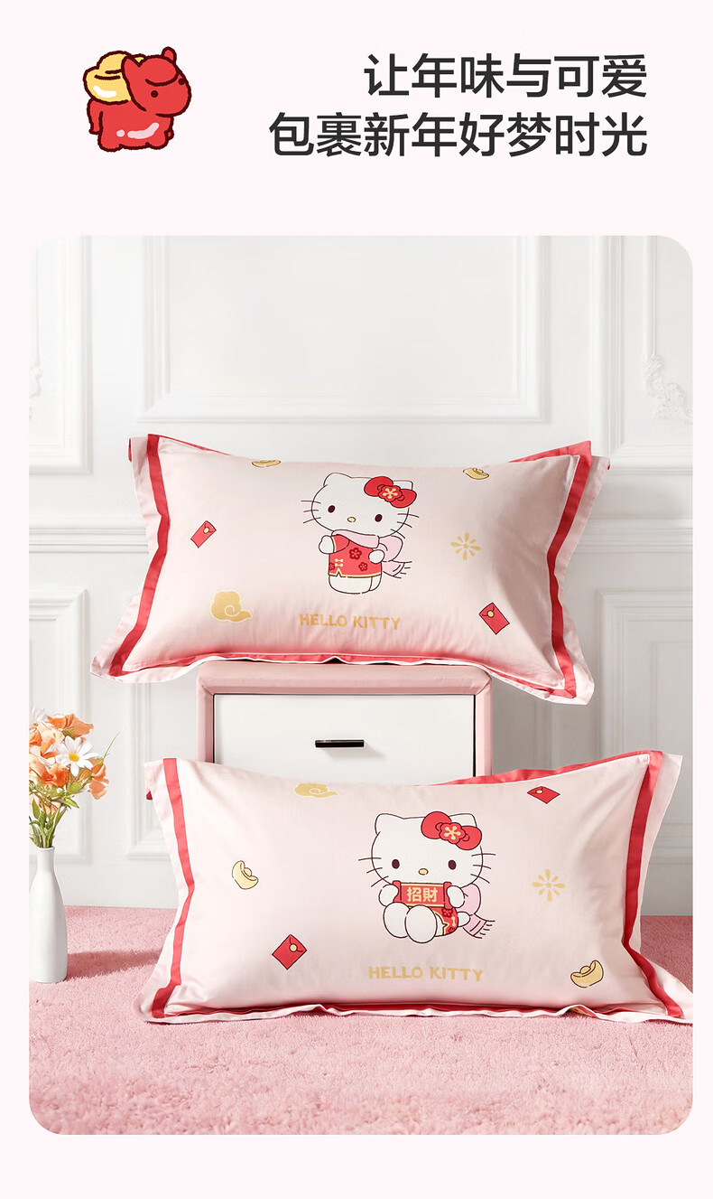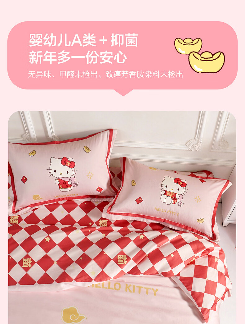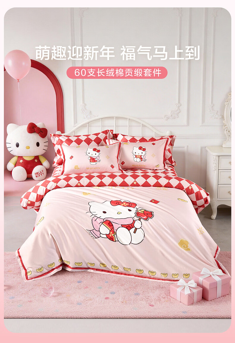 水星家纺儿童三件套60支长绒棉套件A类纯棉100%纯棉裸睡高级感26新款套件 福满满KT 床单款 (被套200*230cm)