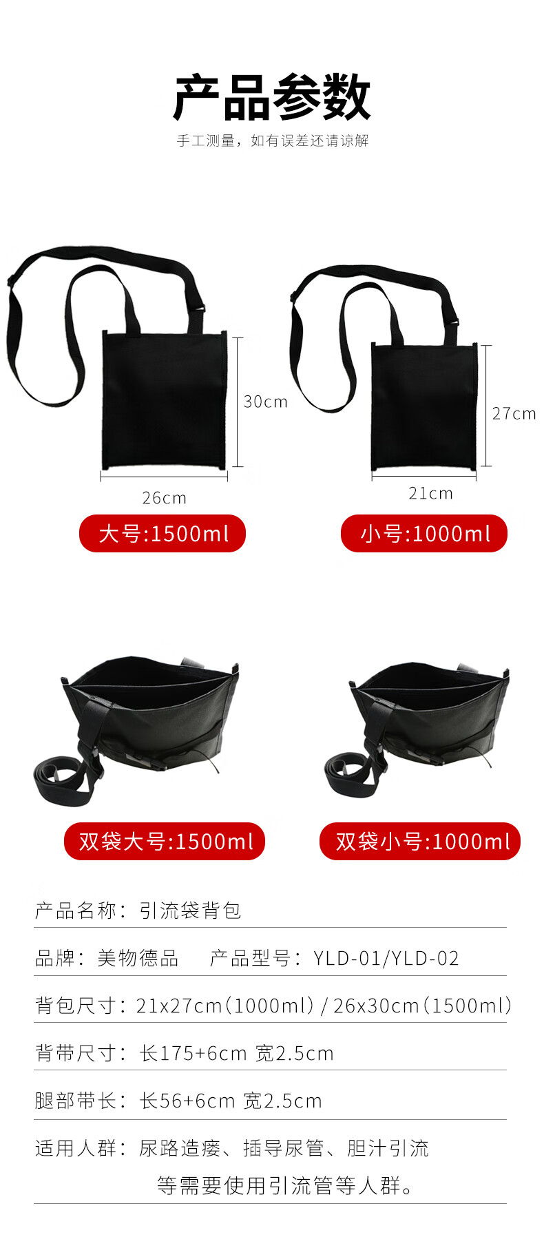 美物德品引流袋腰包背包袋子尿袋包老人造口造瘘病人专用包膀胱胆汁导管 方形引流袋单层背包(1000ML)