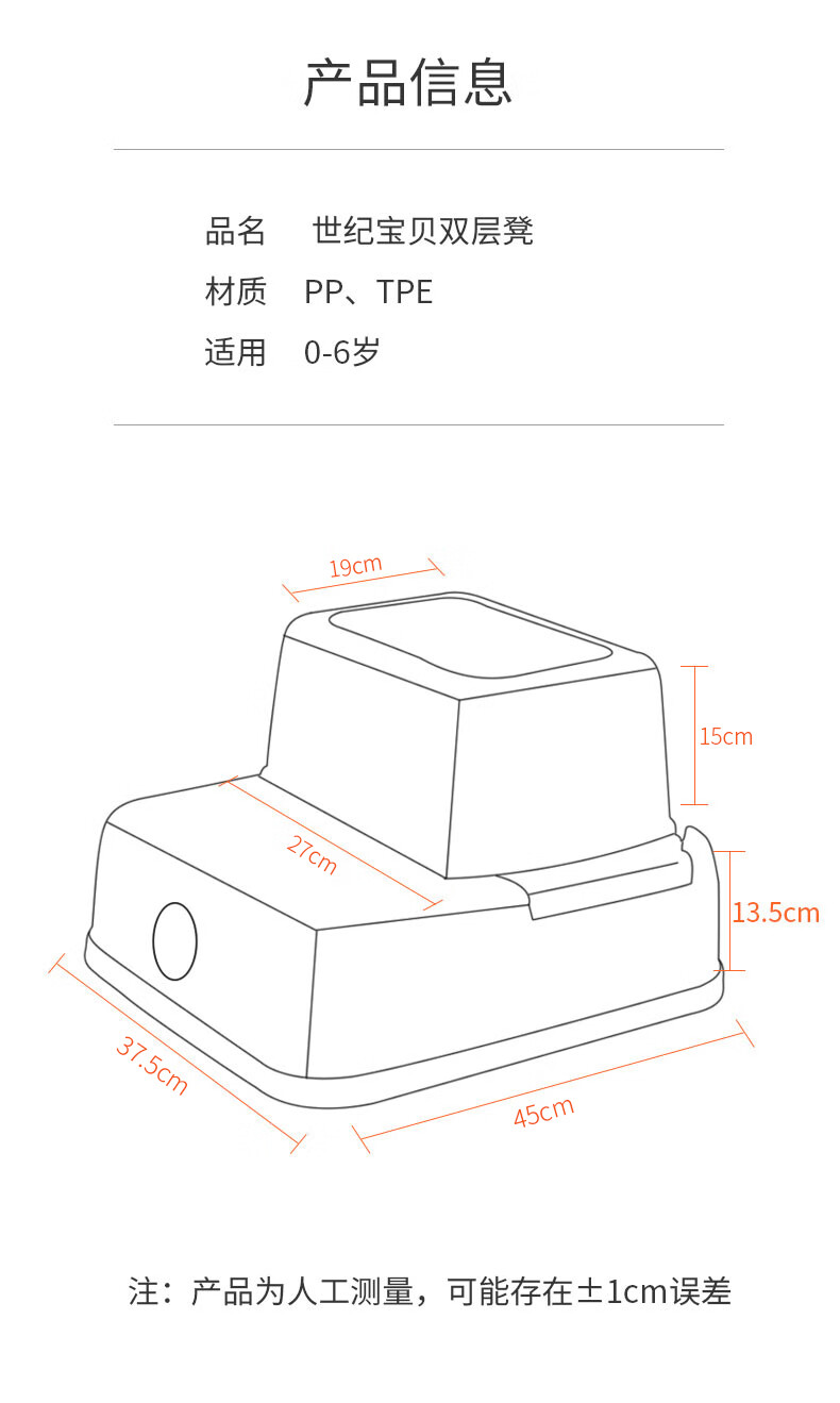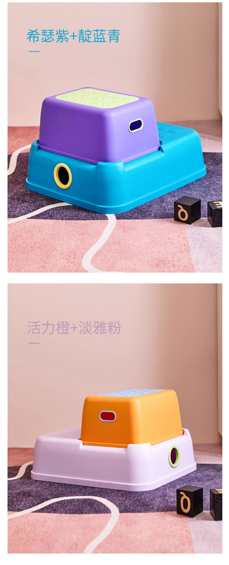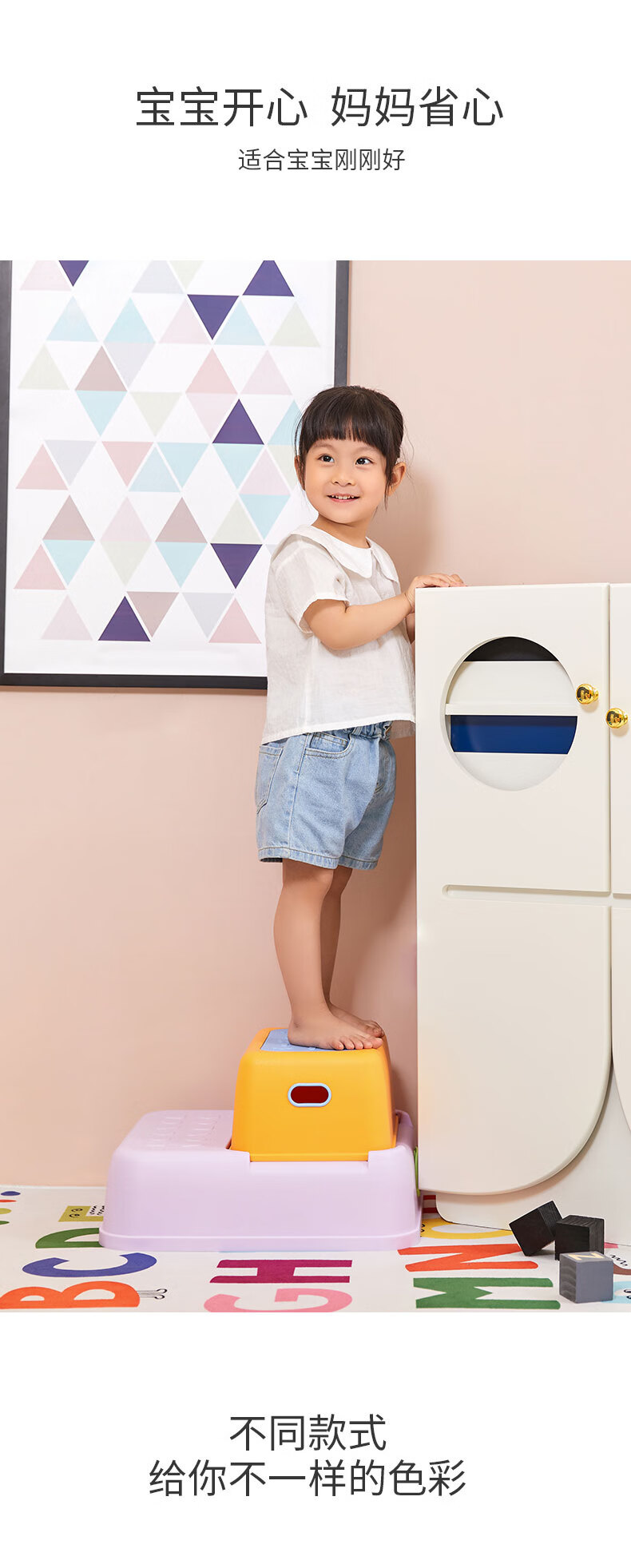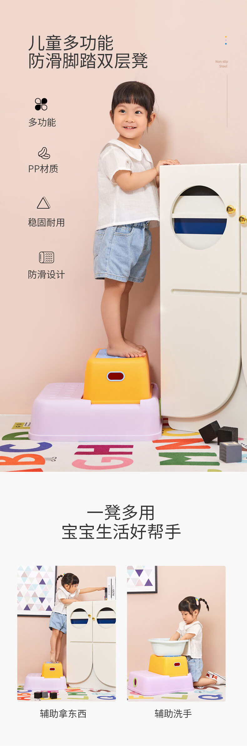 世纪宝贝(babyhood)多功能双层儿童踩脚凳宝宝防滑垫脚阶梯凳子儿童坐便圈辅助器 加厚几何单层凳 洛克黄