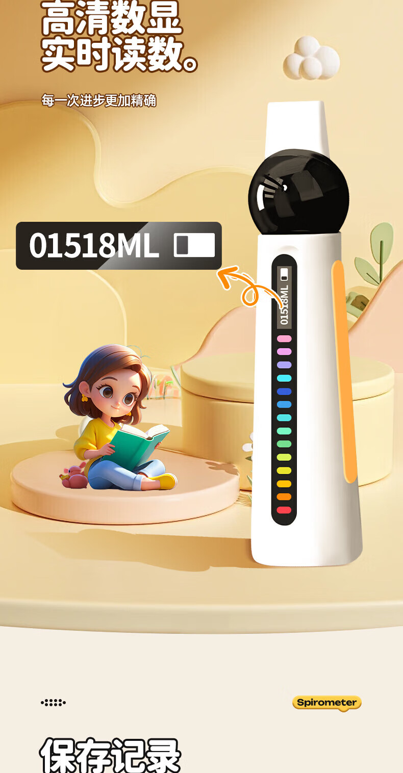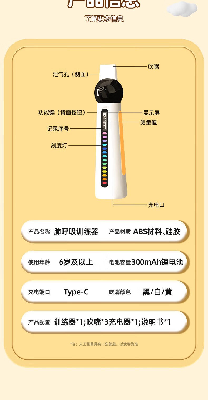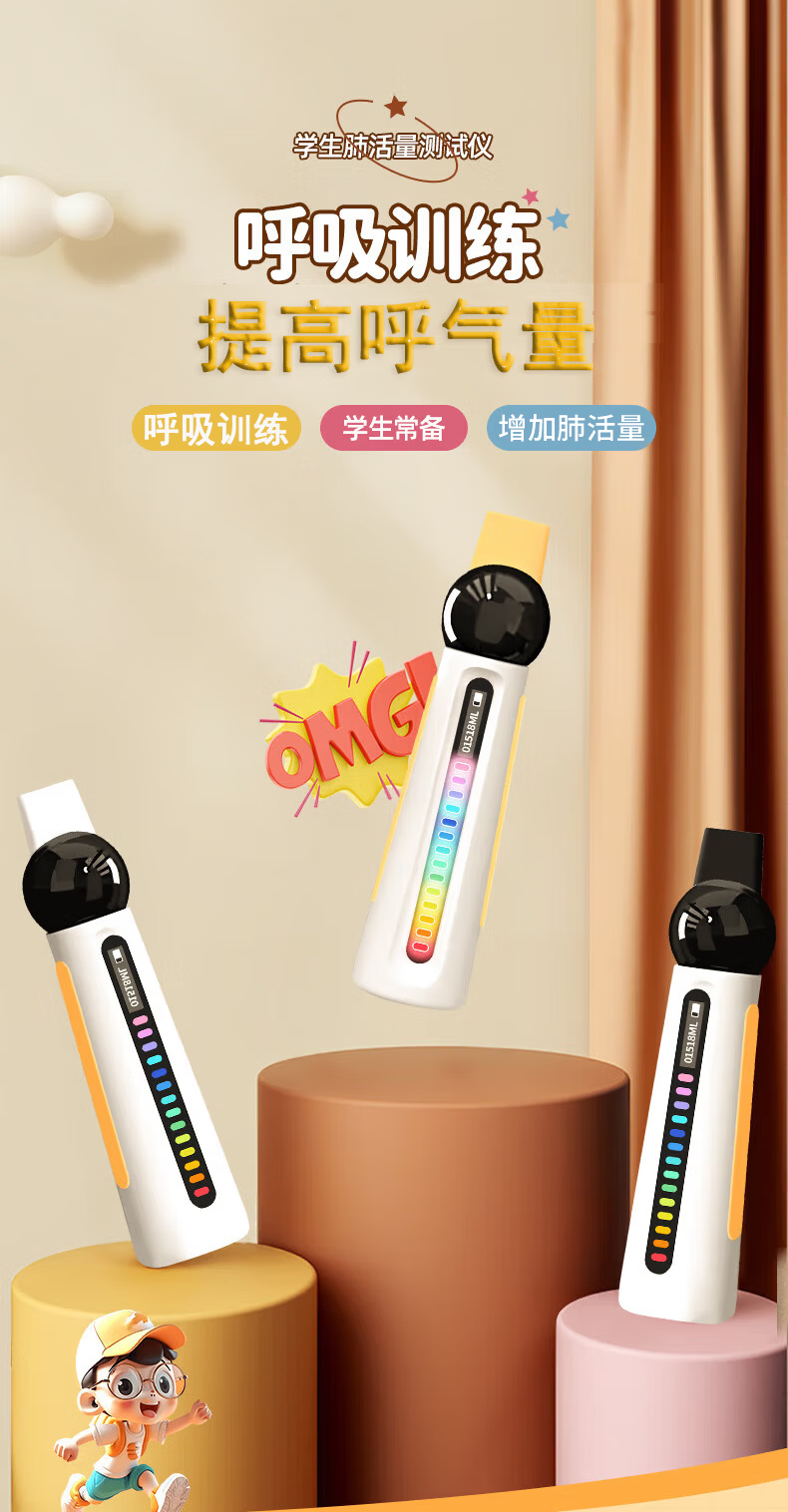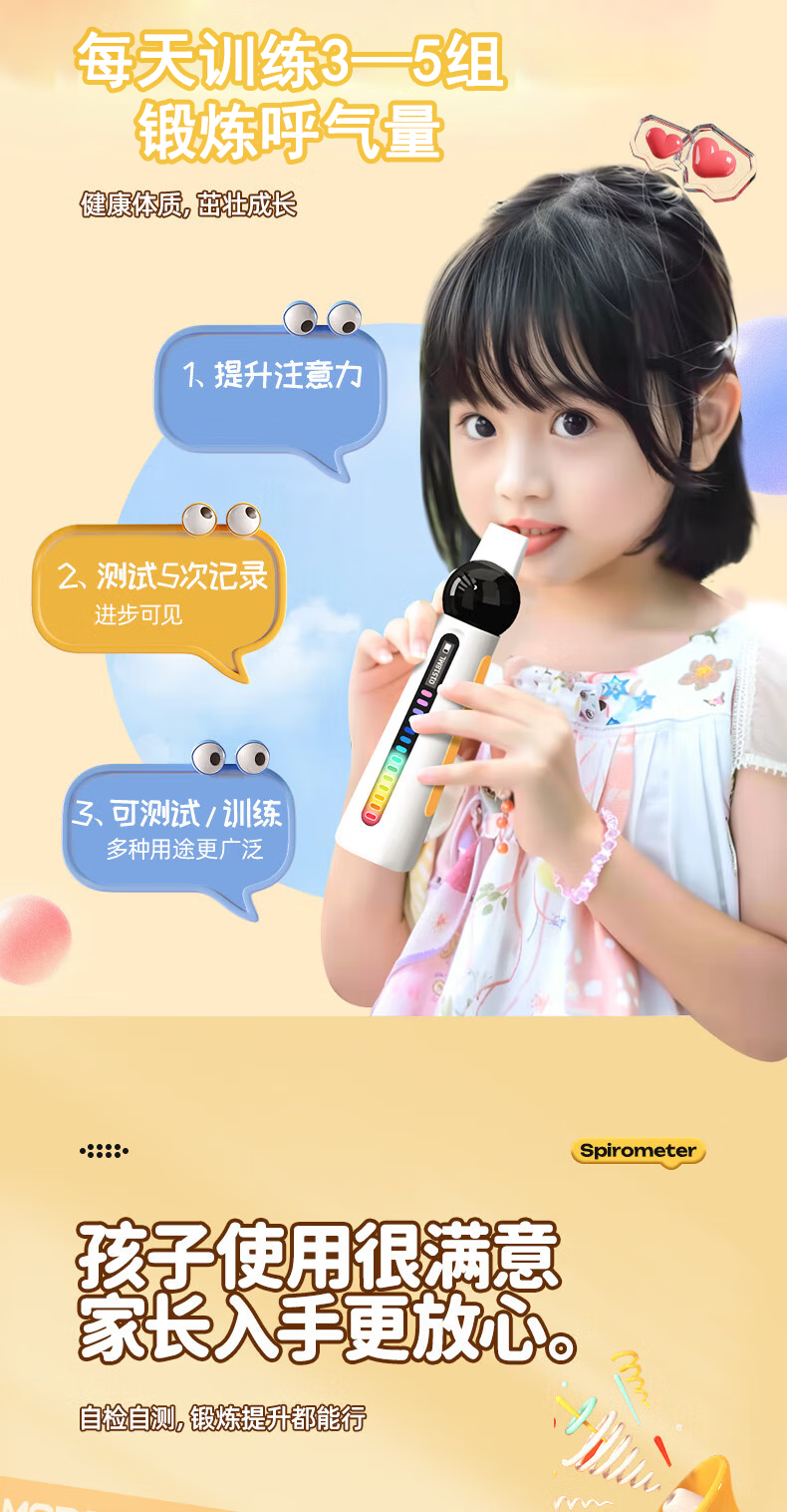 小在意肺活量呼吸训练器儿童锻炼肺部呼吸功能中小学生中考体测测试仪 【儿童/学生体侧】呼吸训练器【赠3个吹嘴+收纳袋】