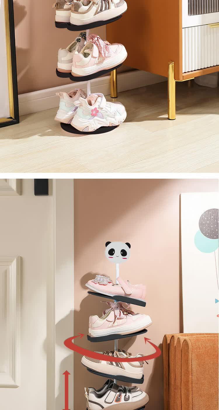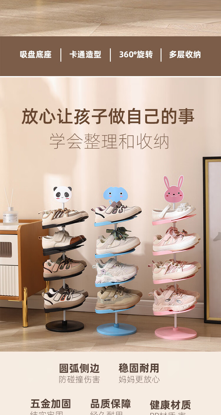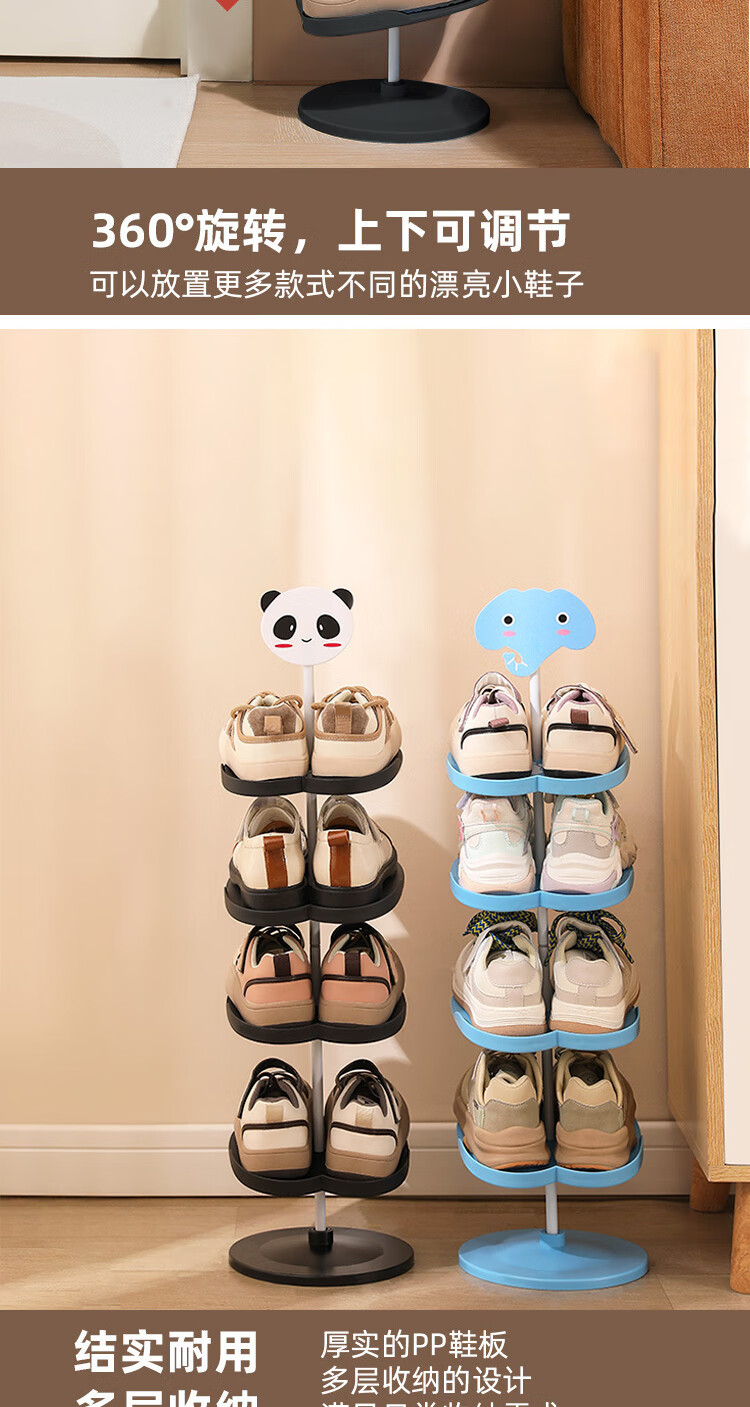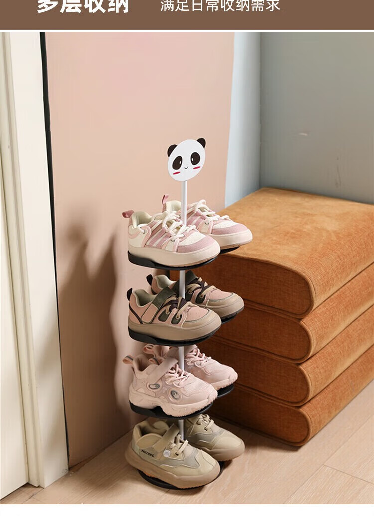 铂呐苓儿童鞋架家用折叠门口多层鞋柜鞋子置物架卡通夹缝省空间收纳神器 5层 儿童鞋架【五层-黑色】