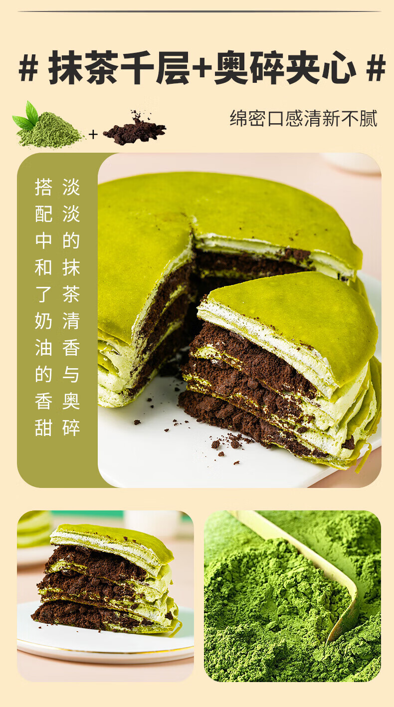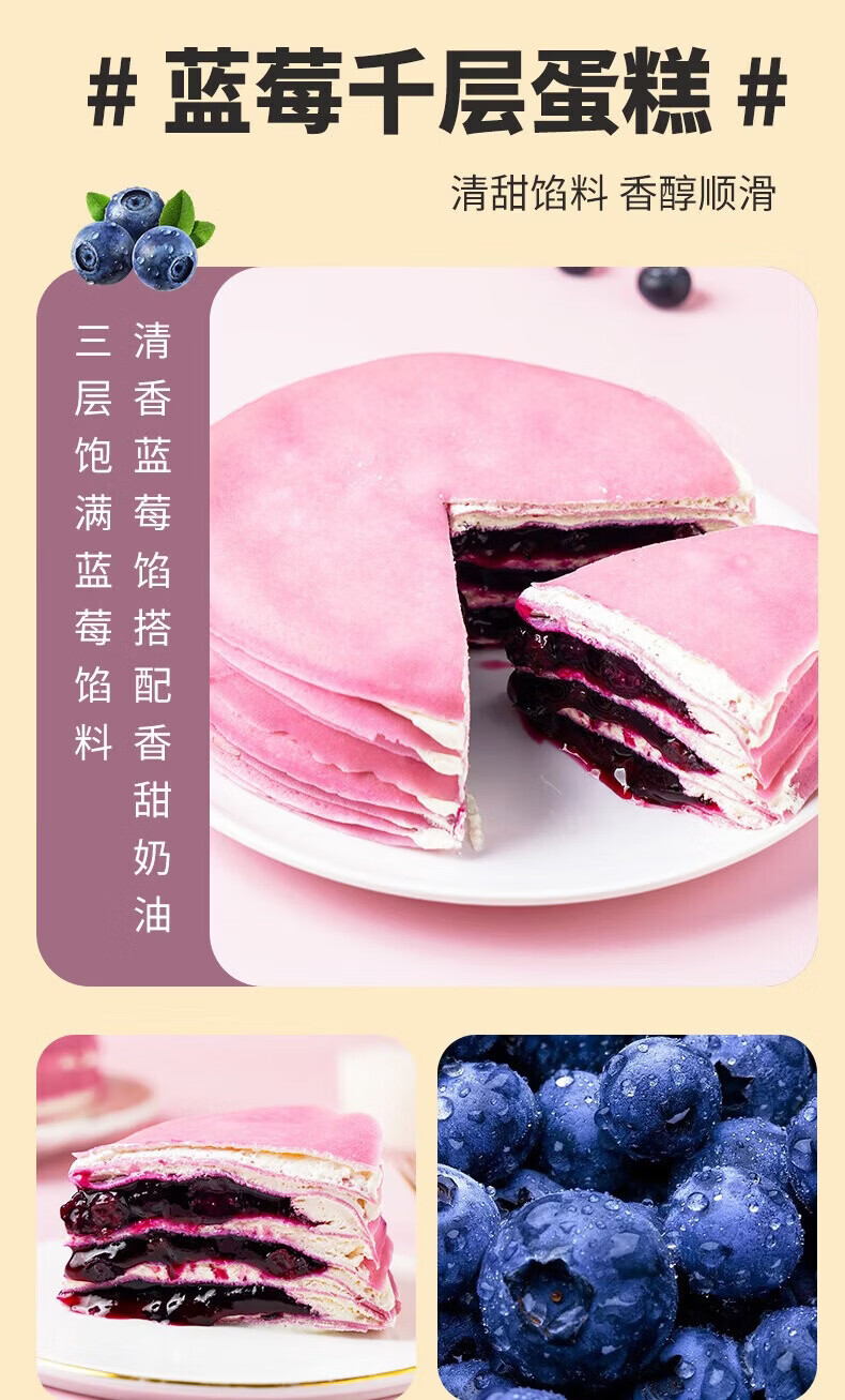 盛京天禄千层蛋糕网红爆浆生日蛋糕草莓蓝莓芋泥榴莲小甜品动物奶油顺丰 抹茶奥Li奥千层1盒+蓝莓味千层1盒 400g 2个