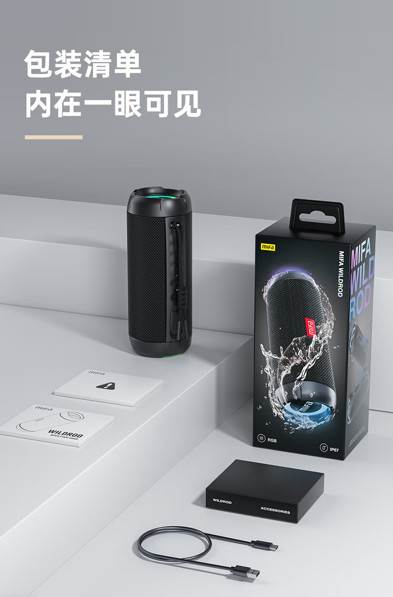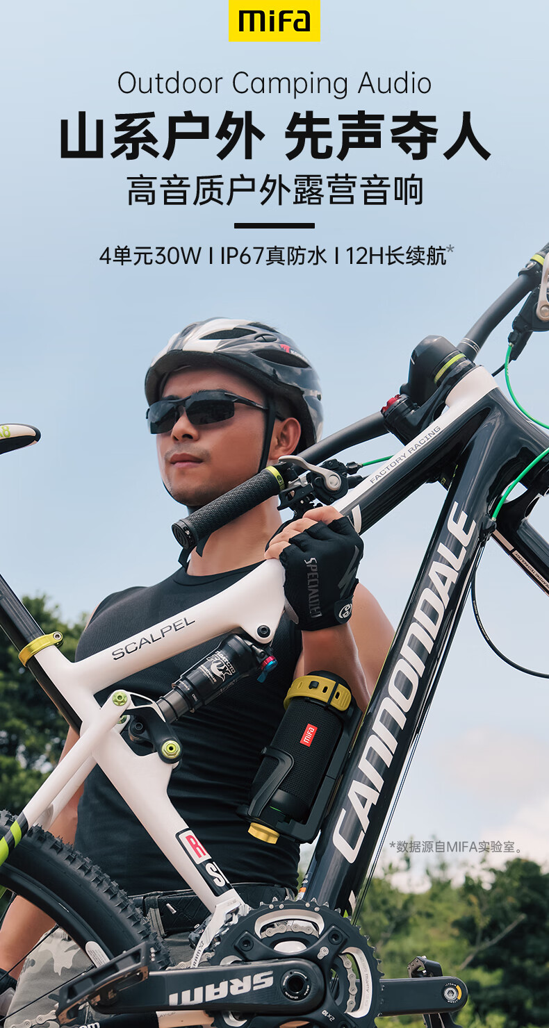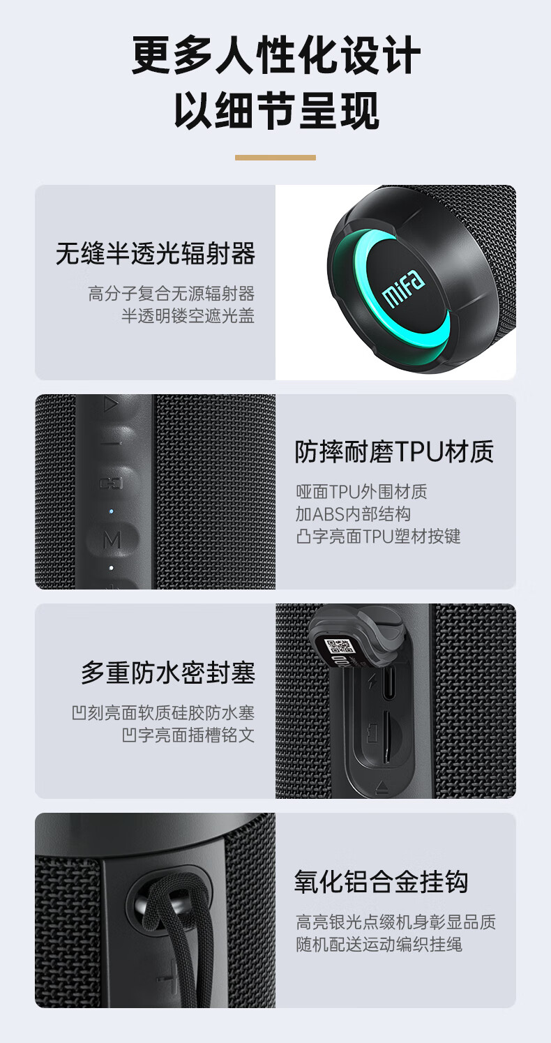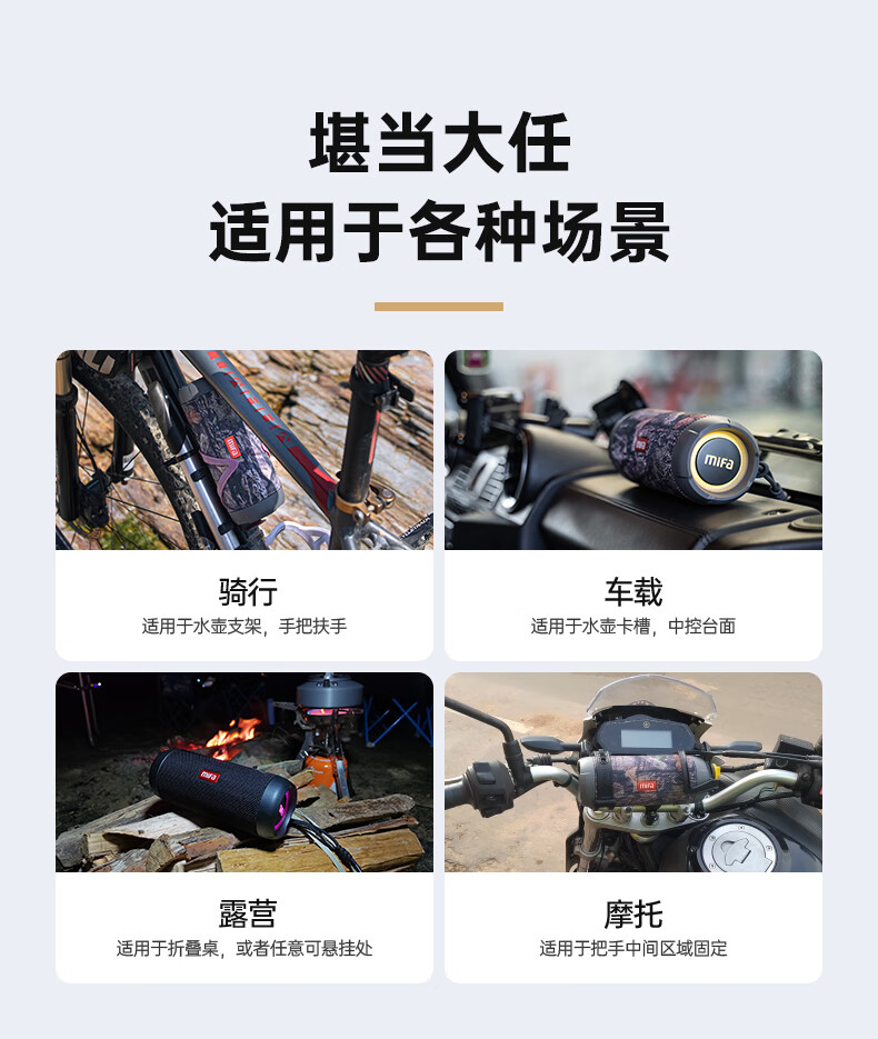 MIFA WildRod无线蓝牙音箱户外低音炮自行车骑行车载背包便携式可插卡随身运动重低音防水大音量小音响 WildRod丛林灰【赠挂绳】 【官方标配】送尼龙便携袋