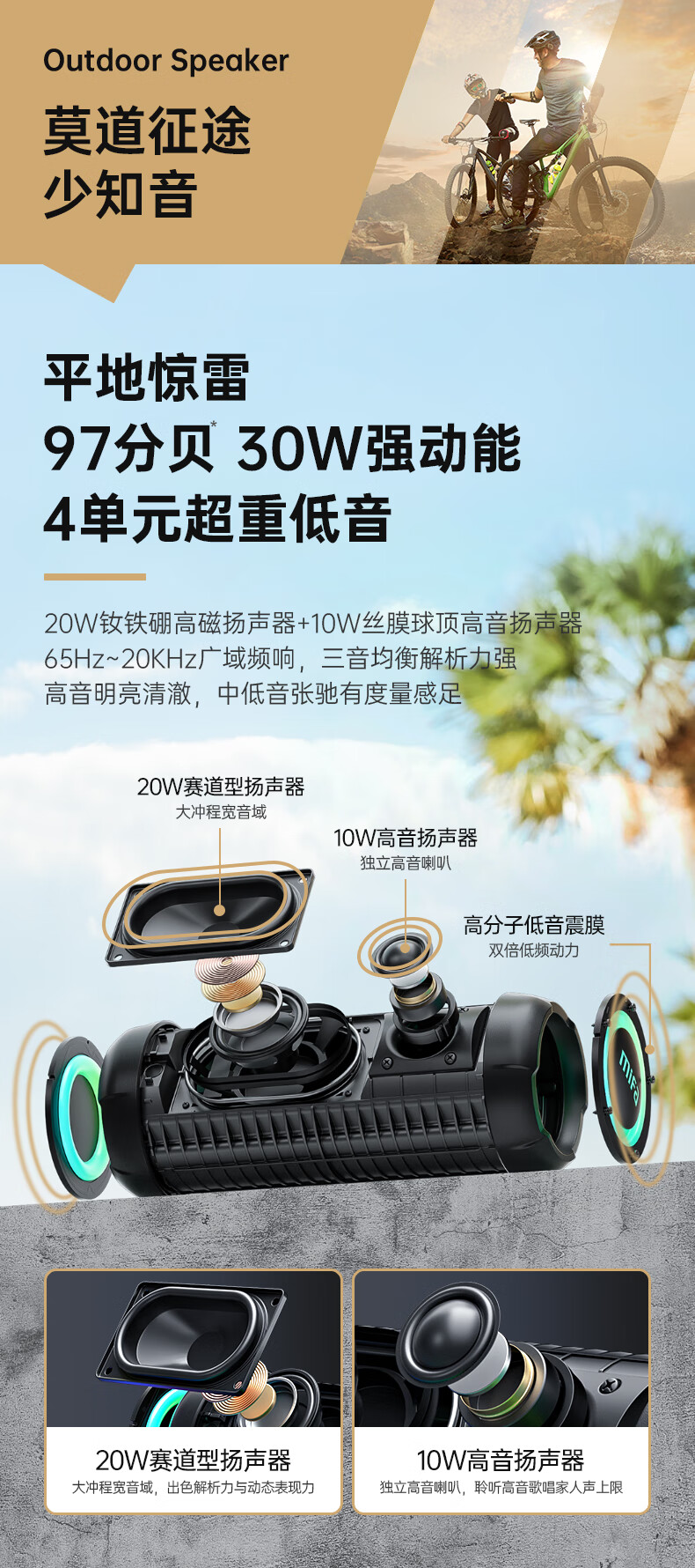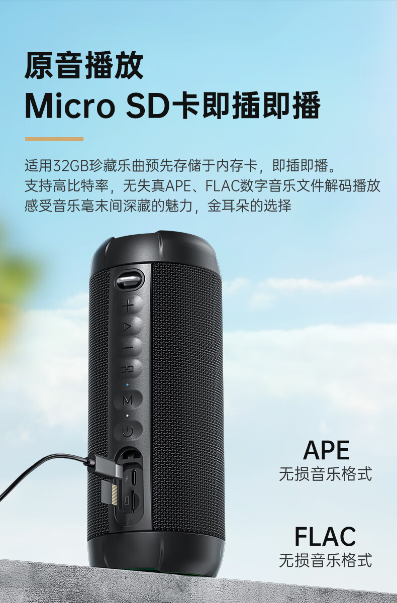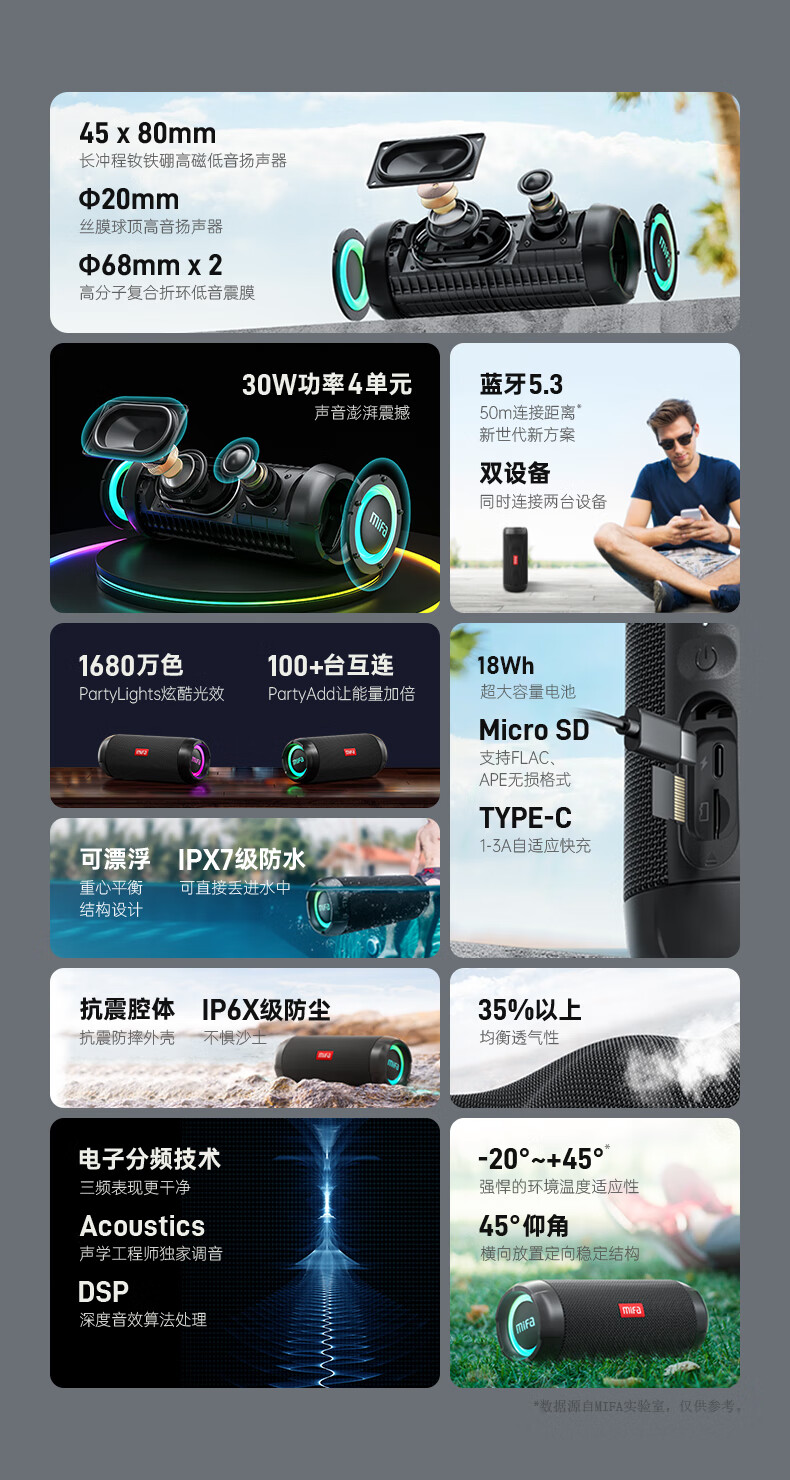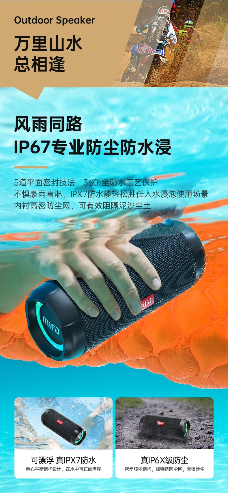 MIFA WildRod无线蓝牙音箱户外低音炮自行车骑行车载背包便携式可插卡随身运动重低音防水大音量小音响 WildRod丛林灰【赠挂绳】 【官方标配】送尼龙便携袋