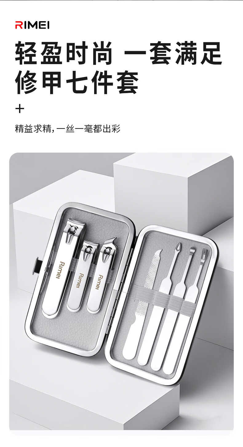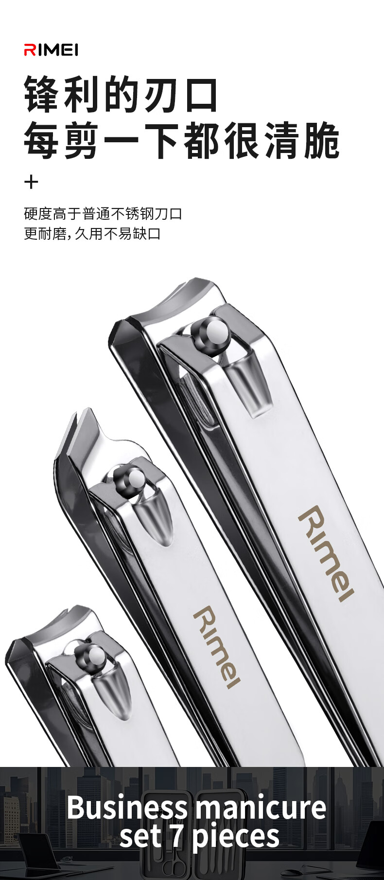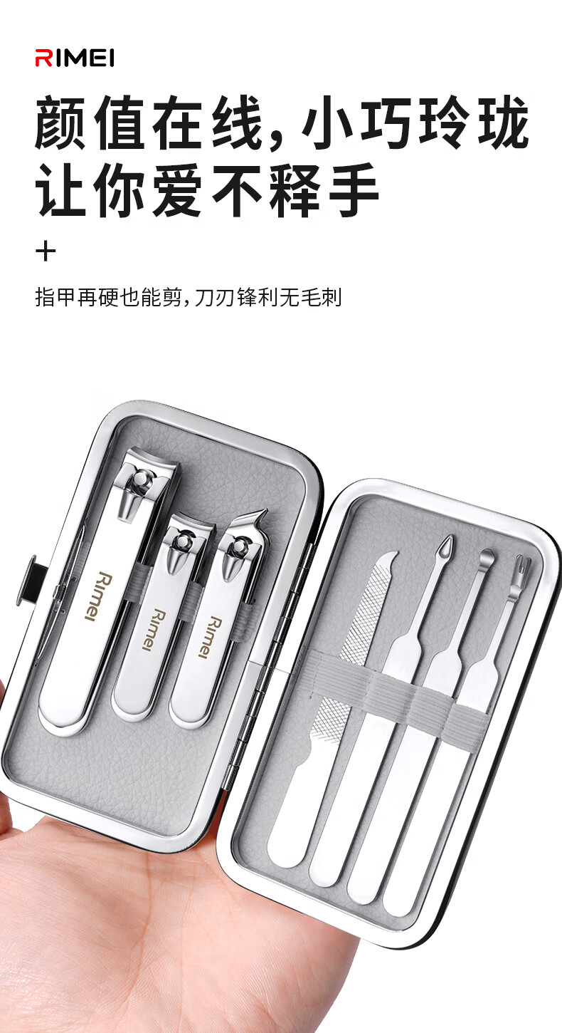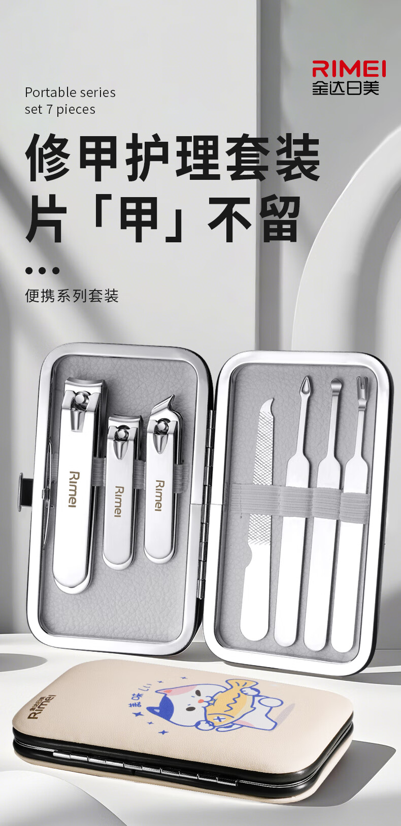 金达日美不锈钢指甲刀家用死皮剪挖耳勺修脚刀修指甲工具7件套便携指甲钳 修指甲剪全套套装七件套