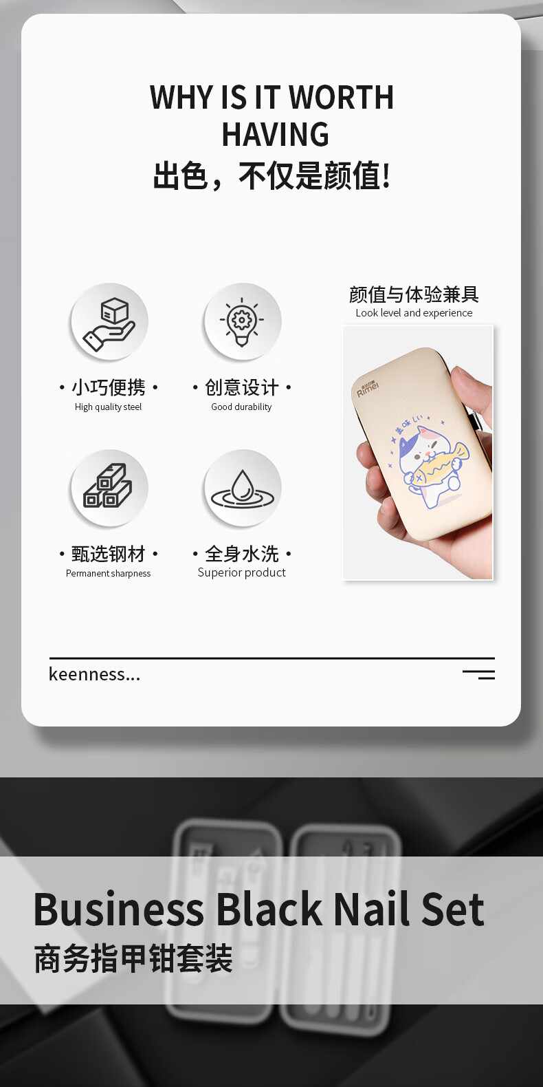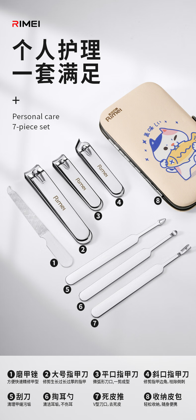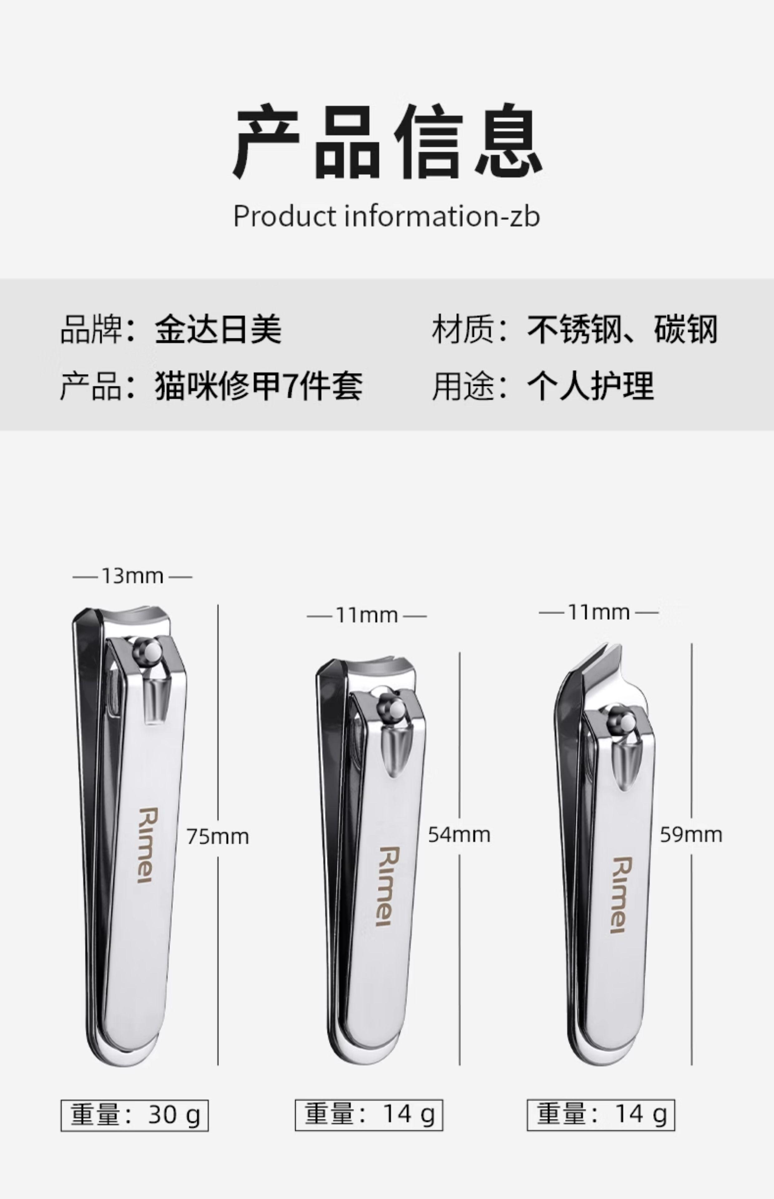 金达日美不锈钢指甲刀家用死皮剪挖耳勺修脚刀修指甲工具7件套便携指甲钳 修指甲剪全套套装七件套