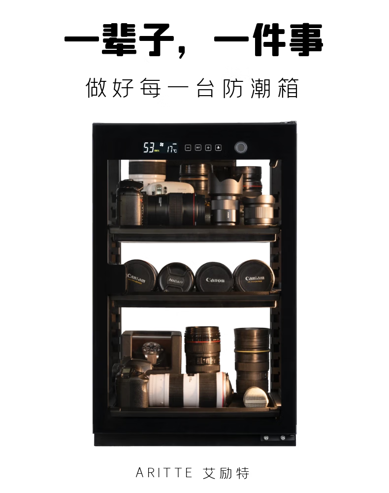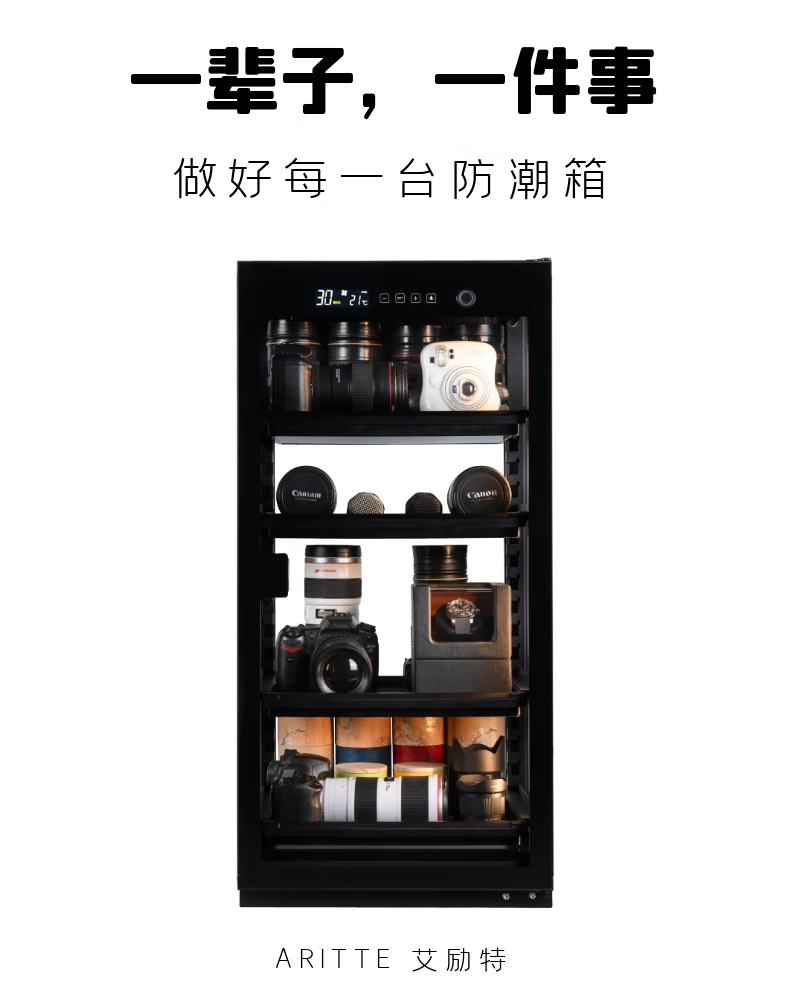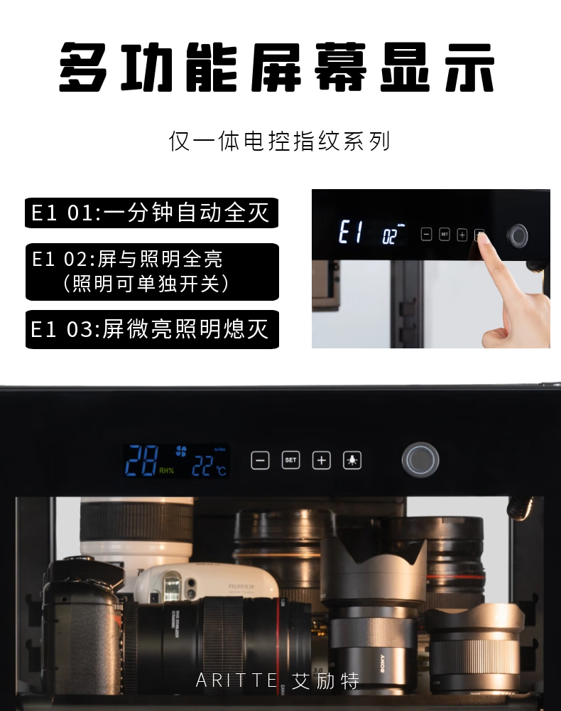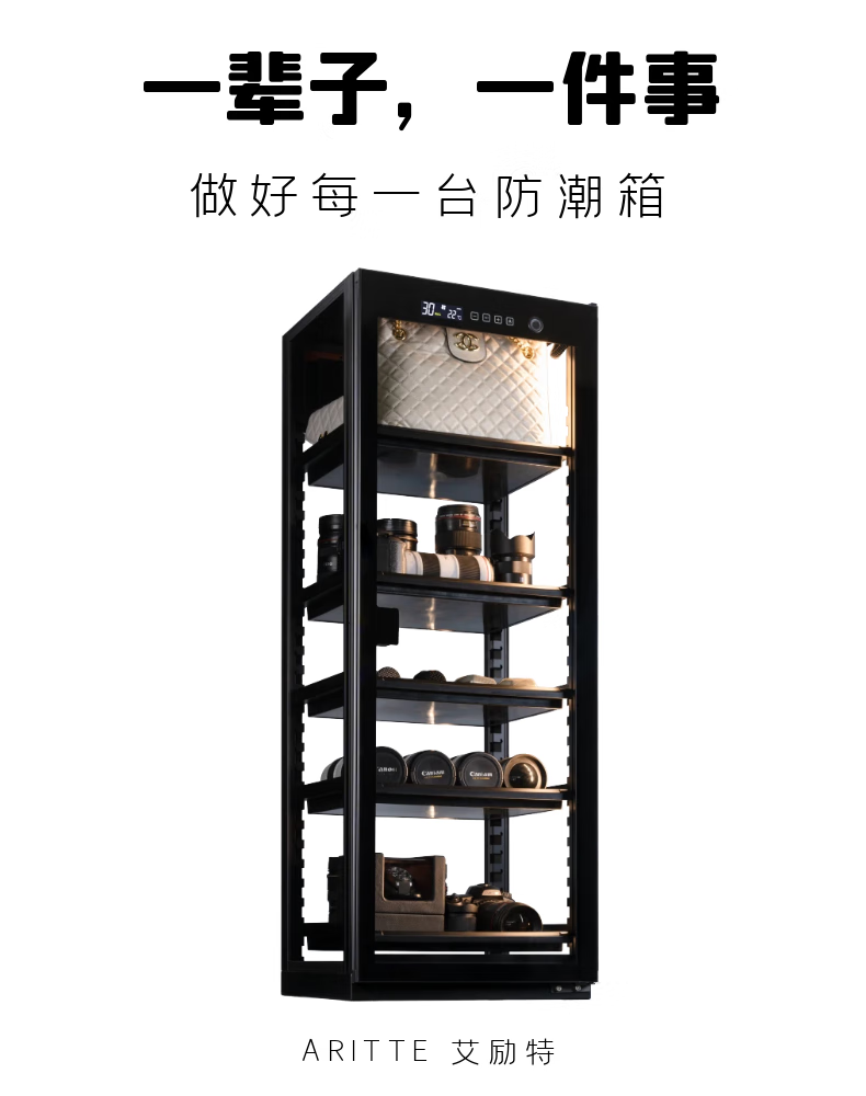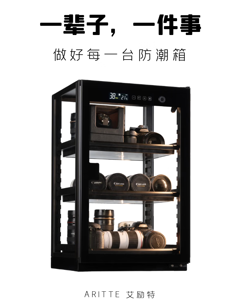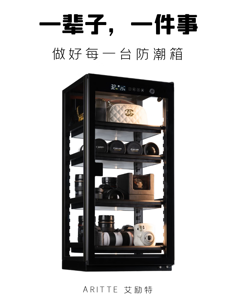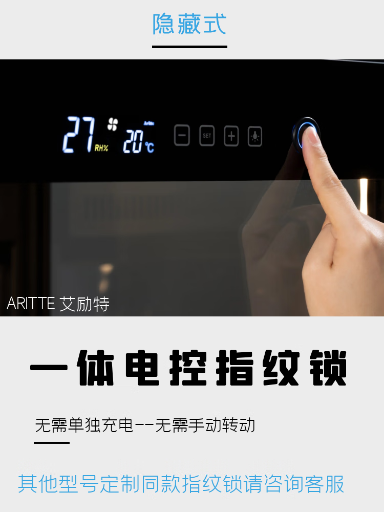 艾励特智能透明防潮箱AI指纹识别相机镜头摄影器材干燥柜普洱茶叶包包手袋3d打印耗材防潮展示柜恒湿除湿 CL-160L透明--一体电控指纹锁