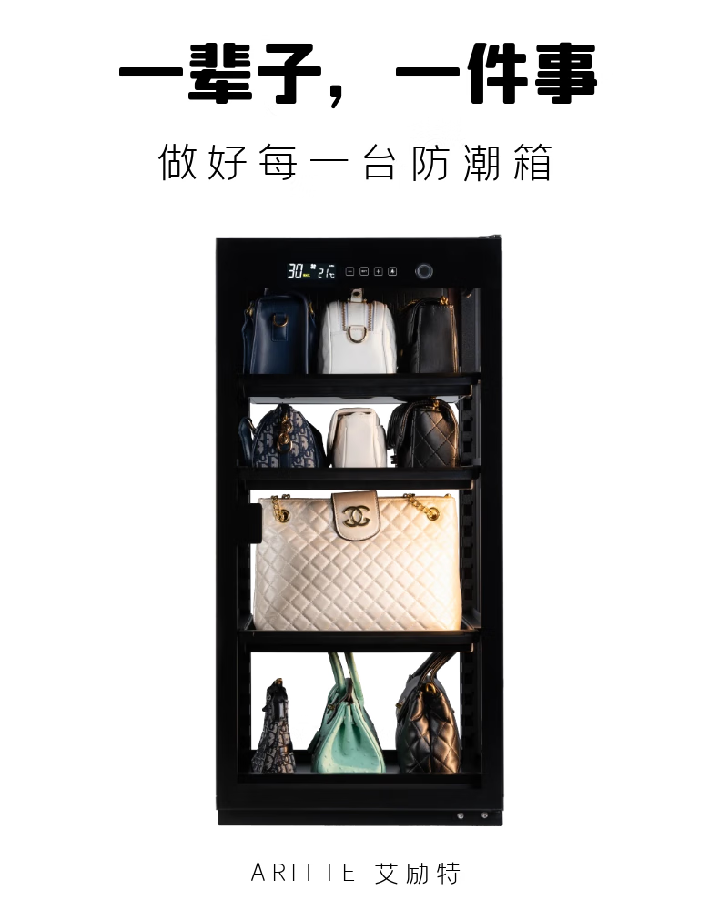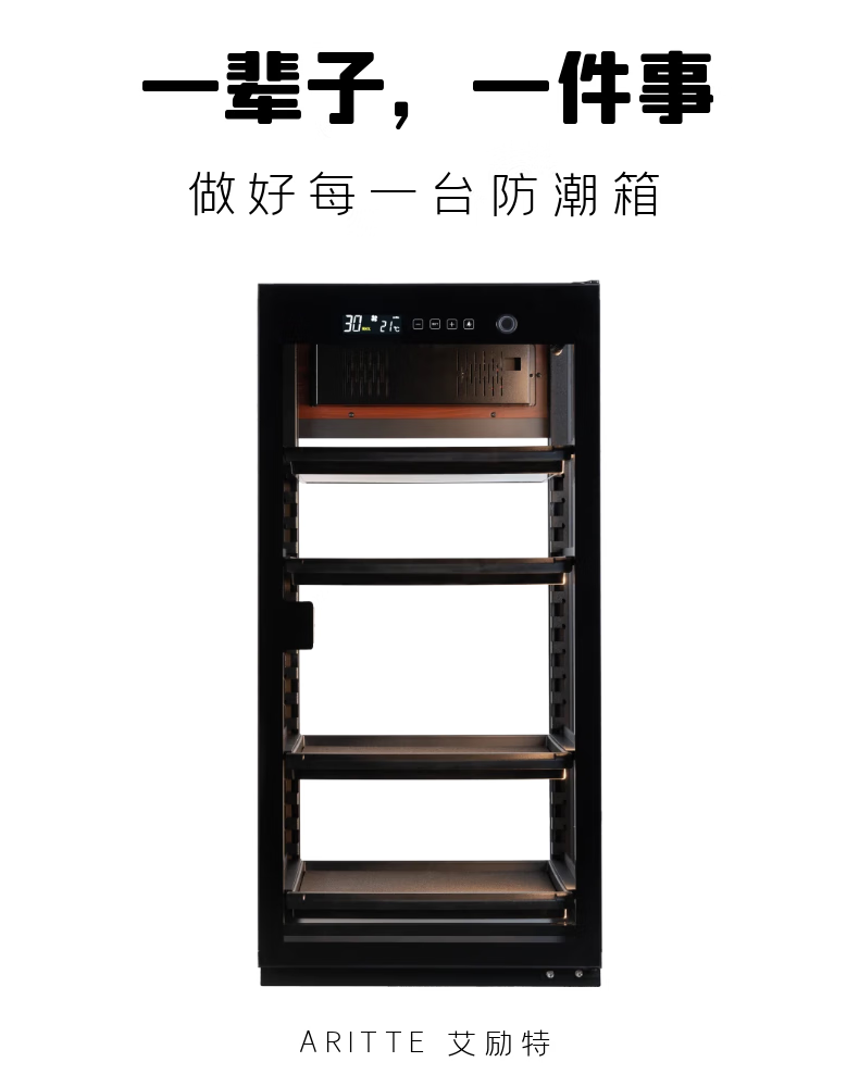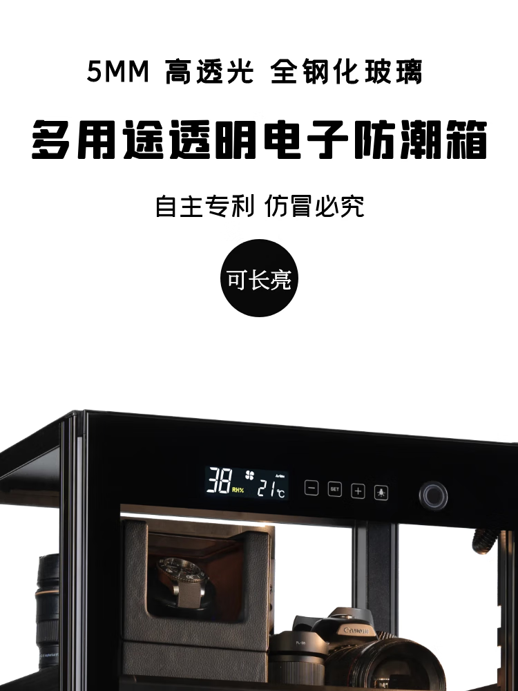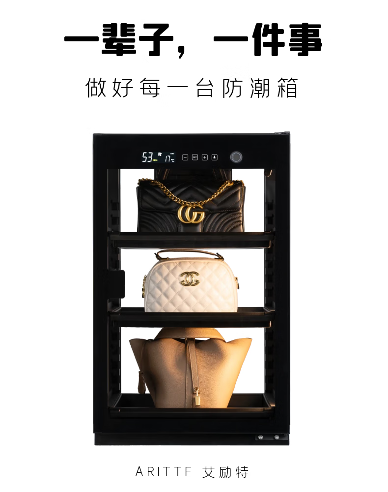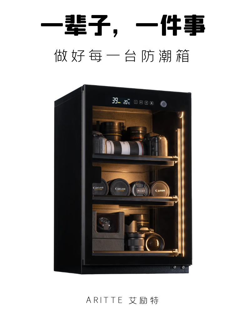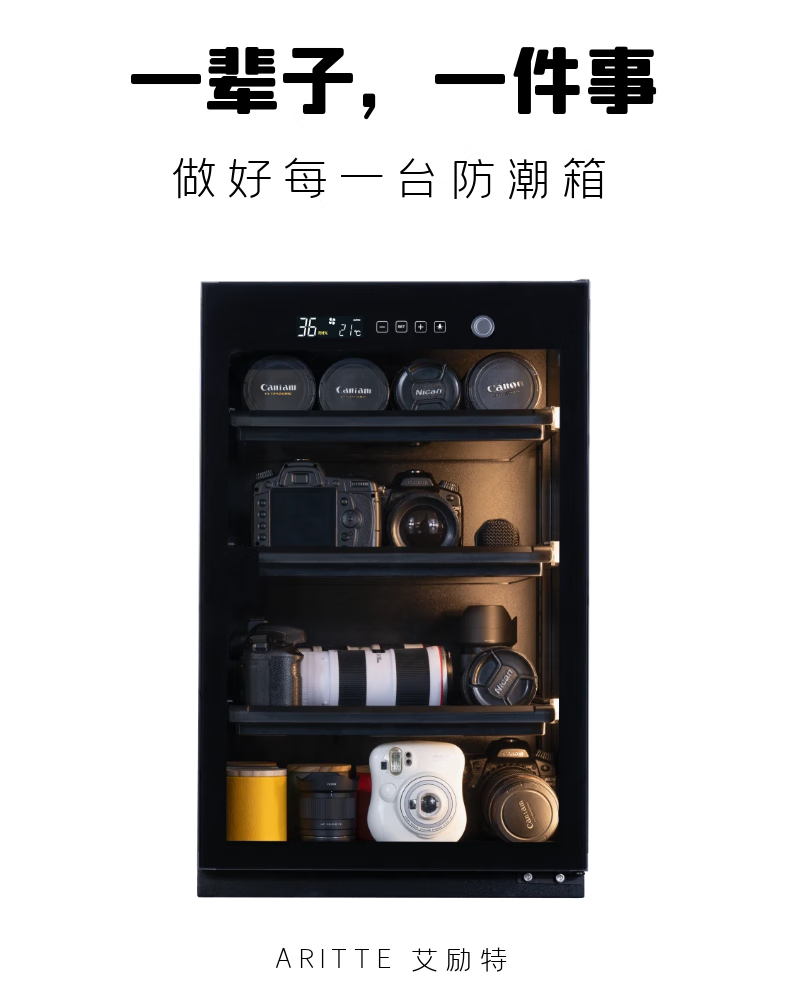 艾励特智能透明防潮箱AI指纹识别相机镜头摄影器材干燥柜普洱茶叶包包手袋3d打印耗材防潮展示柜恒湿除湿 CL-160L透明--一体电控指纹锁