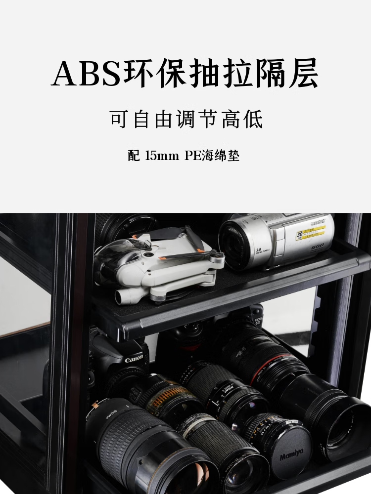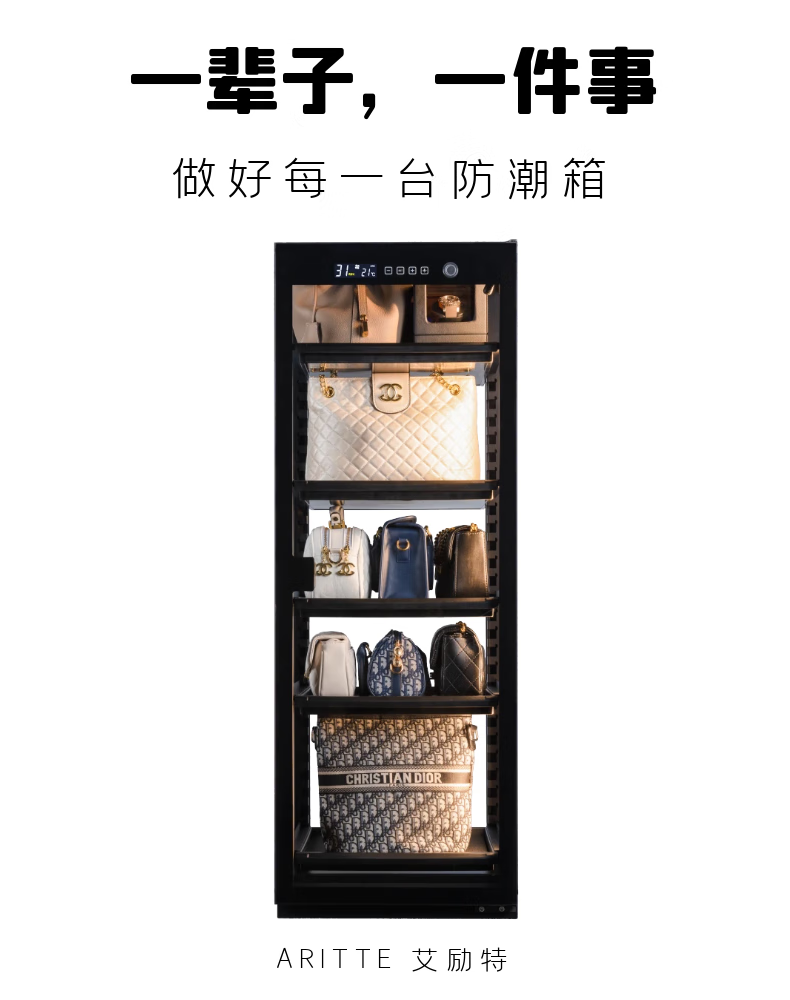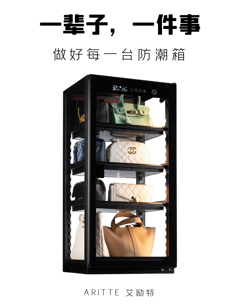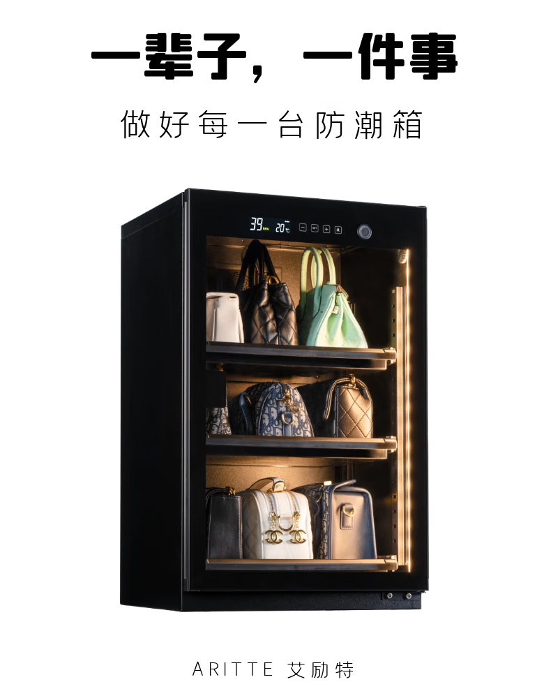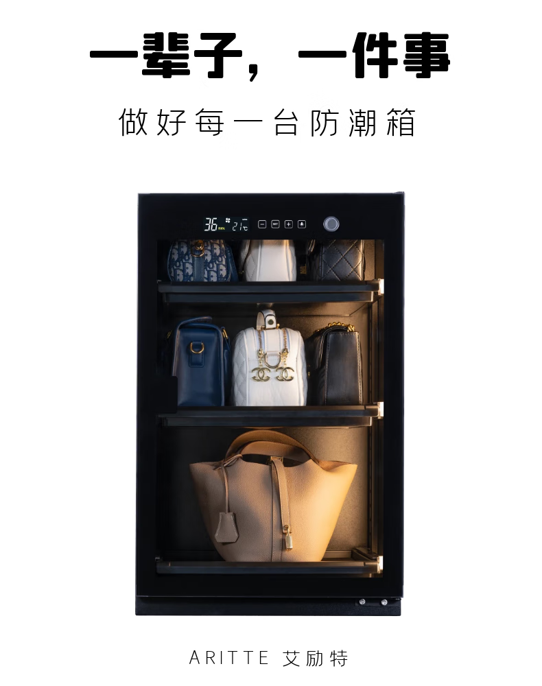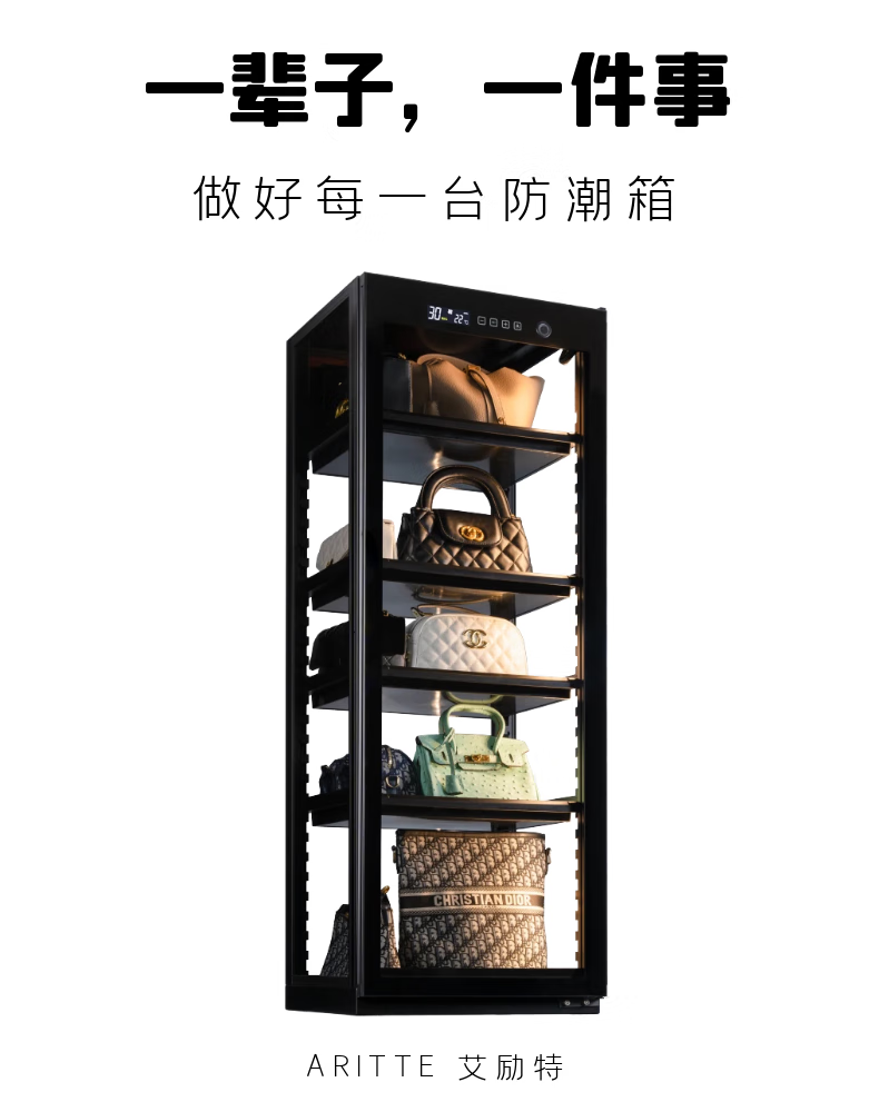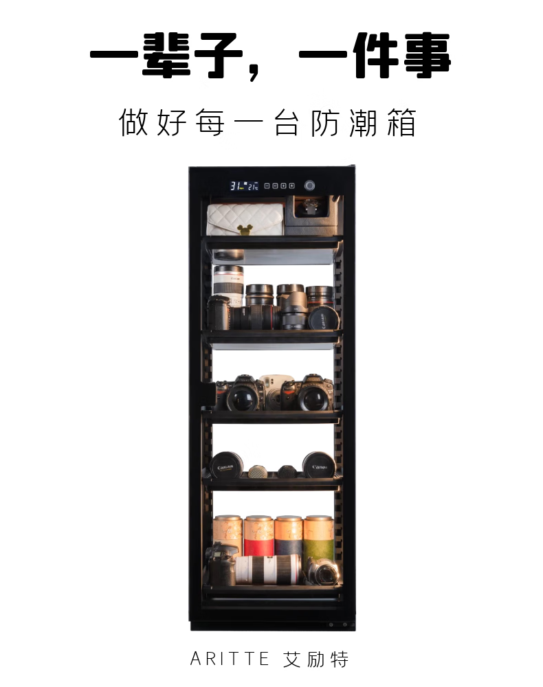 艾励特智能透明防潮箱AI指纹识别相机镜头摄影器材干燥柜普洱茶叶包包手袋3d打印耗材防潮展示柜恒湿除湿 CL-160L透明--一体电控指纹锁