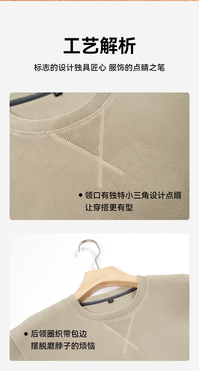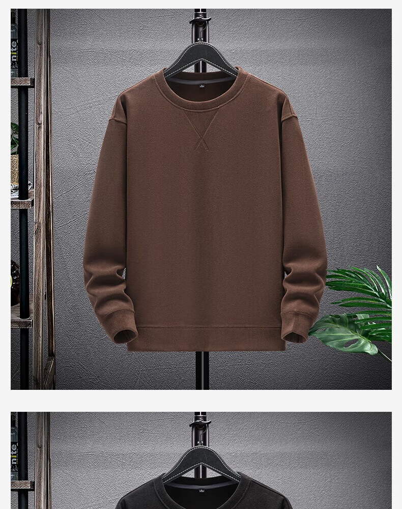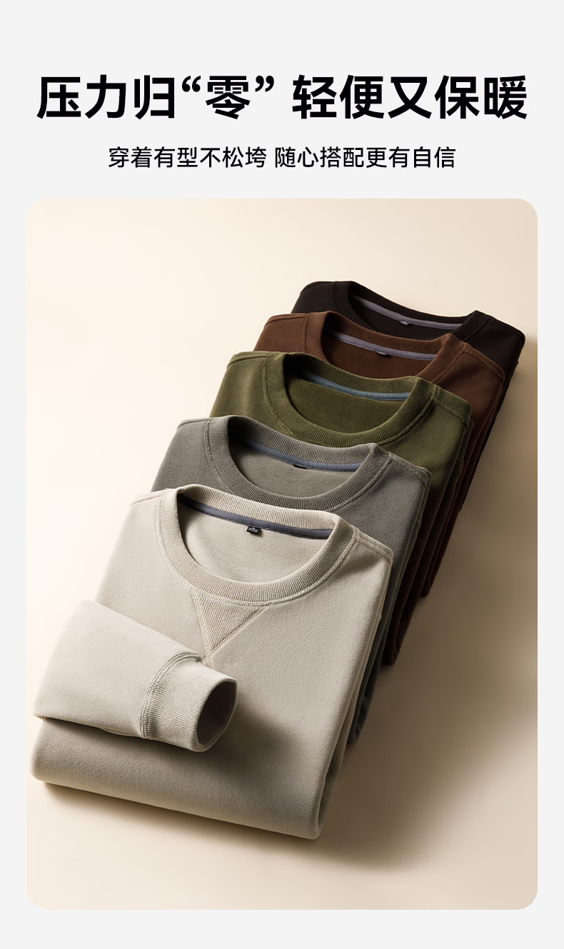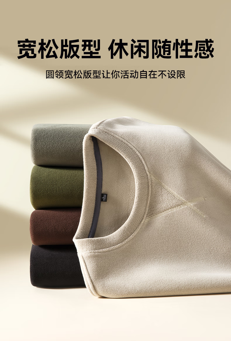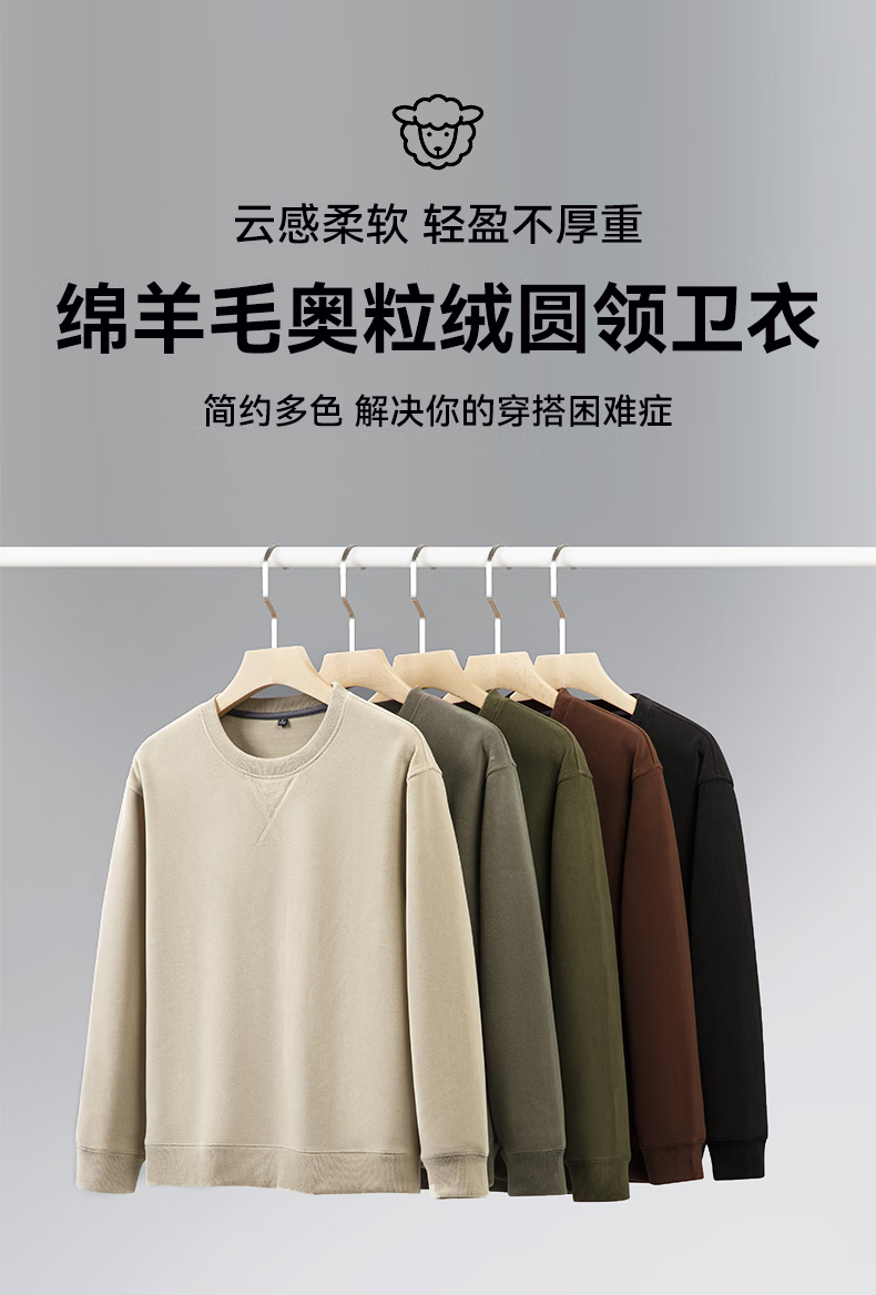雪中飞绵羊毛奥粒绒圆领卫衣男士秋冬季休闲保暖外套时尚简约抗寒 咖啡色 4XL 195/108A