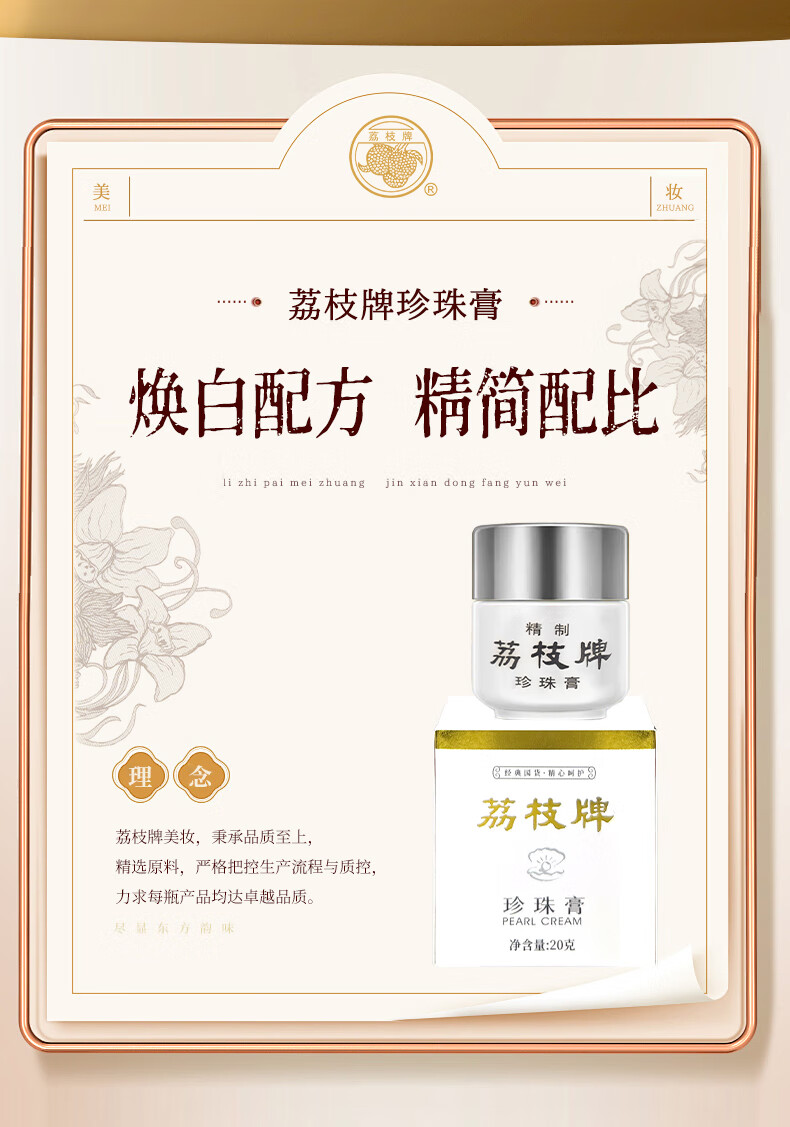 荔枝牌珍珠膏20g【烟酰胺版】补水保湿滋润面霜水乳男女通用提亮护肤品 1瓶