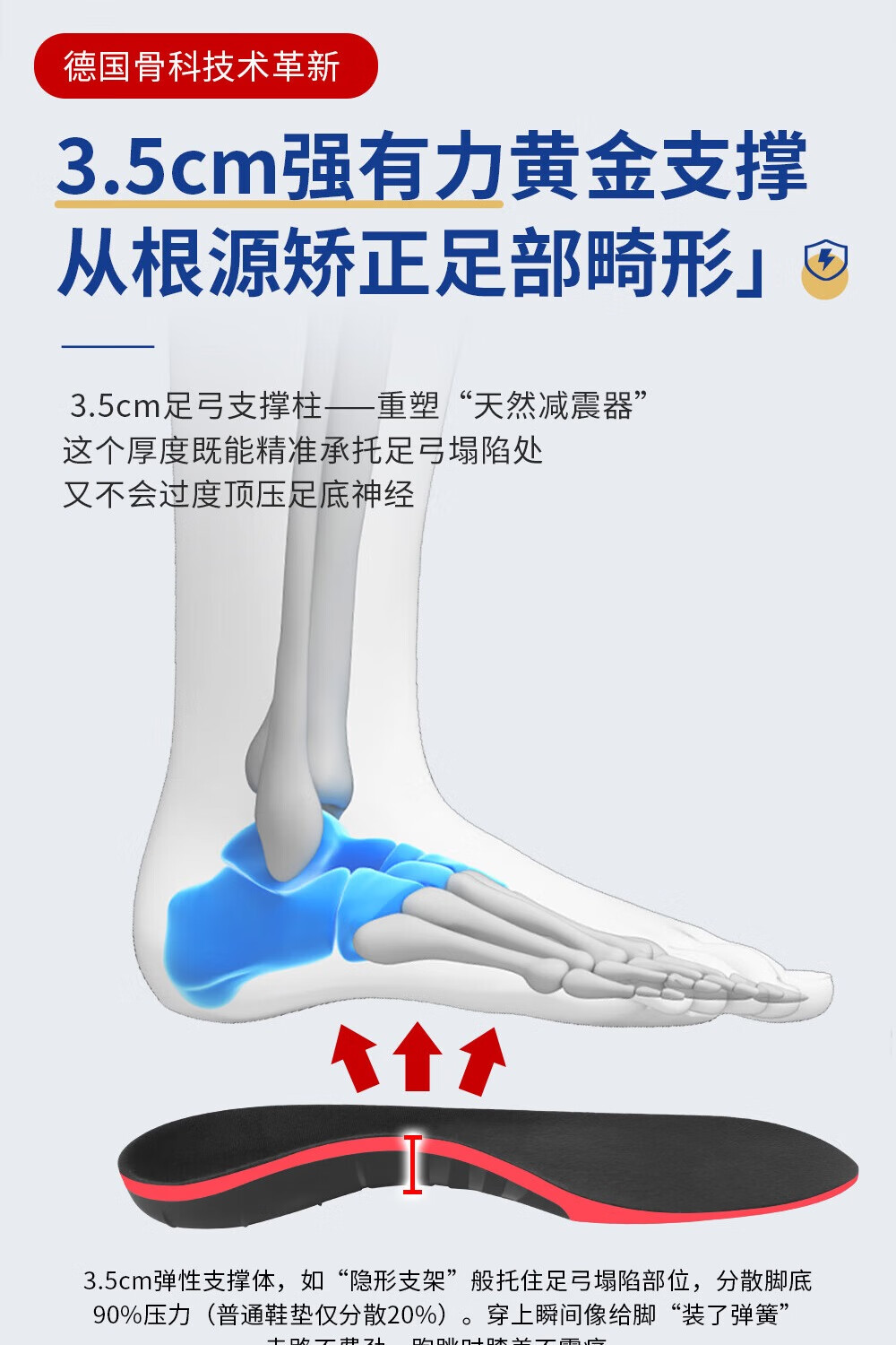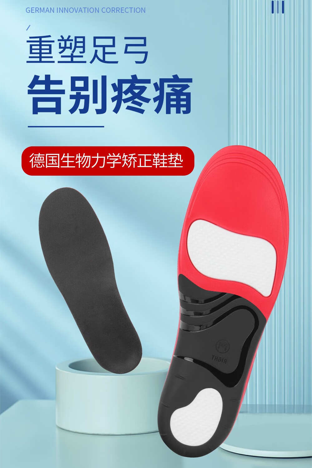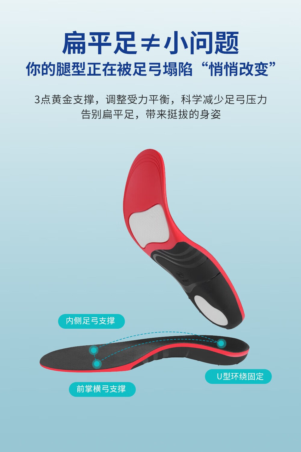 NYQV足弓塌陷强力支撑鞋垫足外翻扁平足保护脚痛平底足高足弓矫正鞋垫 红黑-无凸起按摩 XL (45-46-47-48鞋码)-可裁剪