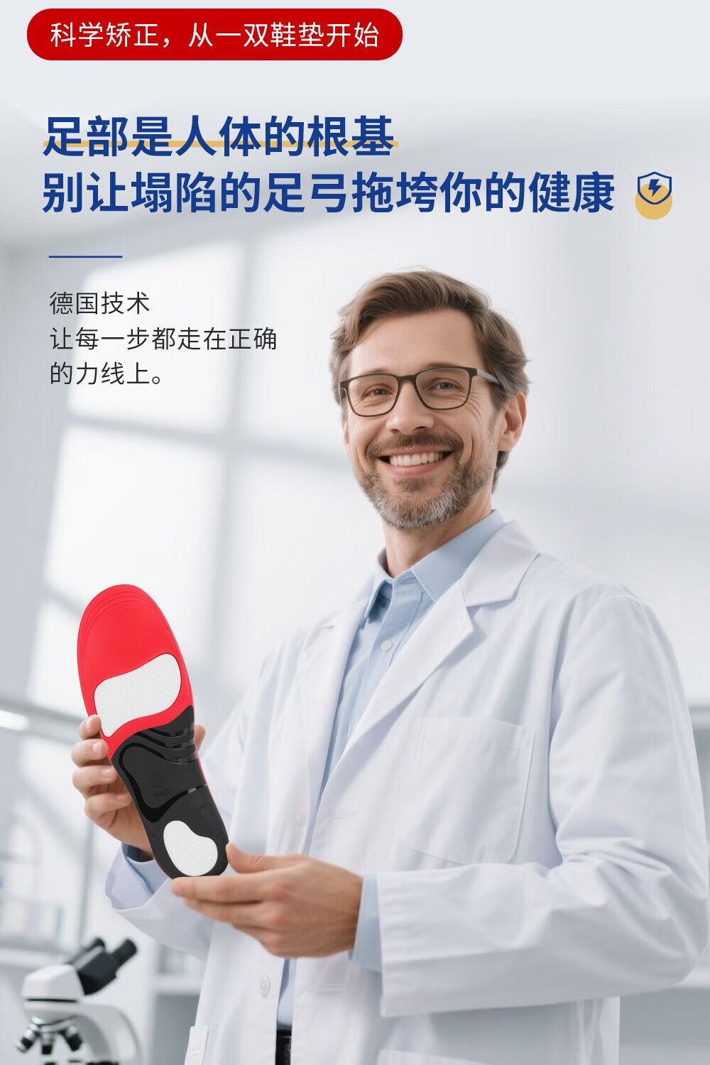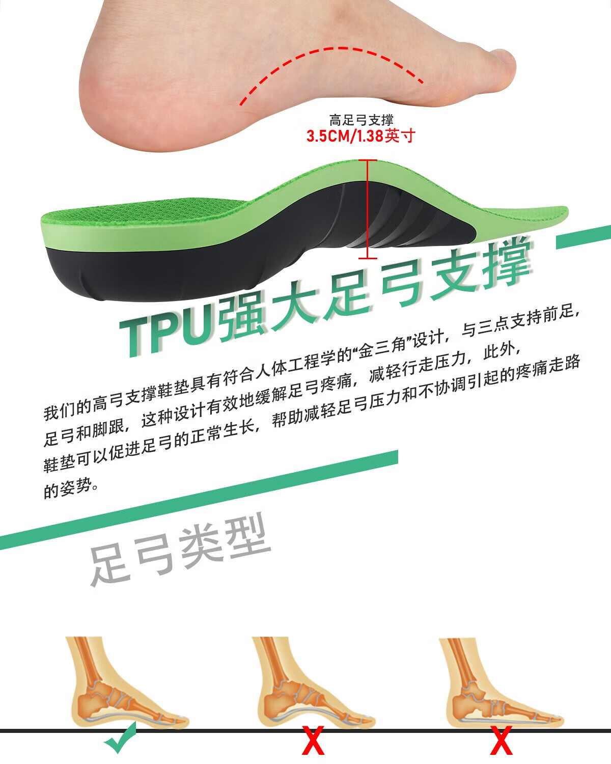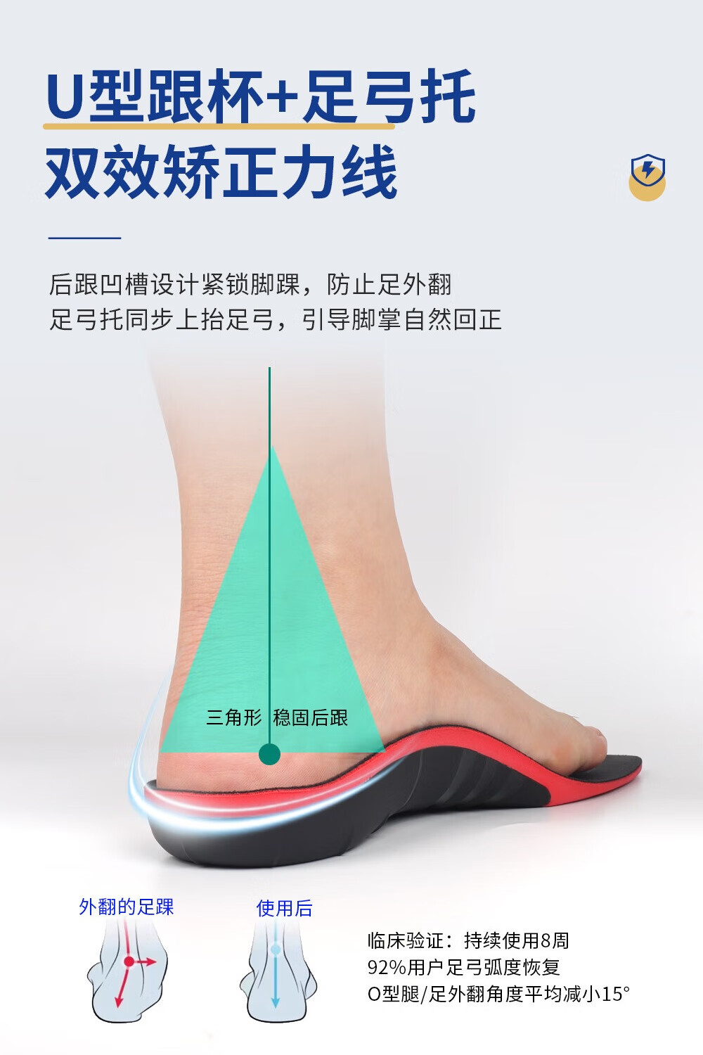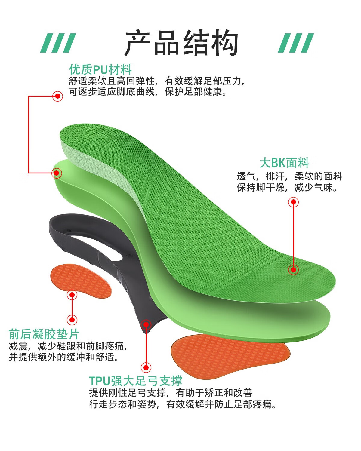 NYQV足弓塌陷强力支撑鞋垫足外翻扁平足保护脚痛平底足高足弓矫正鞋垫 红黑-无凸起按摩 XL (45-46-47-48鞋码)-可裁剪