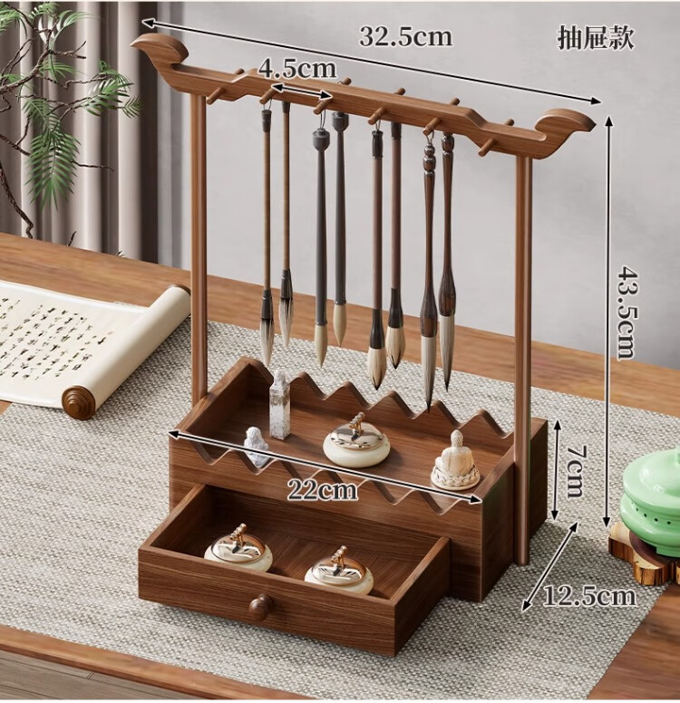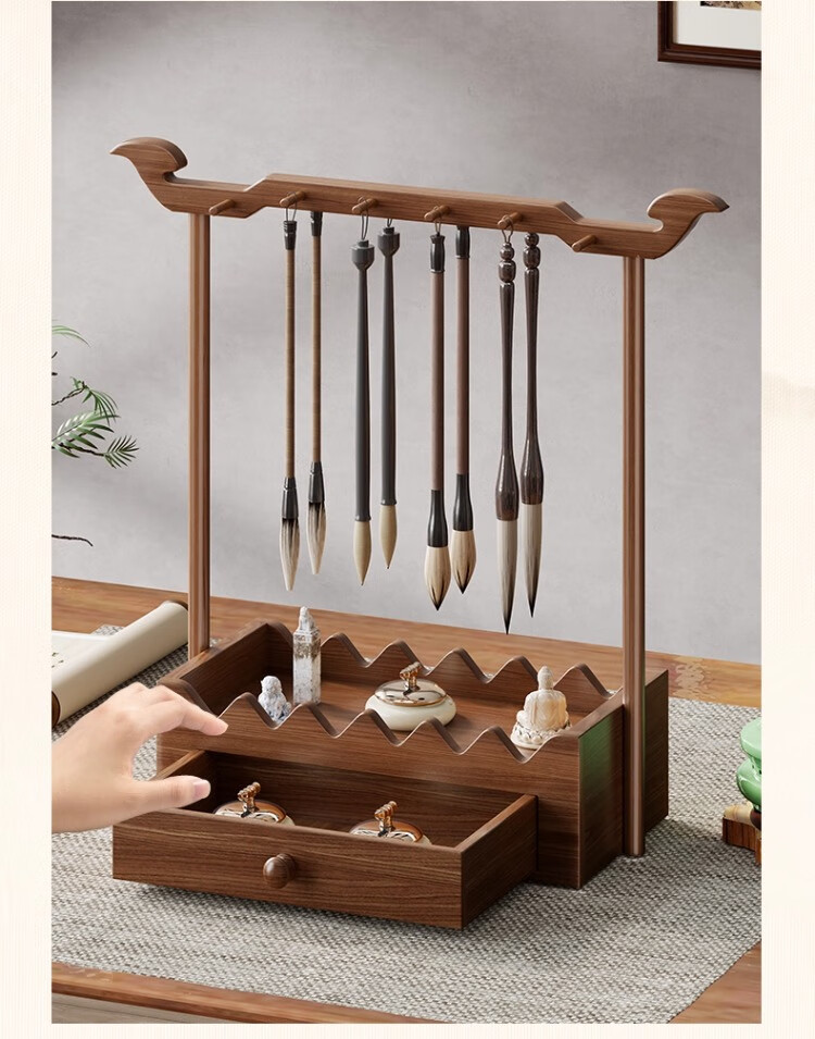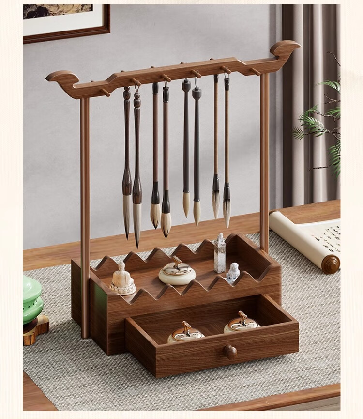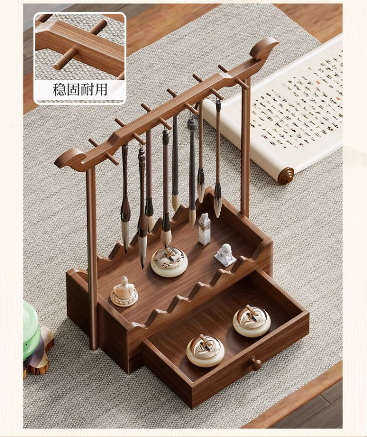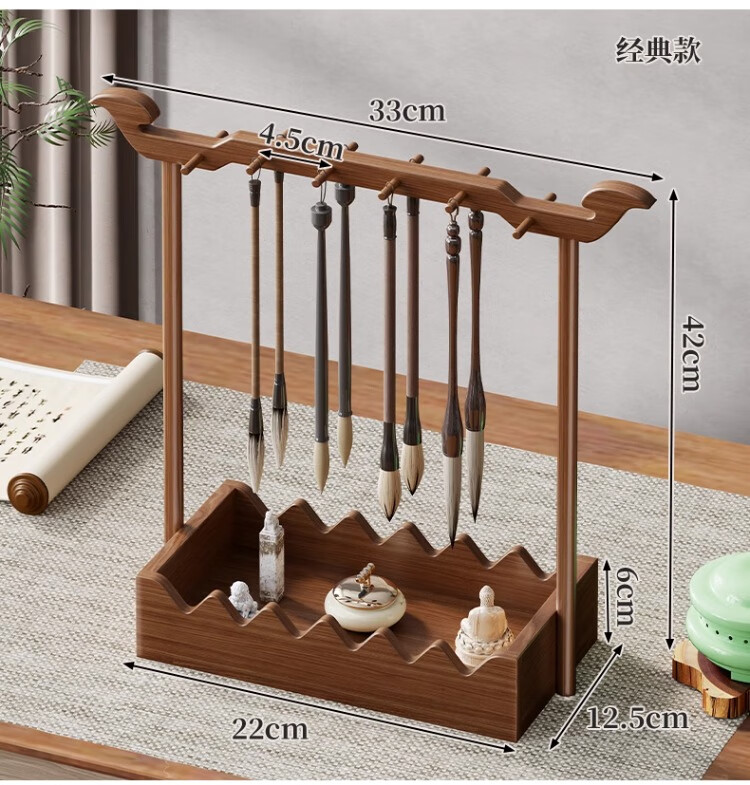 尔思家实木毛笔笔架古风挂架文房书法收纳置物架多功能笔托初学者毛笔架 经典款双面可挂