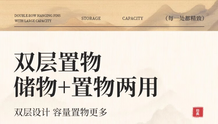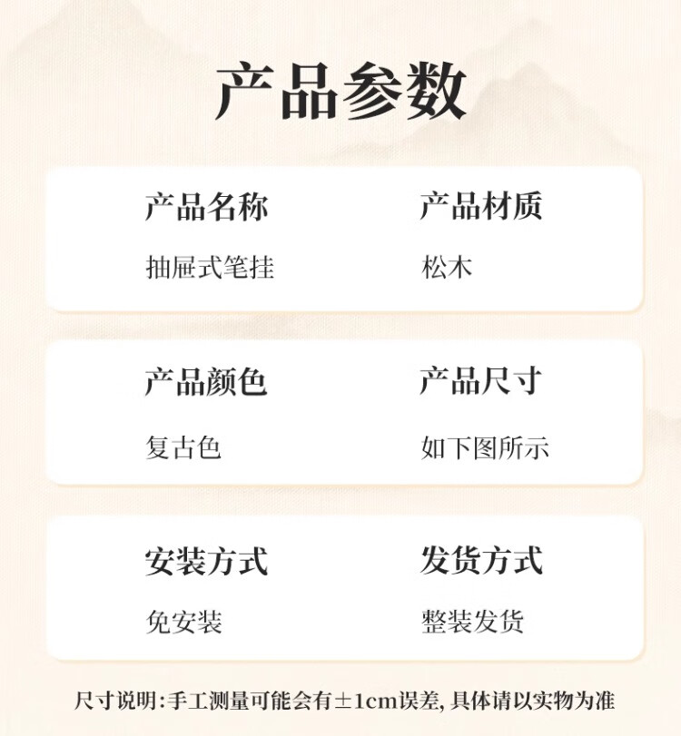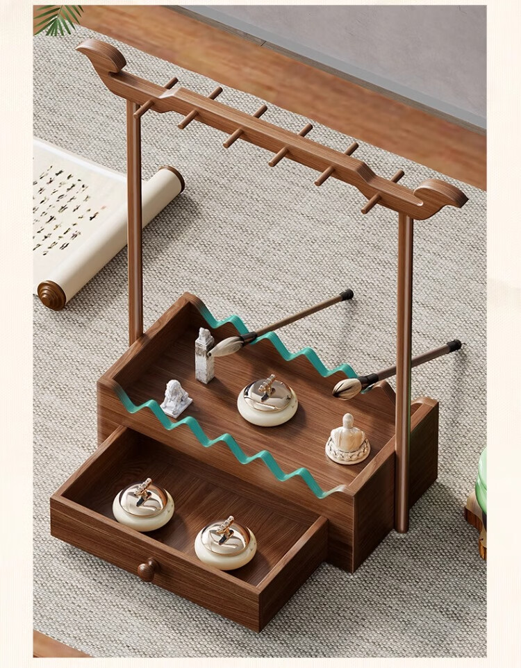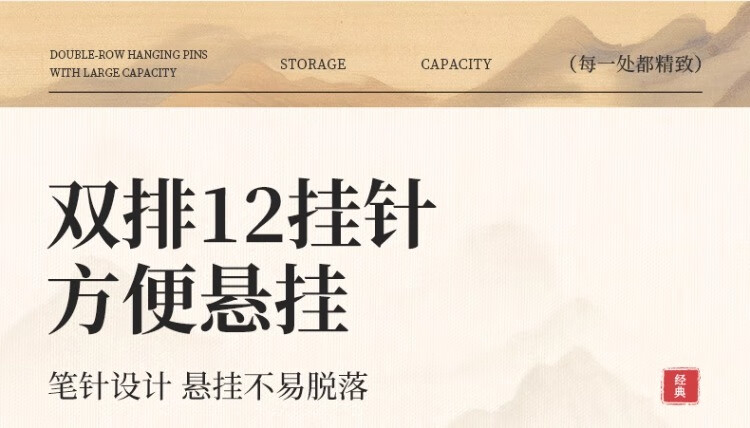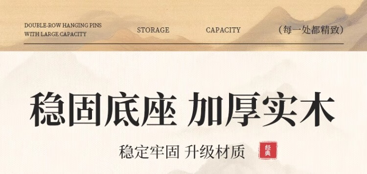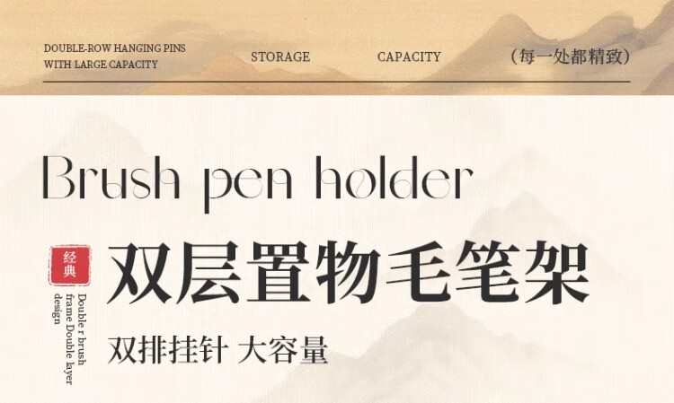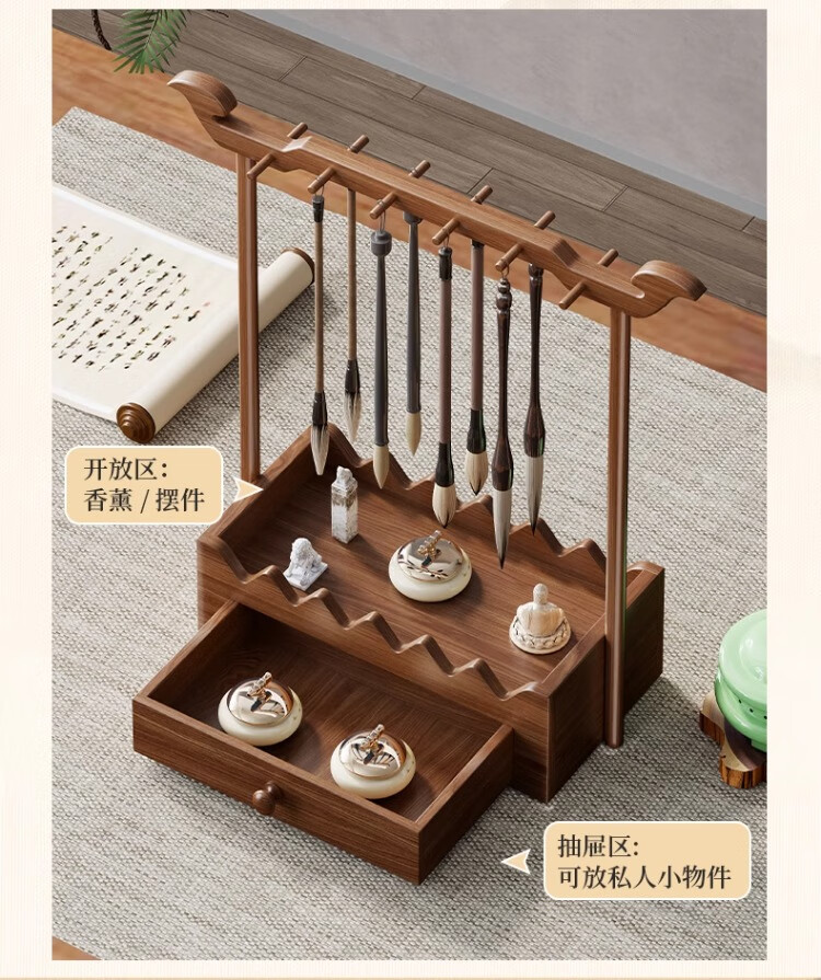 尔思家实木毛笔笔架古风挂架文房书法收纳置物架多功能笔托初学者毛笔架 经典款双面可挂