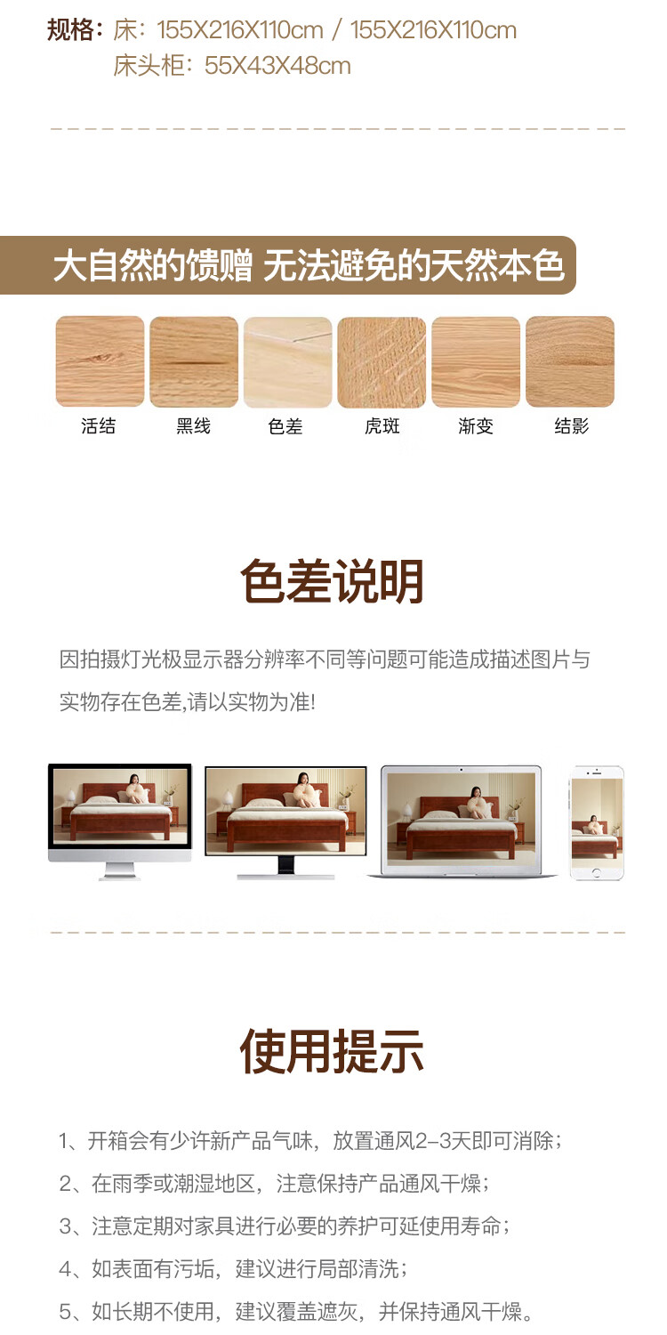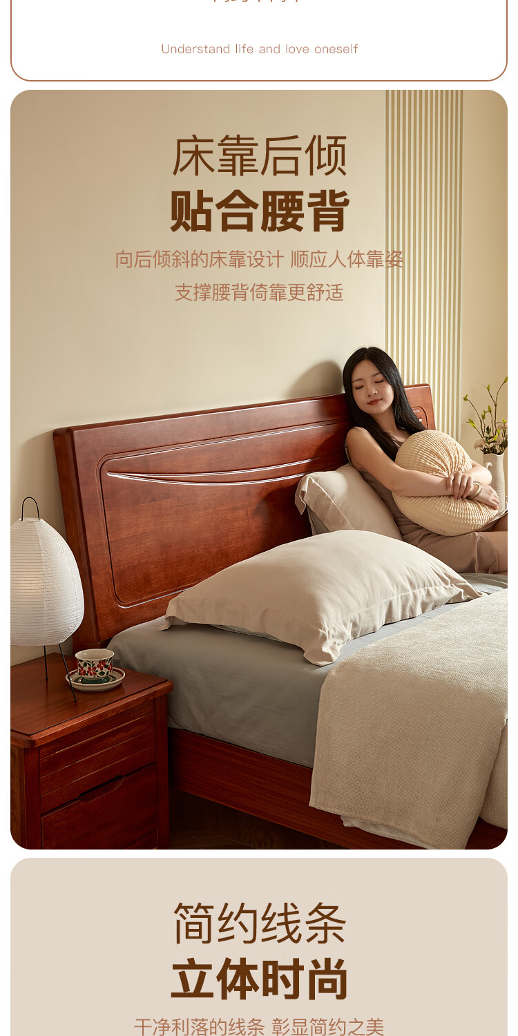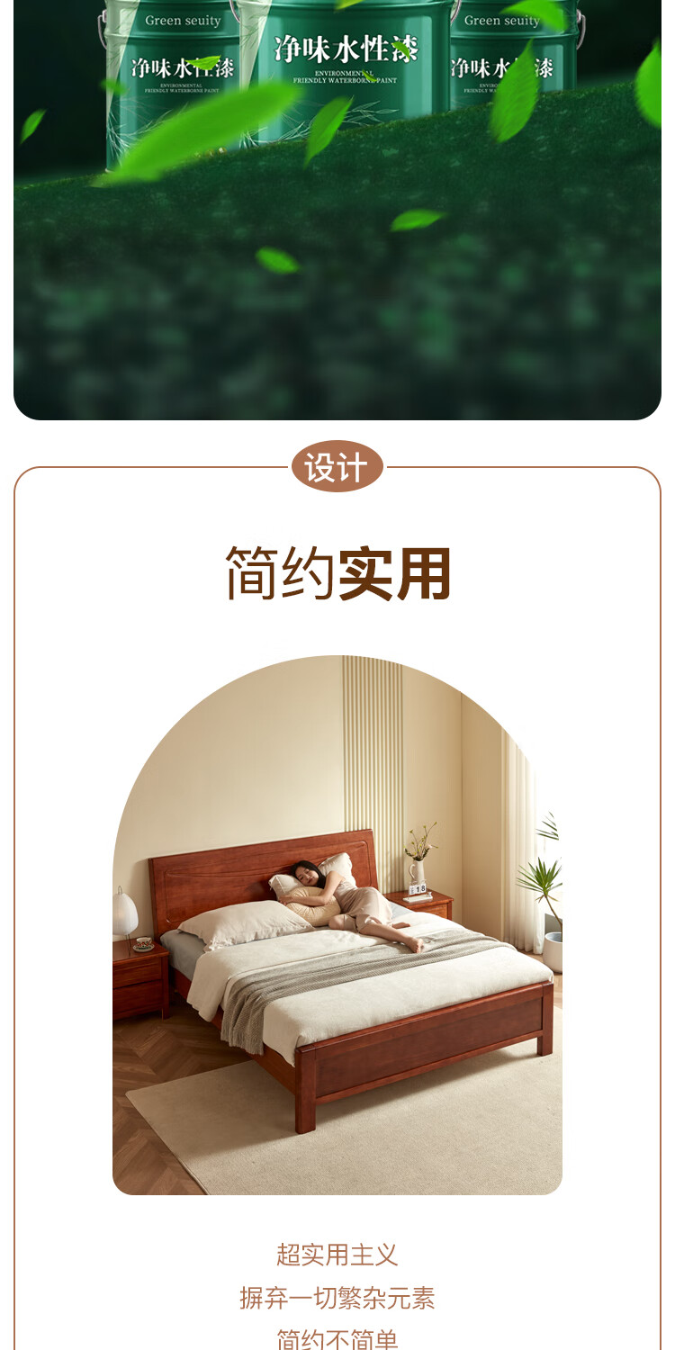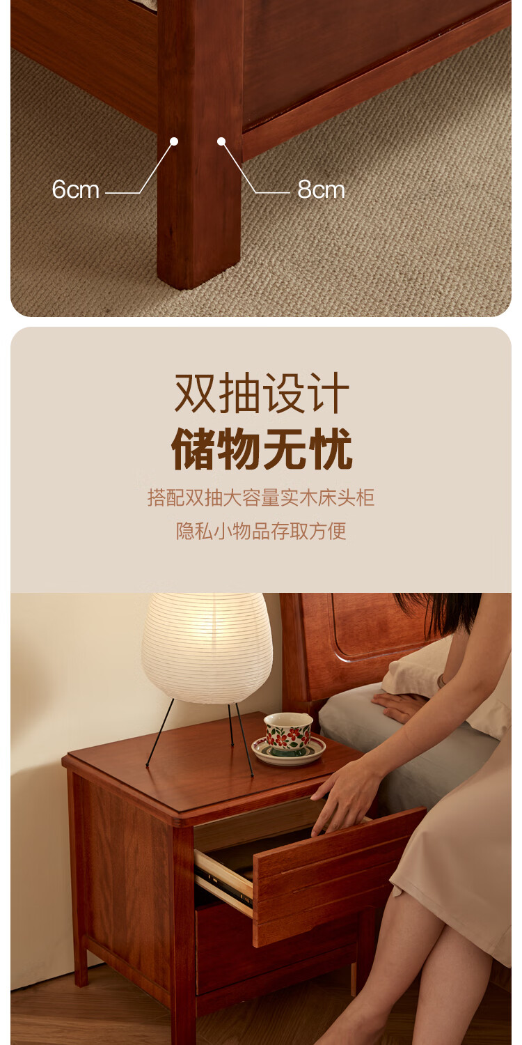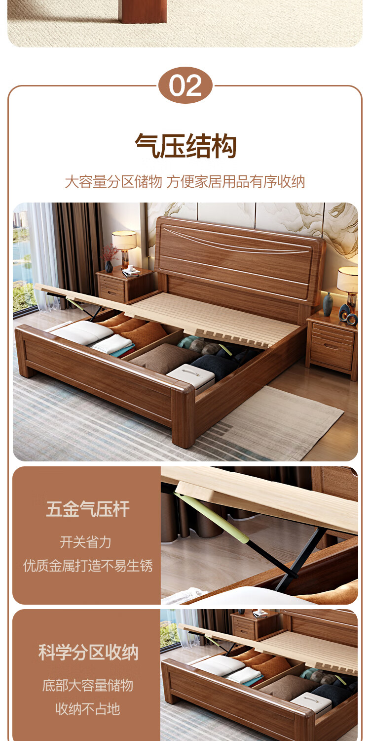 惠寻 京东自有品牌 全实木实木床中式1.5米床1.8米x2米双人床床家具 胡桃木单床 1500mm*2000mm框架结构