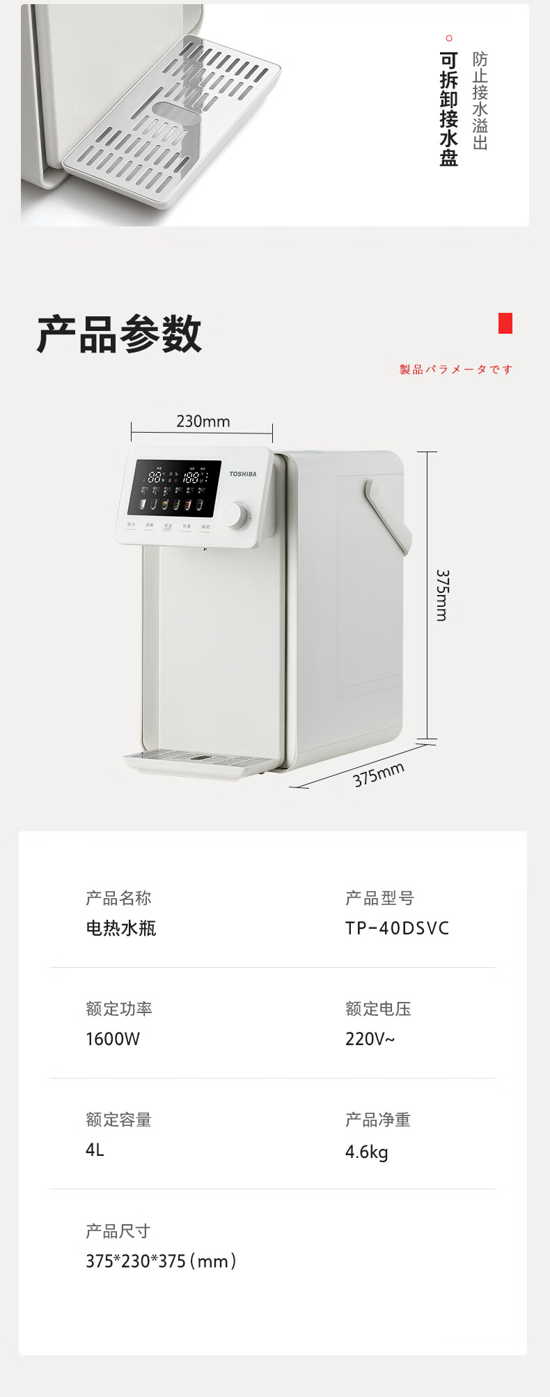 东芝(TOSHIBA)小白露熟水机0涂层饮水机电热水瓶电水瓶 烧水壶电热水壶4L 保温恒温一体真沸腾除氯TP-40DSVC