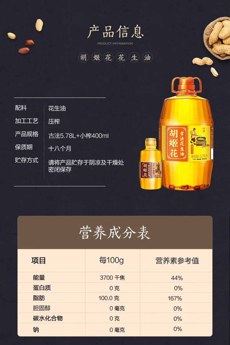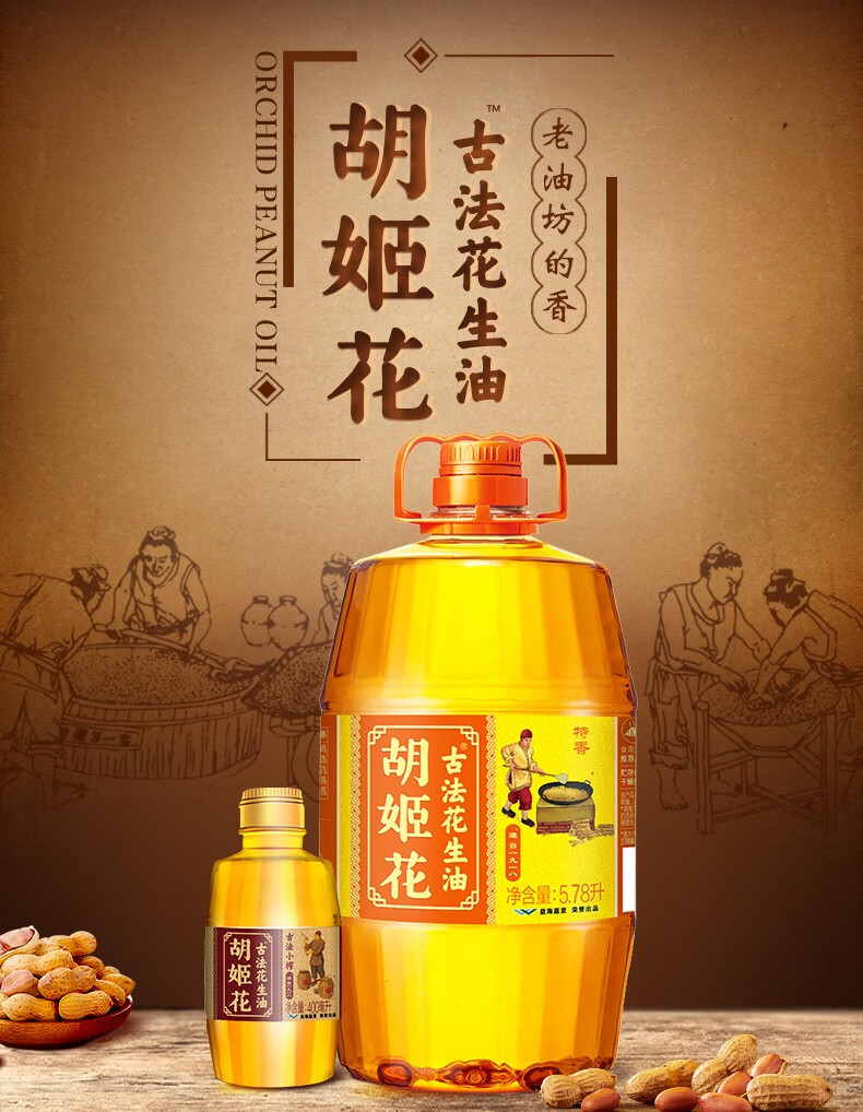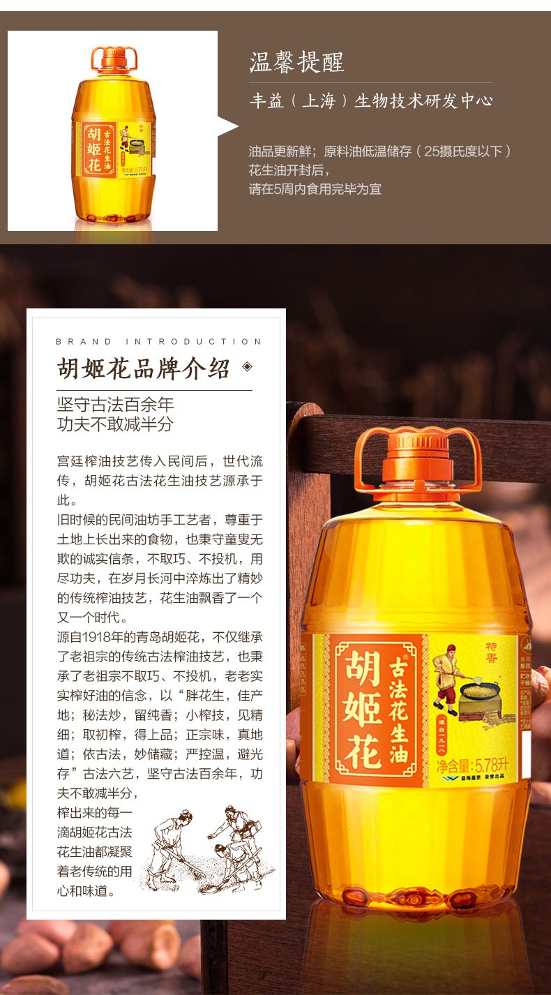 胡姬花 古法花生油6.18L(5.78L+小榨400ml)组合装食用油 物理压榨一级