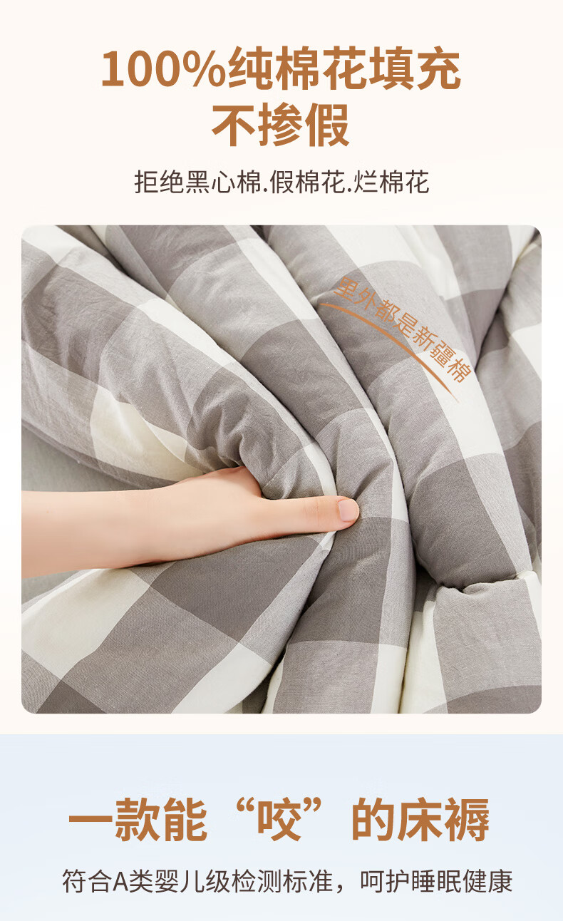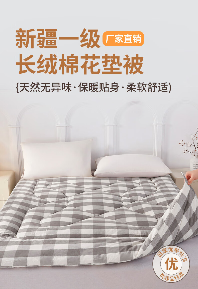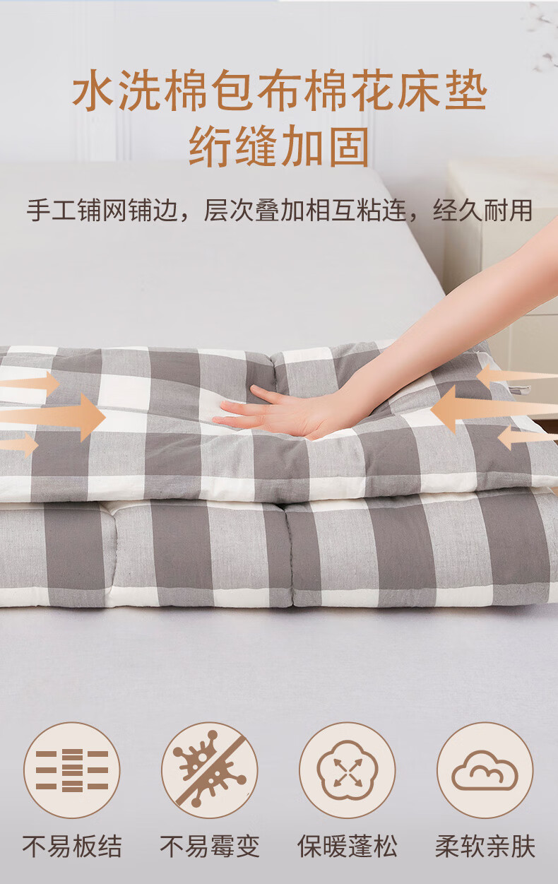 多忆绵眠(duoyimianmian)棉花垫褥A类棉花床褥子100%新疆长绒棉絮垫被加厚床垫遮盖物睡垫 8斤【总重量】 150*200cm