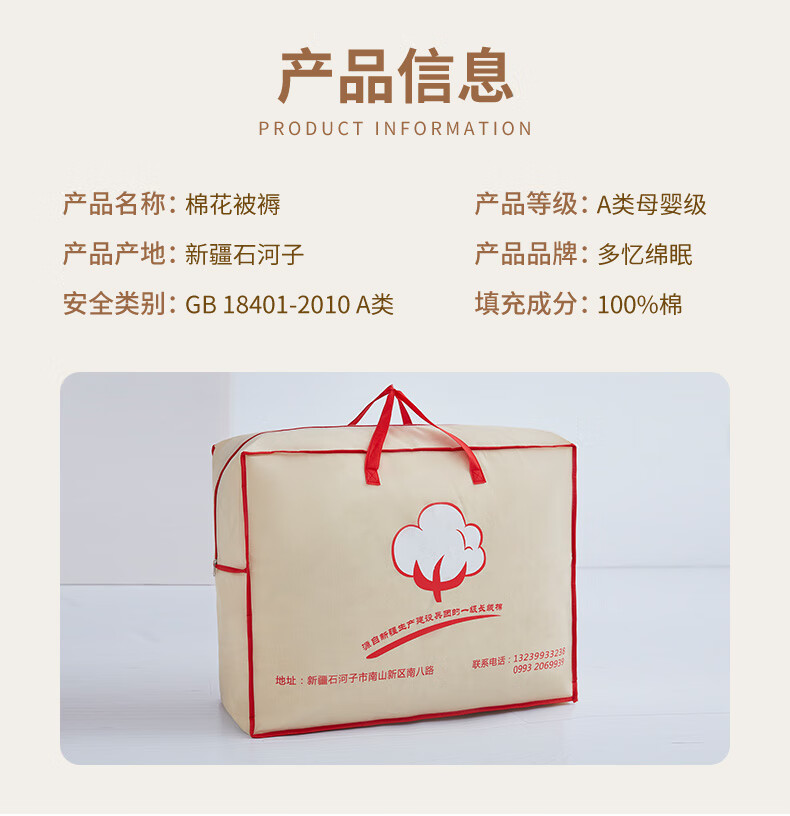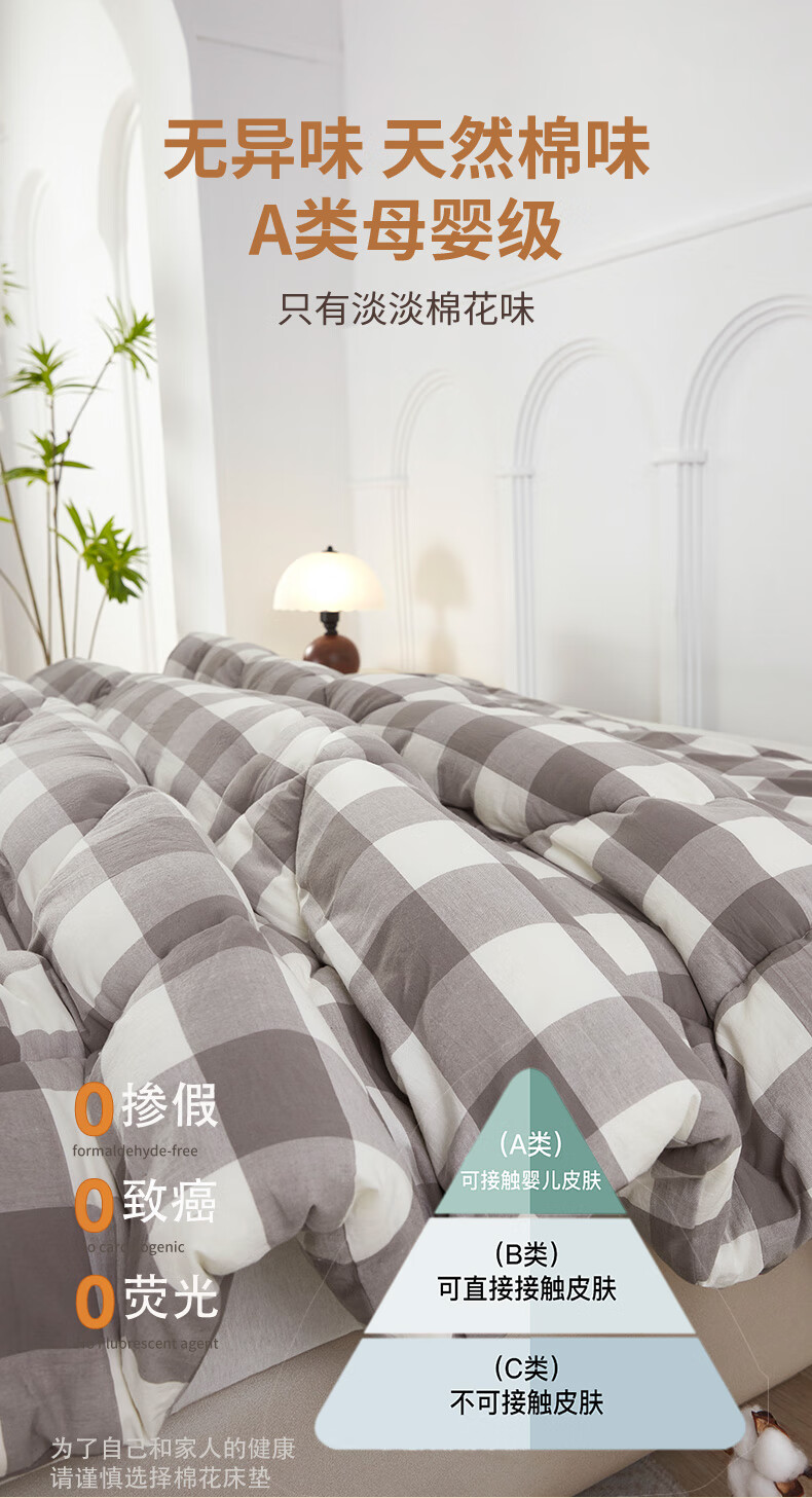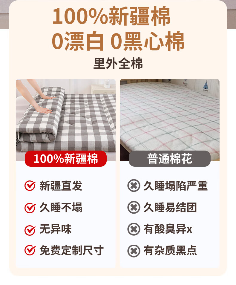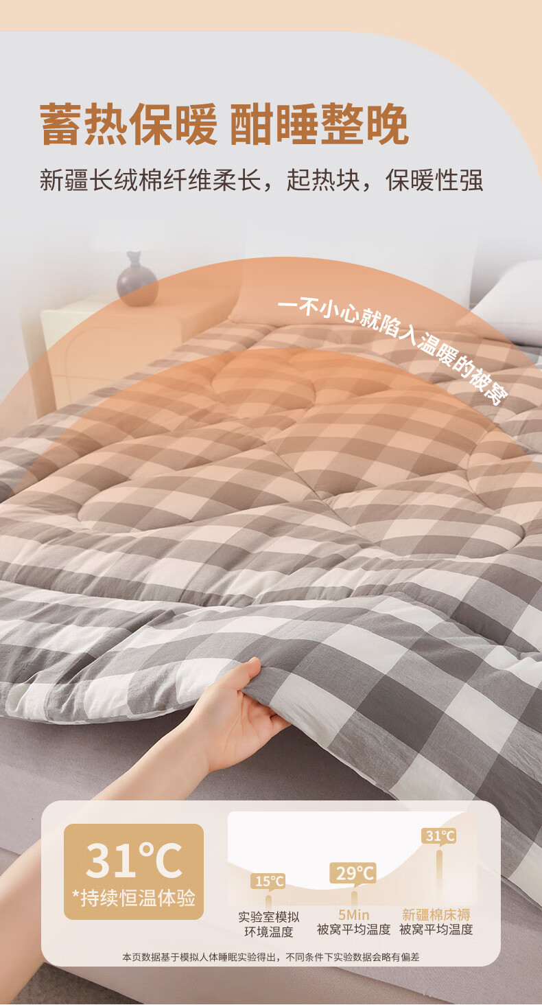 多忆绵眠(duoyimianmian)棉花垫褥A类棉花床褥子100%新疆长绒棉絮垫被加厚床垫遮盖物睡垫 8斤【总重量】 150*200cm