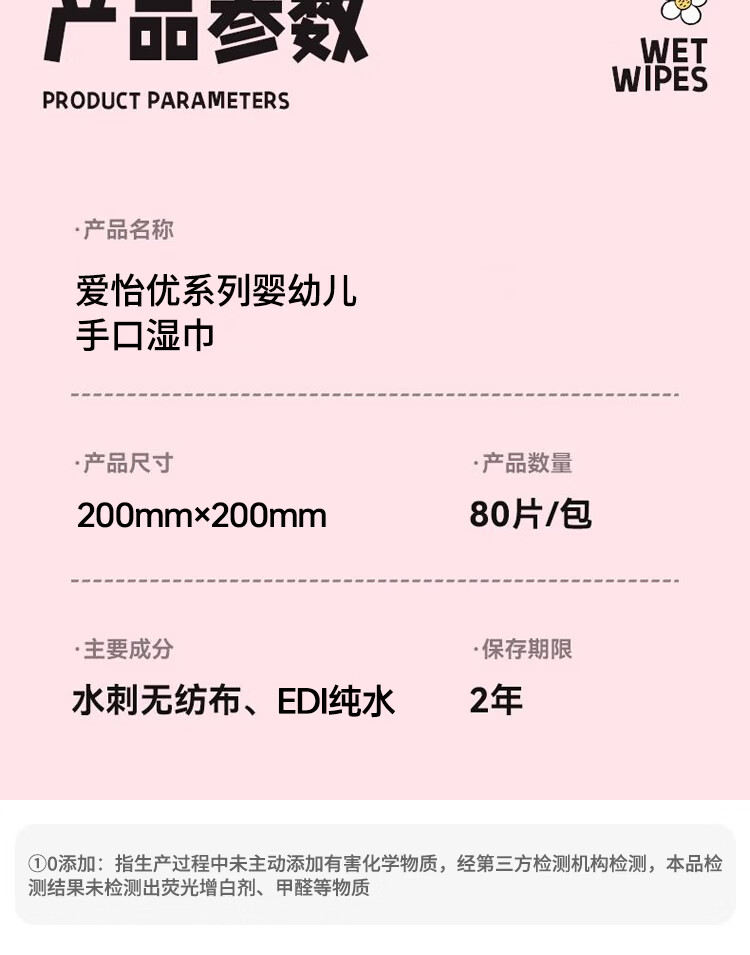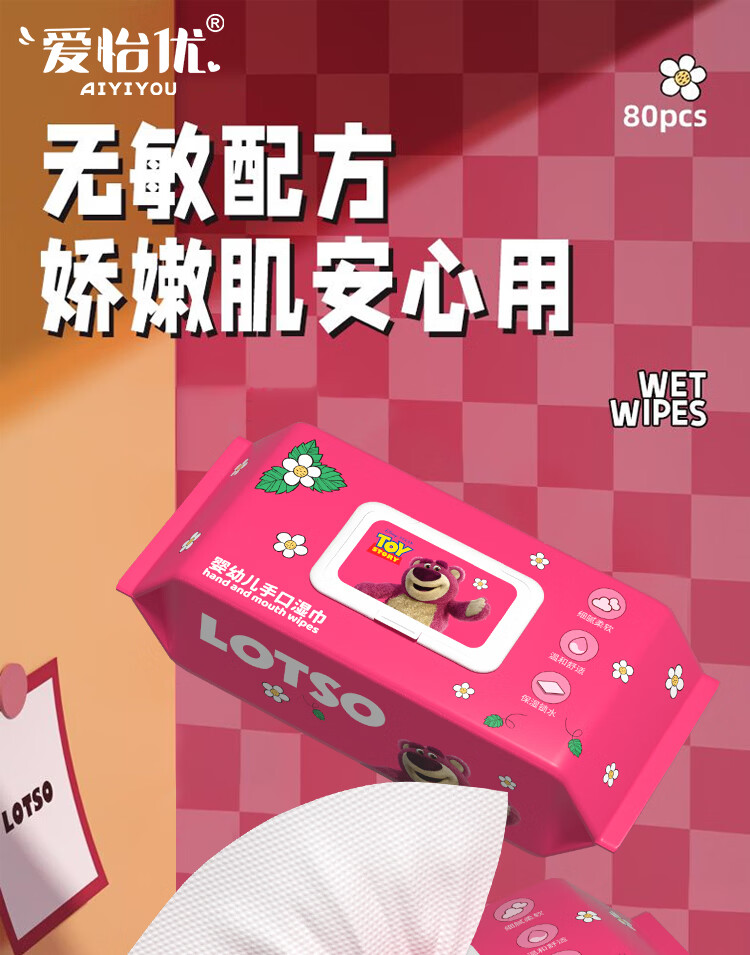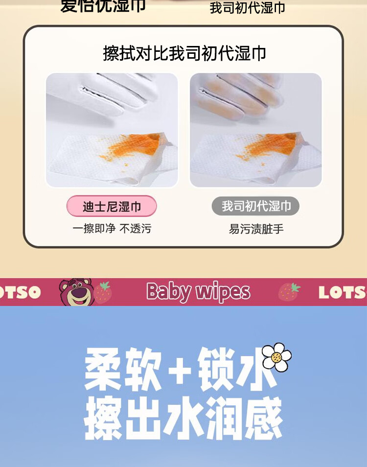 爱怡优×迪士尼联名 湿巾 加大加厚 EDI纯水儿童手口湿纸巾婴幼儿湿巾纸 【200*200】80抽6包