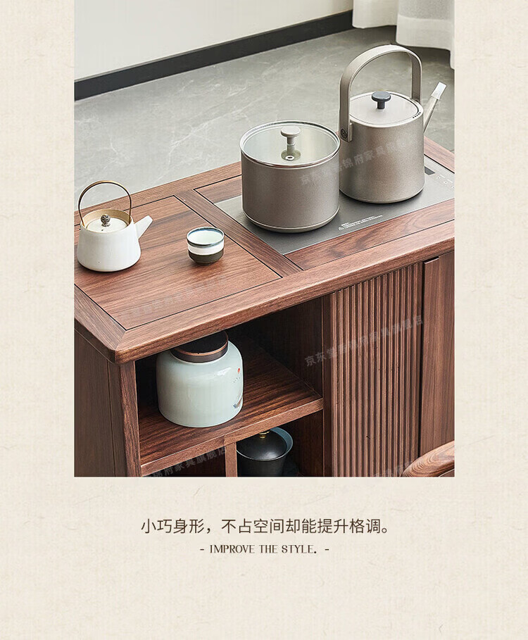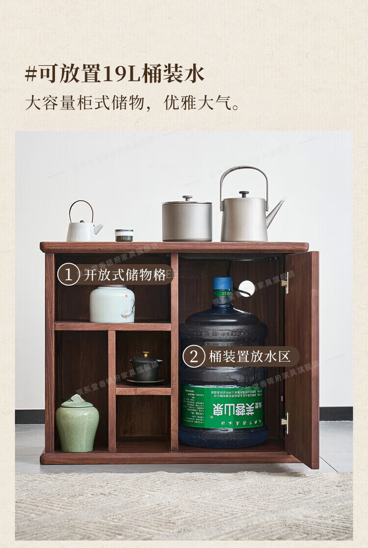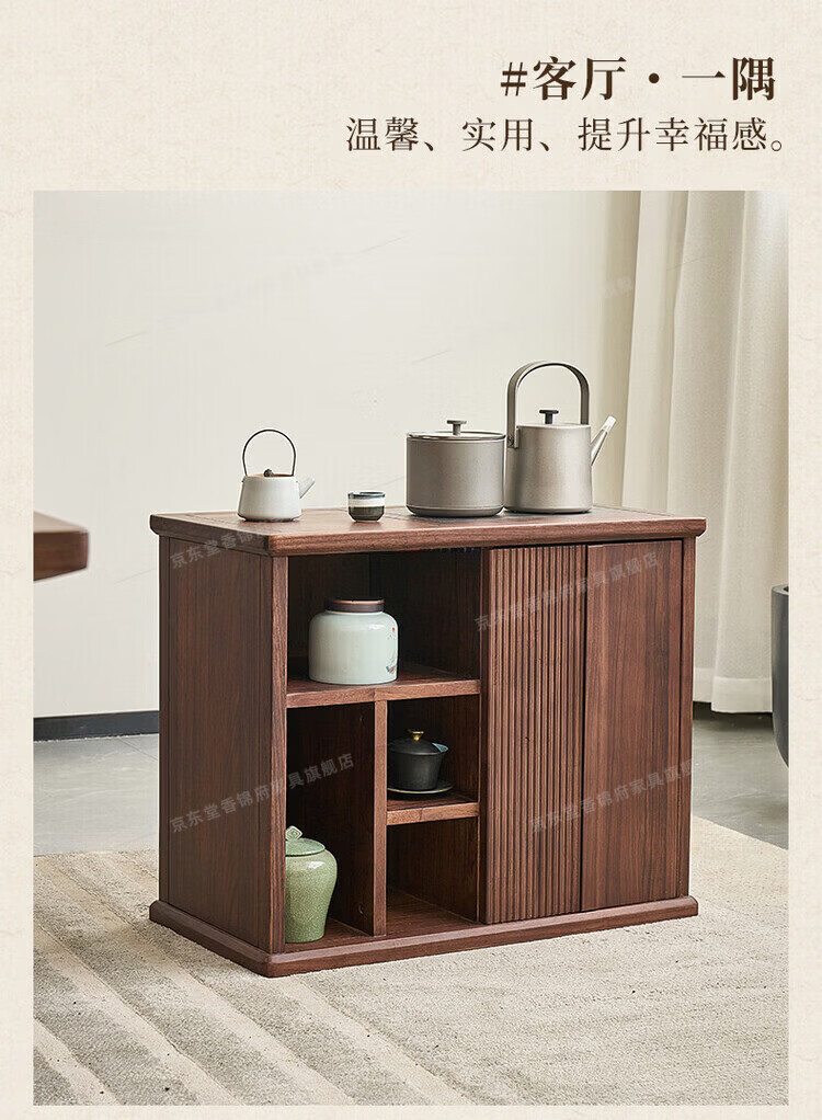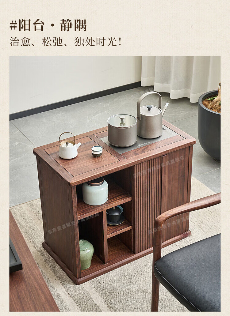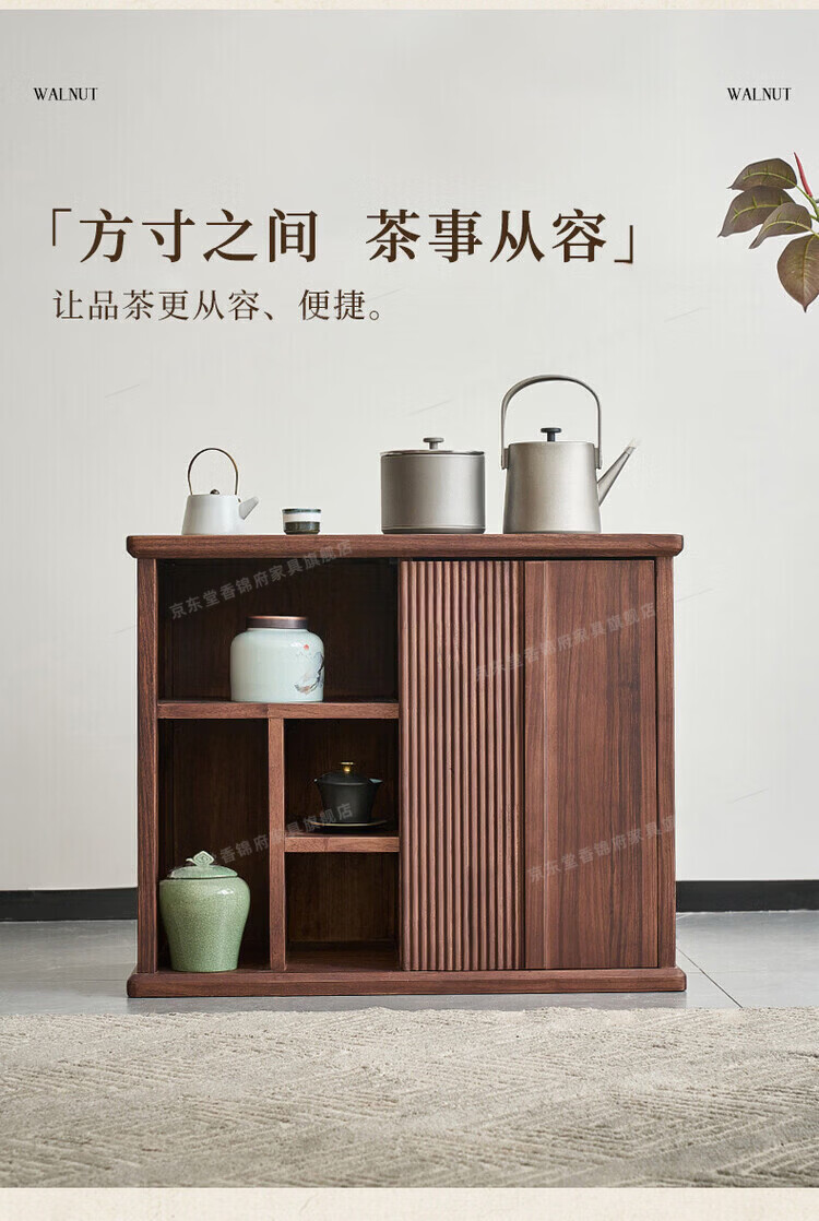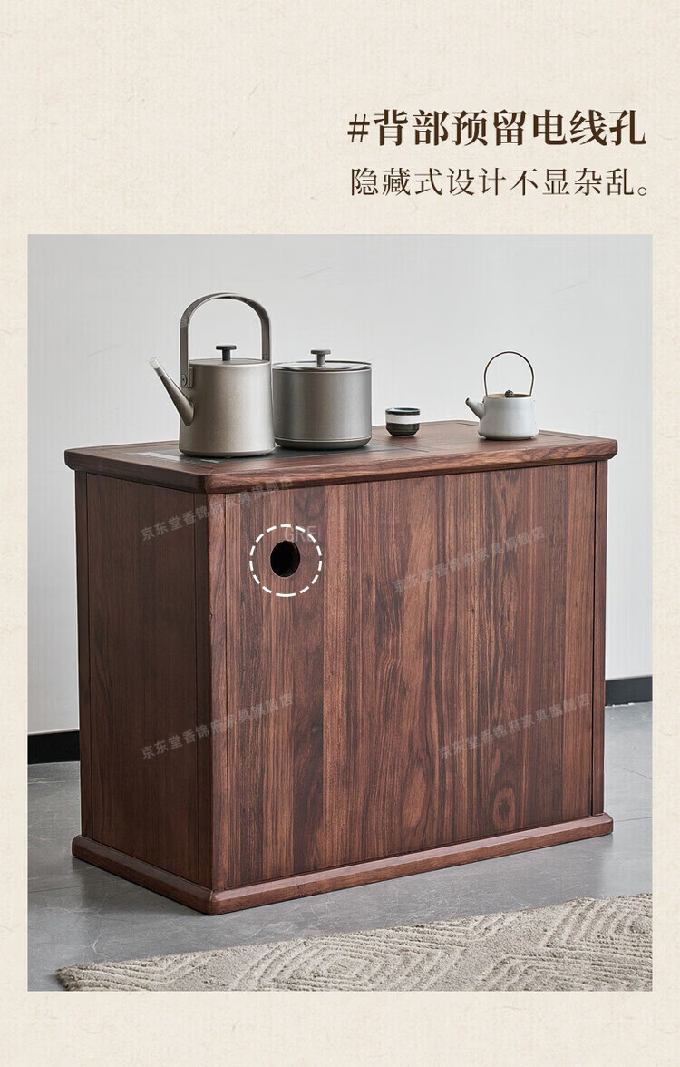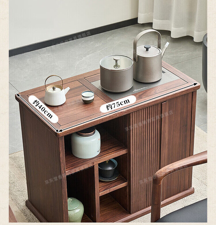 堂香锦府黑胡桃木可移动茶水柜全实木家用客厅茶台茶桌茶柜烧水壶一体边柜 【FAS级进口胡桃木】0.75米茶水柜1个